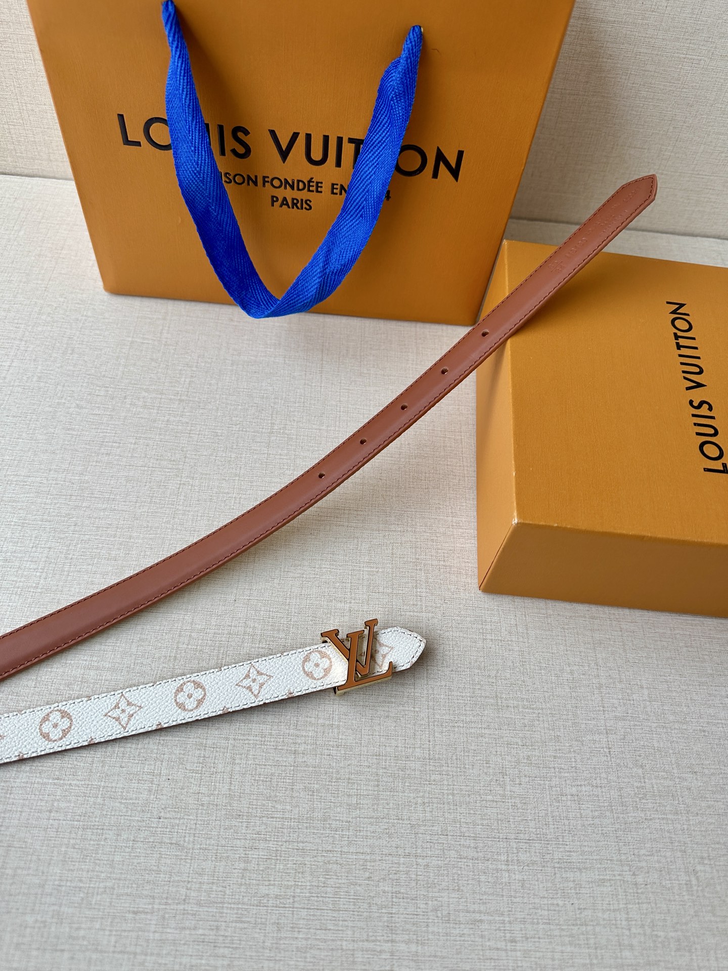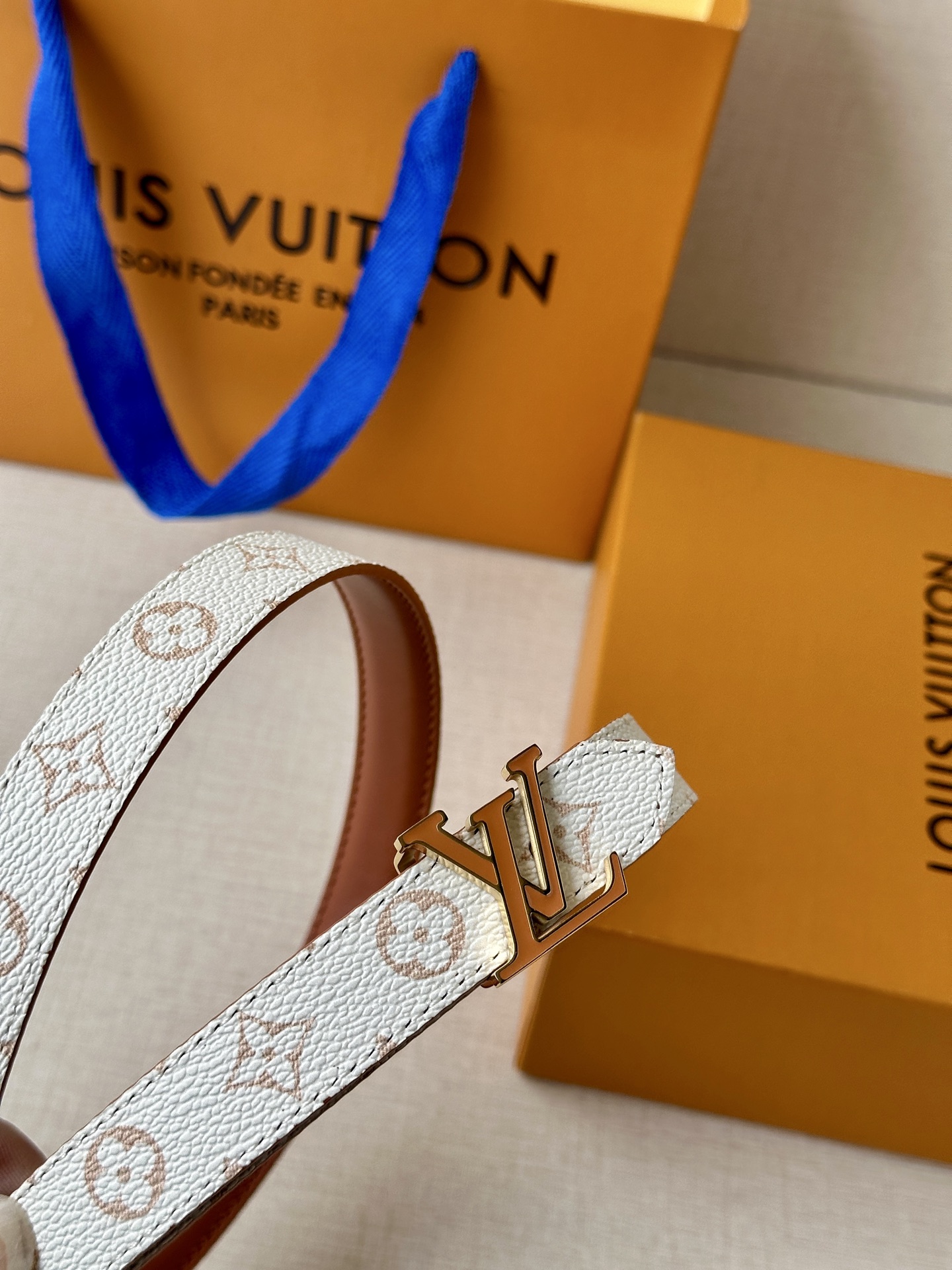 这款皮带是AAAAA 1:1 质量 (非常棒). 使用了和原版一模一样的材料. 商标部分也保持了和路易威登/Louis Vuitton一样. 图片拍摄是实物皮带拍摄, 您所收到的实物保证和我们图片一模一样.