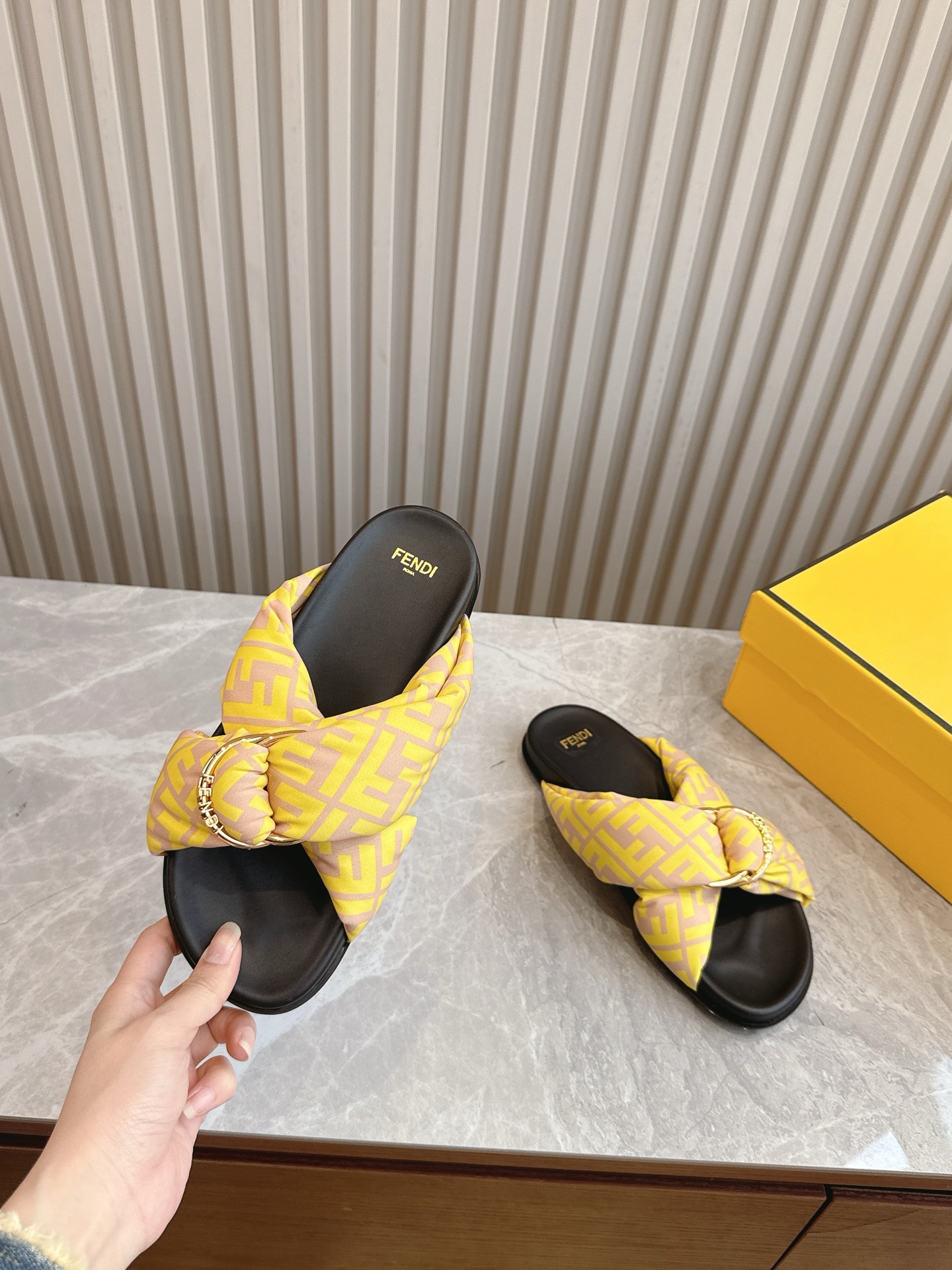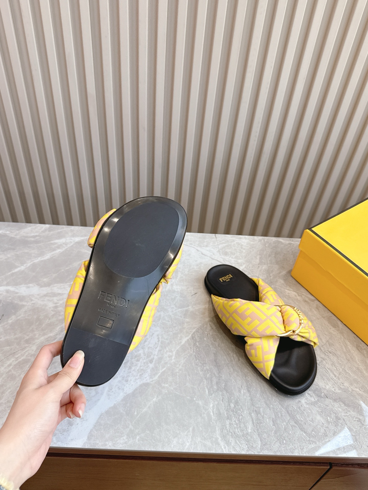 这款鞋子是AAAAA 1:1 质量 (非常棒). 使用了和原版一模一样的材料. 商标部分也保持了和芬迪/Fendi一样. 图片拍摄是实物鞋子拍摄, 您所收到的实物保证和我们图片一模一样.