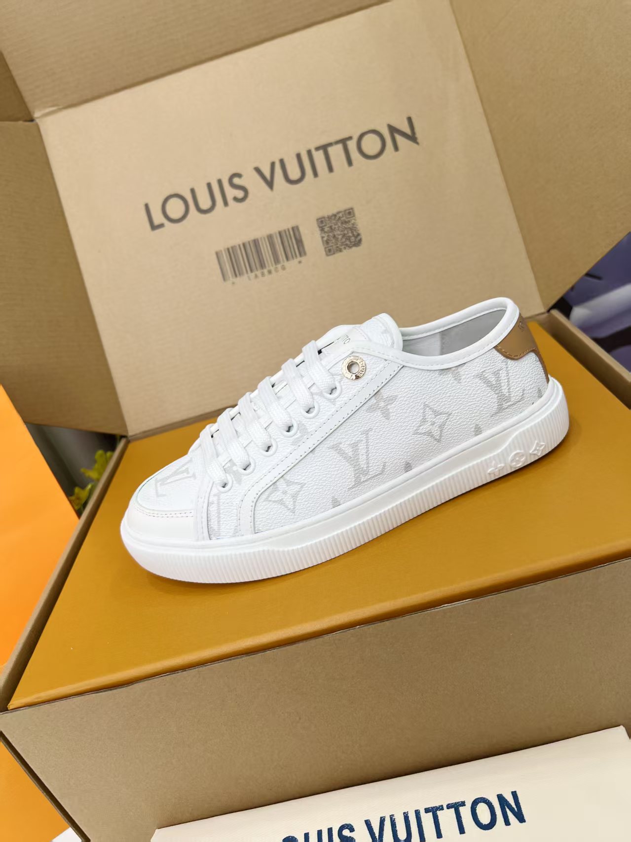 这款鞋子是AAAAA 1:1 质量 (非常棒). 使用了和原版一模一样的材料. 商标部分也保持了和路易威登/Louis Vuitton一样. 图片拍摄是实物鞋子拍摄, 您所收到的实物保证和我们图片一模一样.
