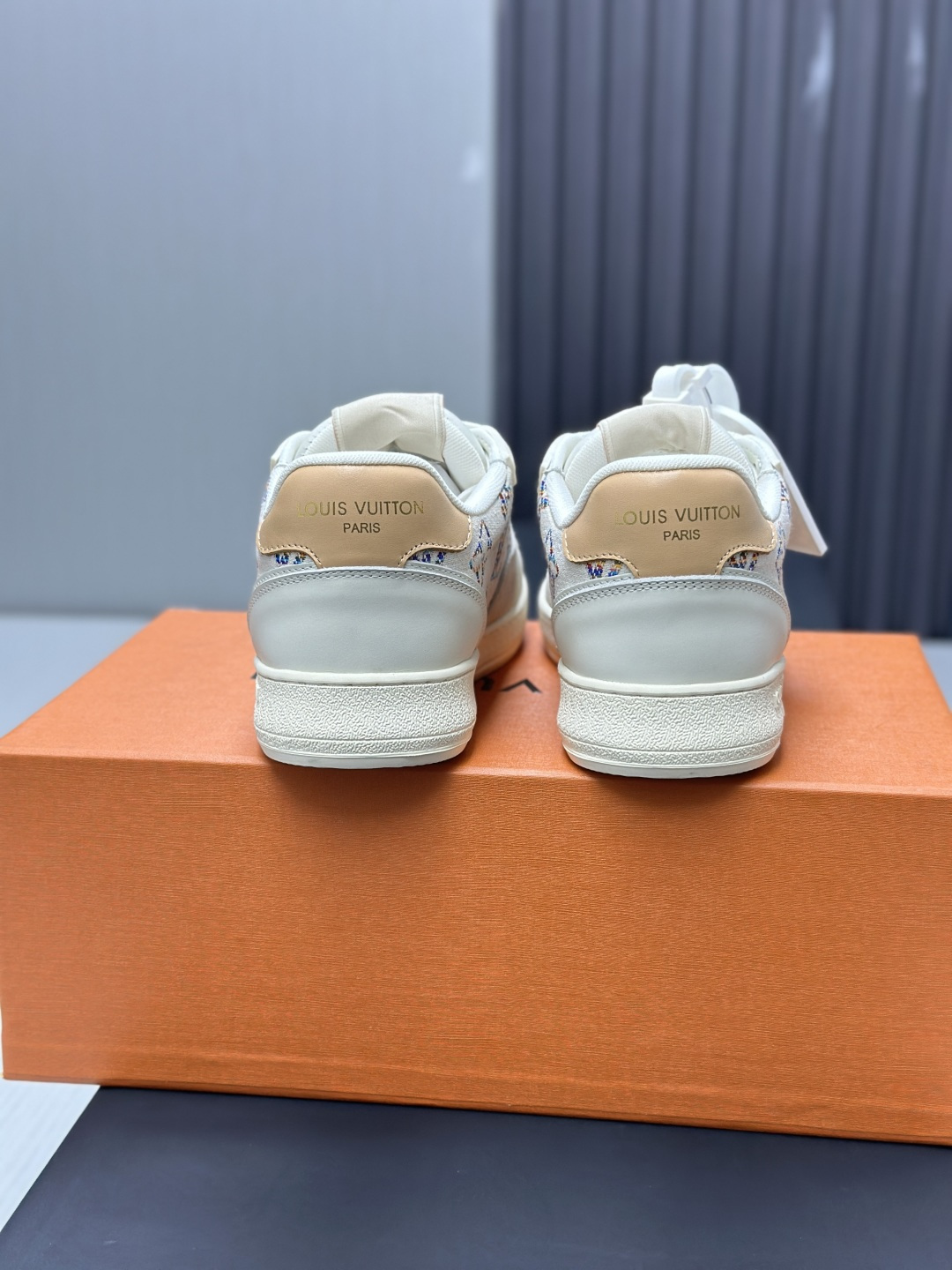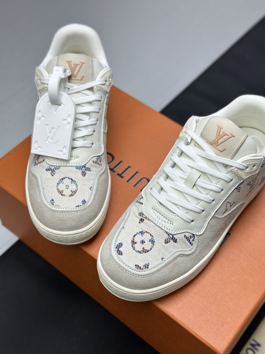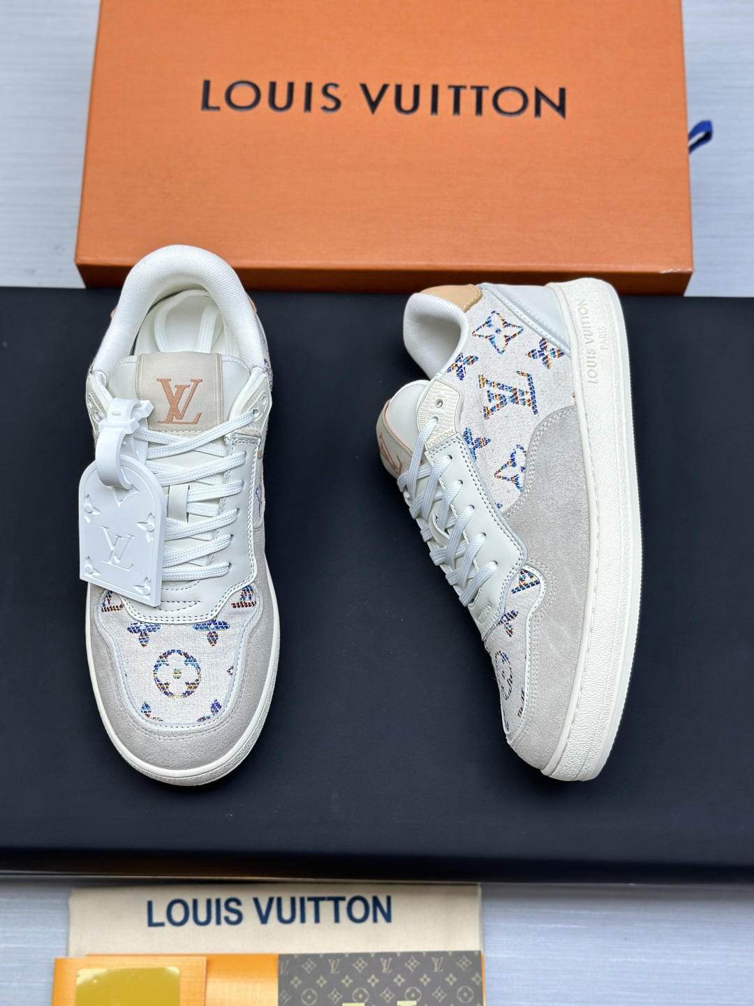 这款鞋子是AAAAA 1:1 质量 (非常棒). 使用了和原版一模一样的材料. 商标部分也保持了和路易威登/Louis Vuitton一样. 图片拍摄是实物鞋子拍摄, 您所收到的实物保证和我们图片一模一样.