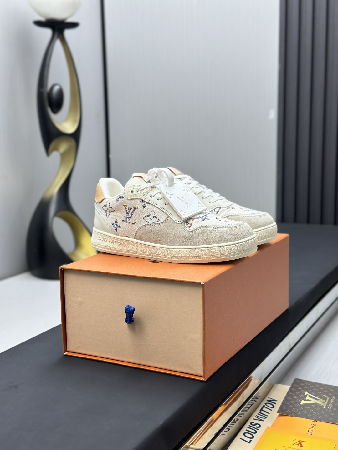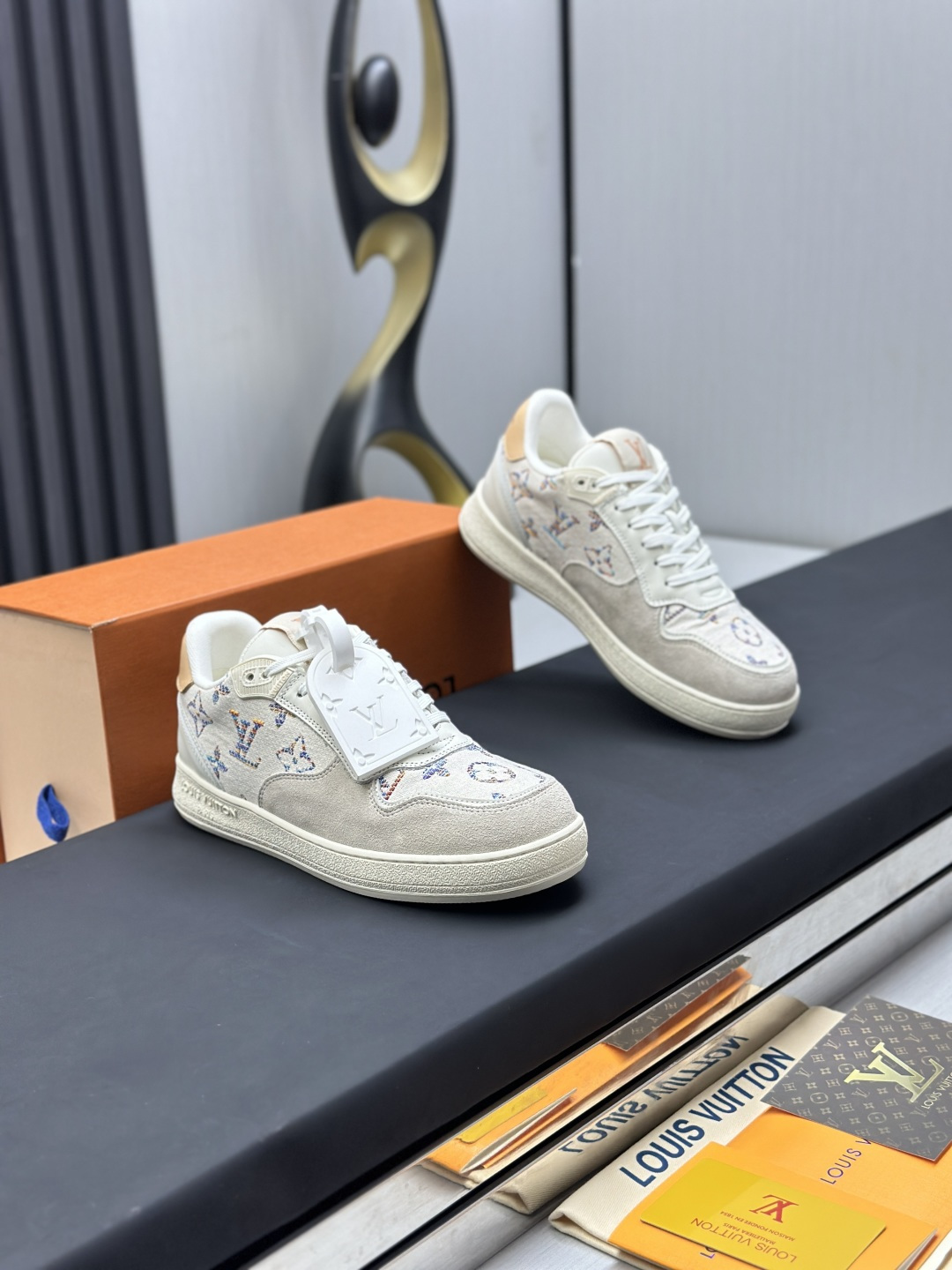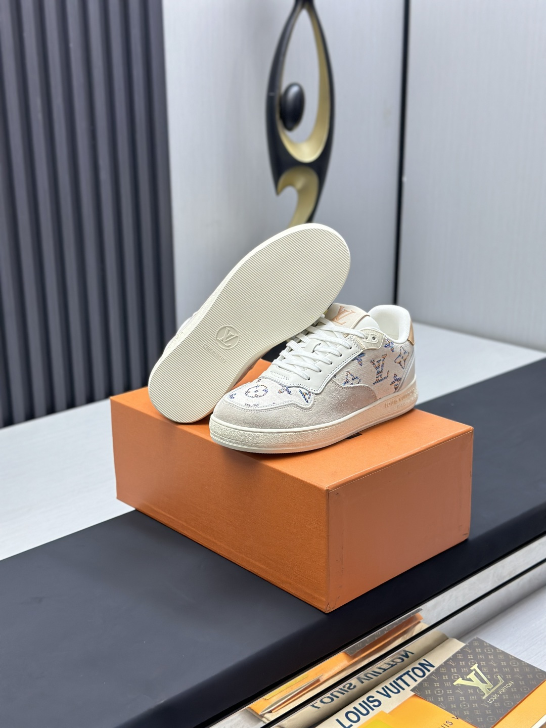 这款鞋子是AAAAA 1:1 质量 (非常棒). 使用了和原版一模一样的材料. 商标部分也保持了和路易威登/Louis Vuitton一样. 图片拍摄是实物鞋子拍摄, 您所收到的实物保证和我们图片一模一样.