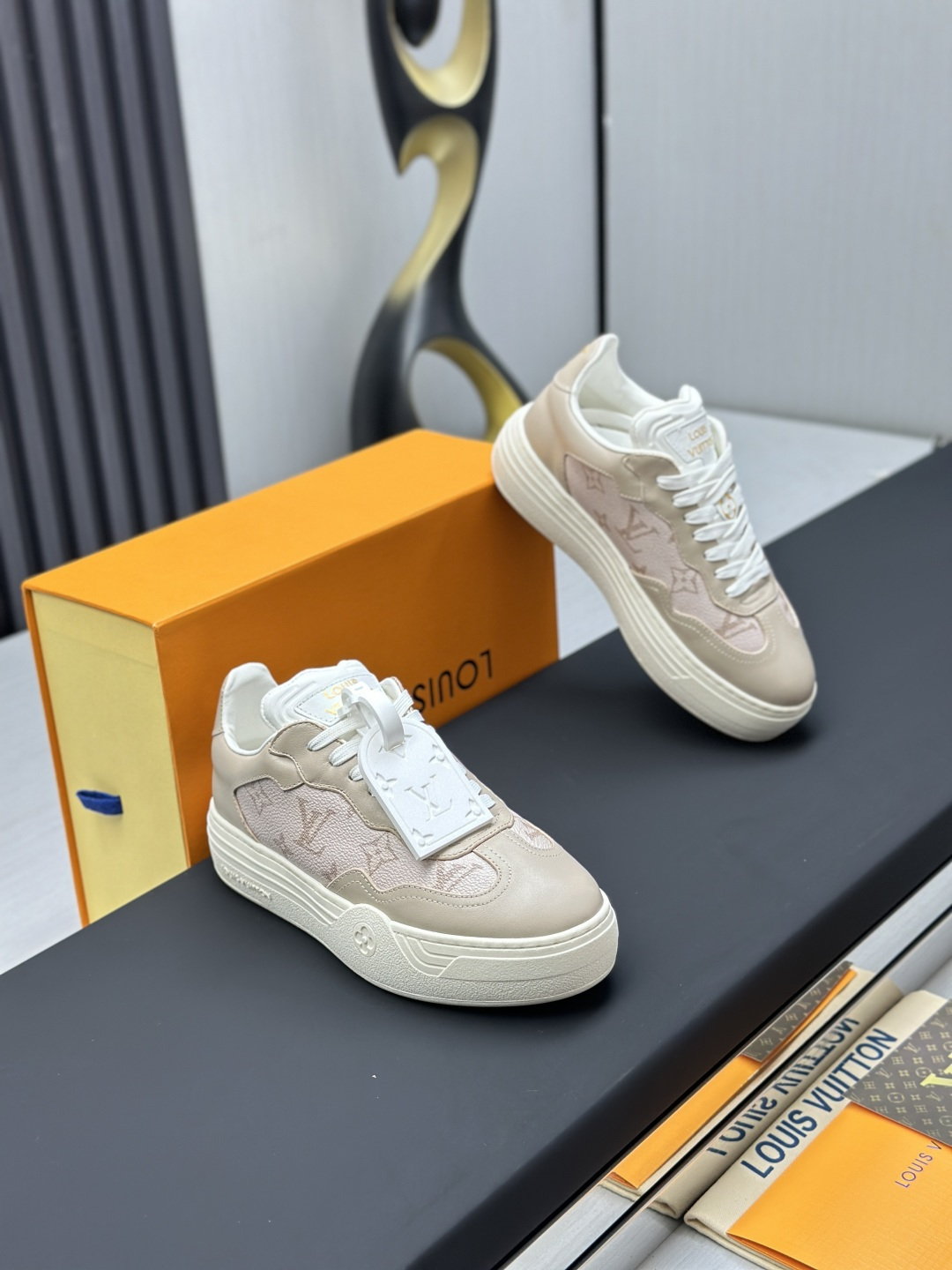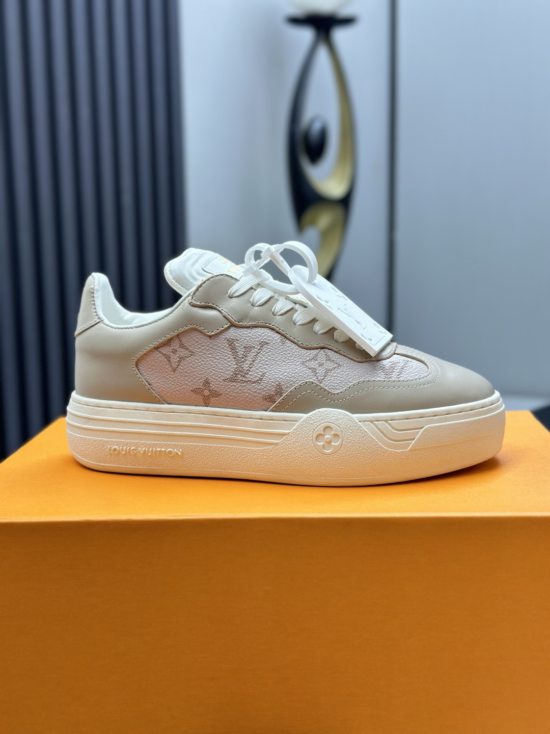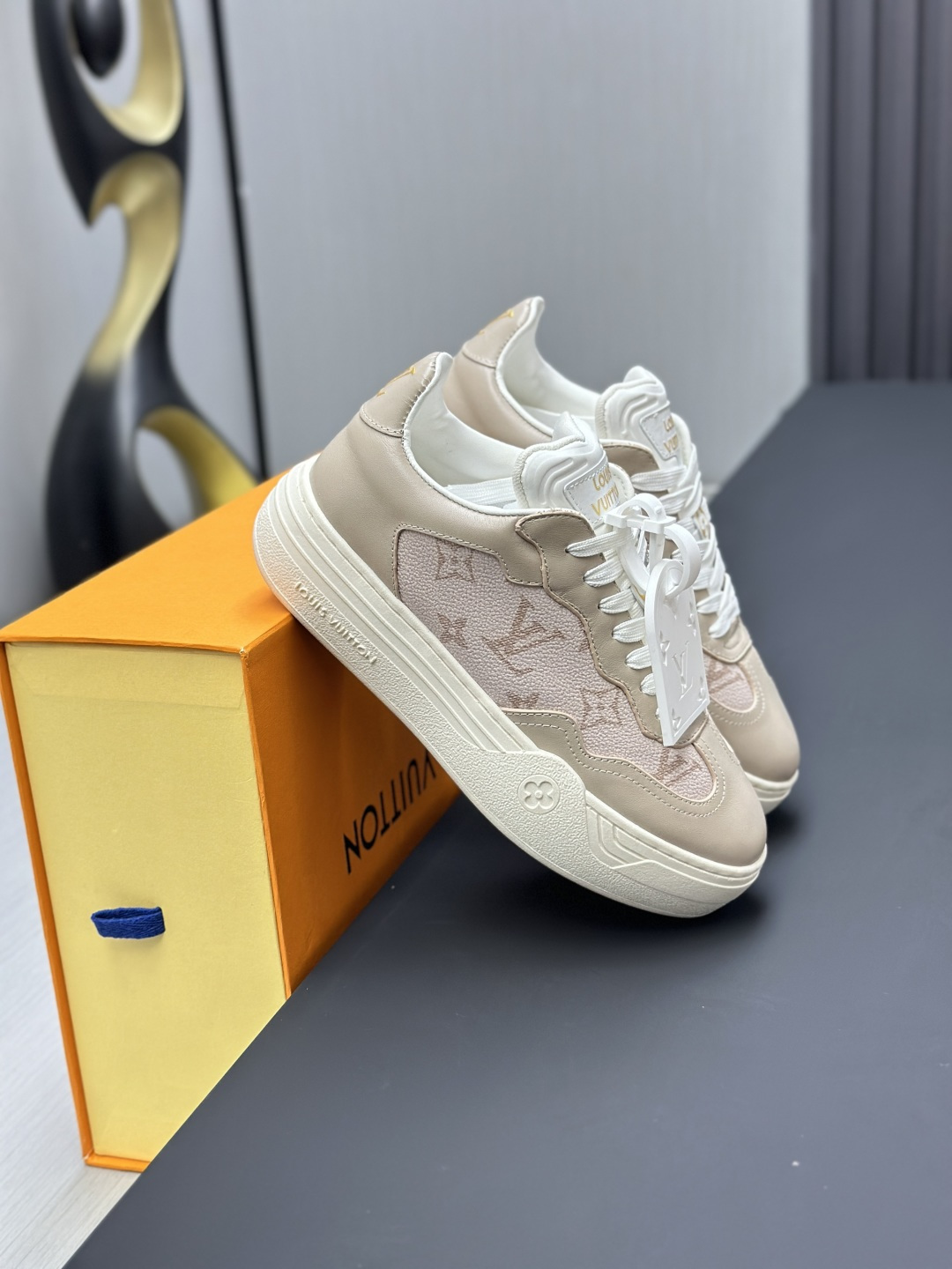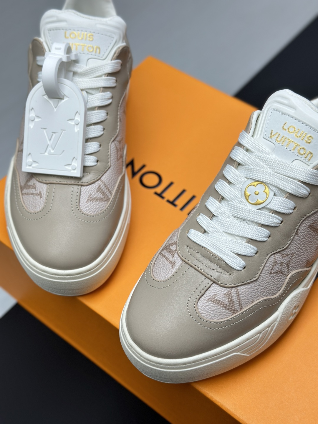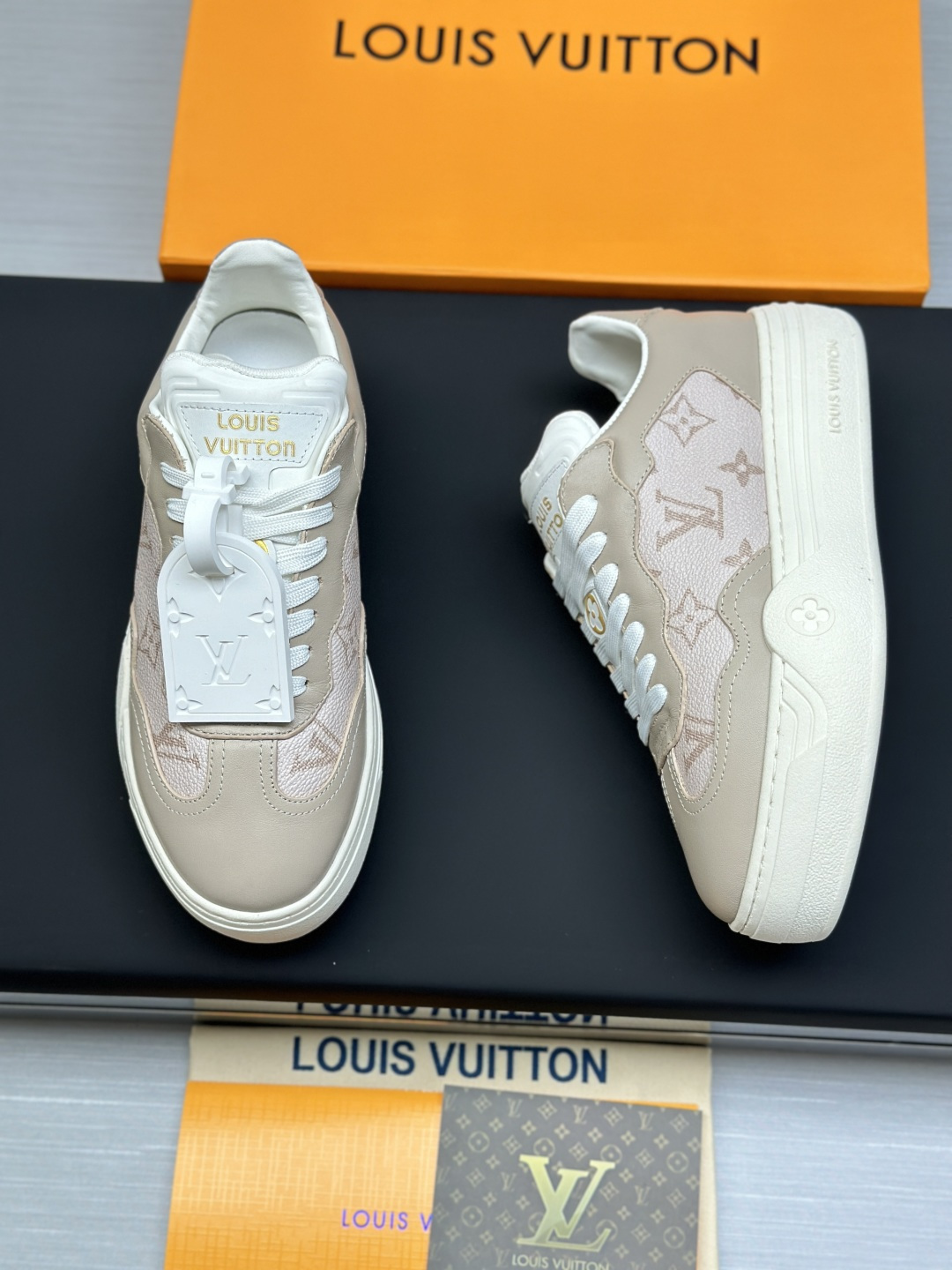 这款鞋子是AAAAA 1:1 质量 (非常棒). 使用了和原版一模一样的材料. 商标部分也保持了和路易威登/Louis Vuitton一样. 图片拍摄是实物鞋子拍摄, 您所收到的实物保证和我们图片一模一样.