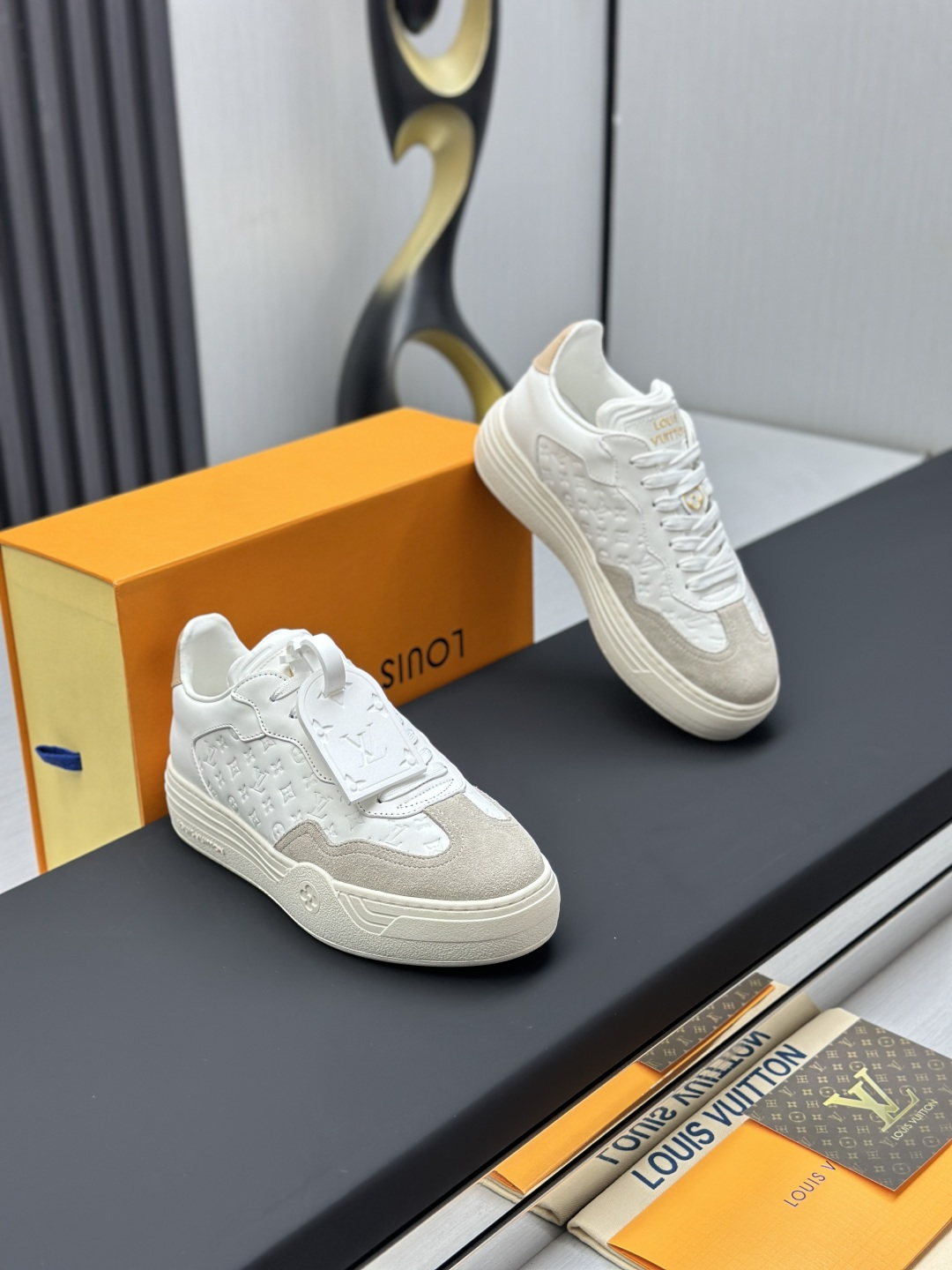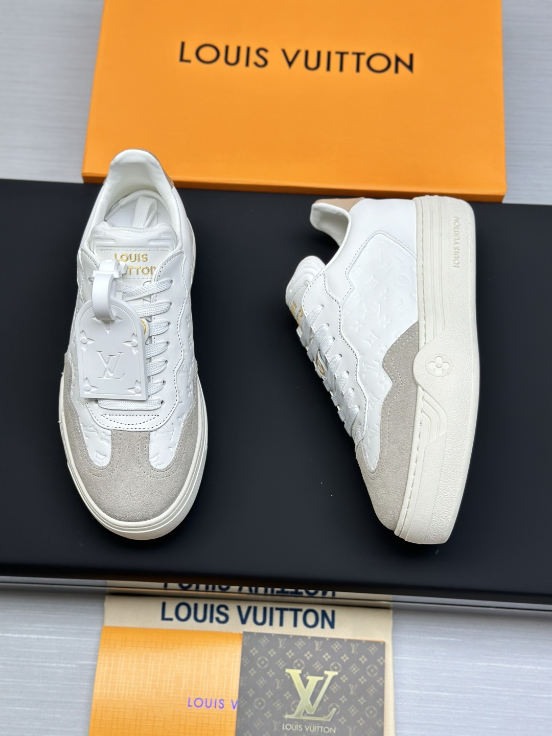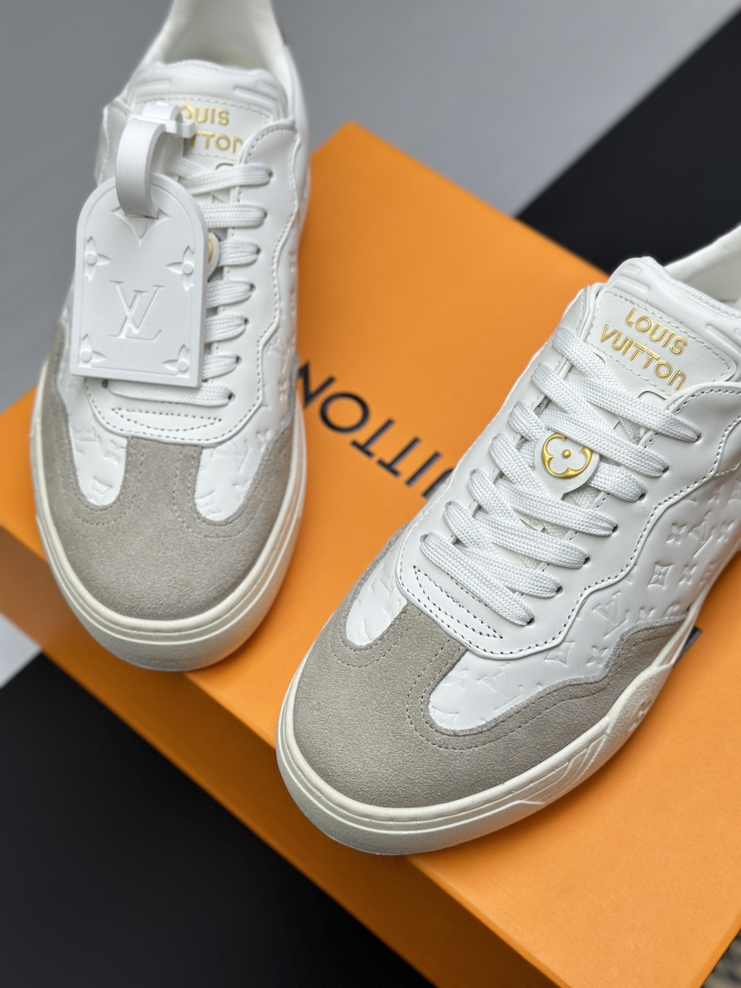 这款鞋子是AAAAA 1:1 质量 (非常棒). 使用了和原版一模一样的材料. 商标部分也保持了和路易威登/Louis Vuitton一样. 图片拍摄是实物鞋子拍摄, 您所收到的实物保证和我们图片一模一样.