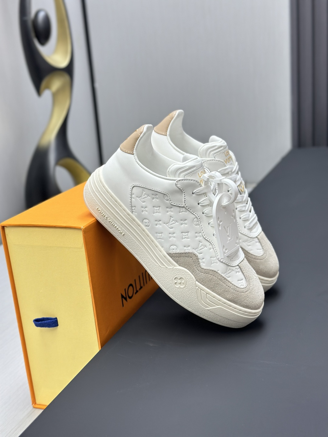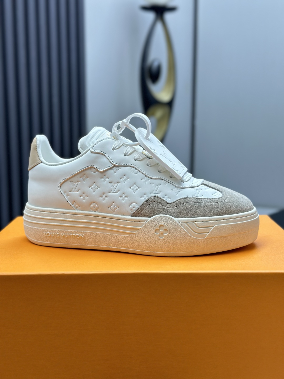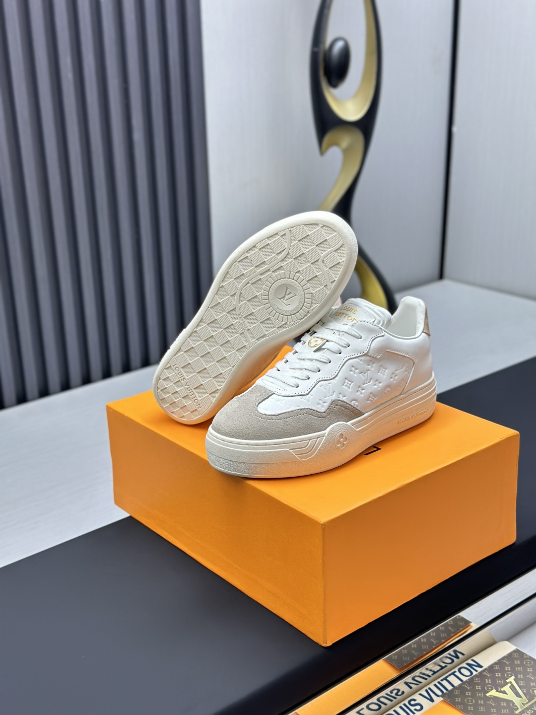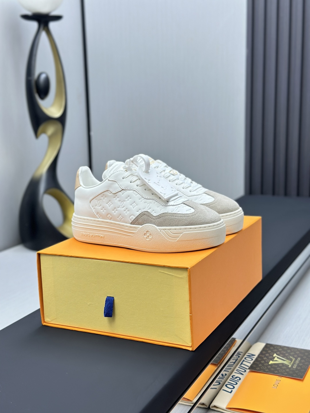 这款鞋子是AAAAA 1:1 质量 (非常棒). 使用了和原版一模一样的材料. 商标部分也保持了和路易威登/Louis Vuitton一样. 图片拍摄是实物鞋子拍摄, 您所收到的实物保证和我们图片一模一样.