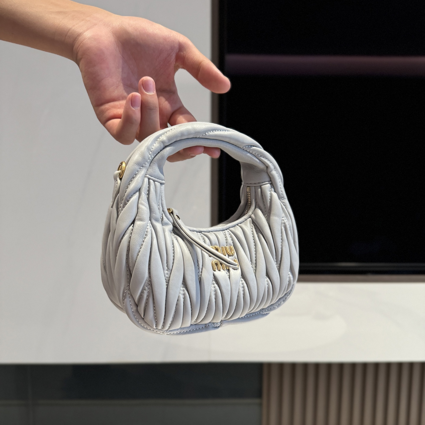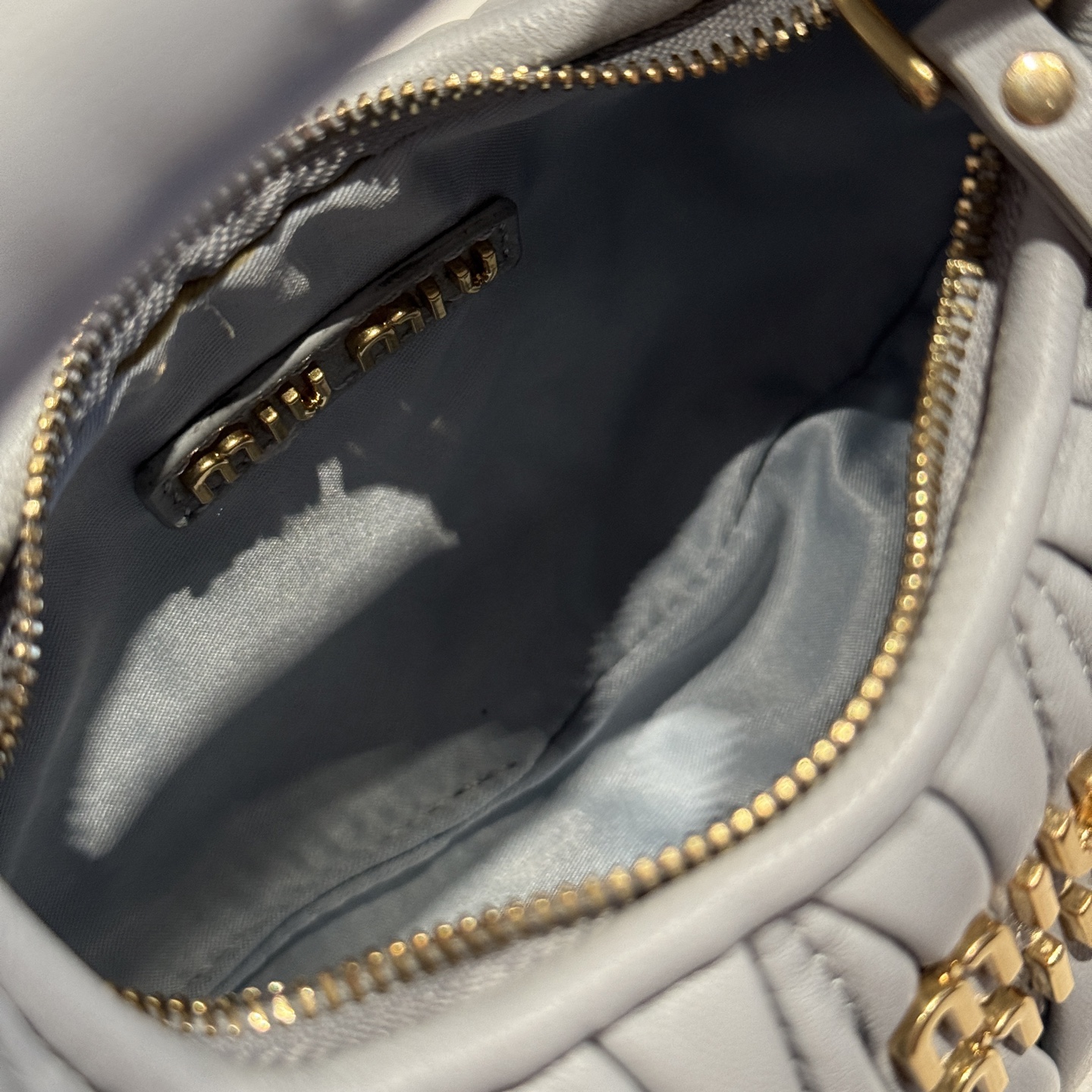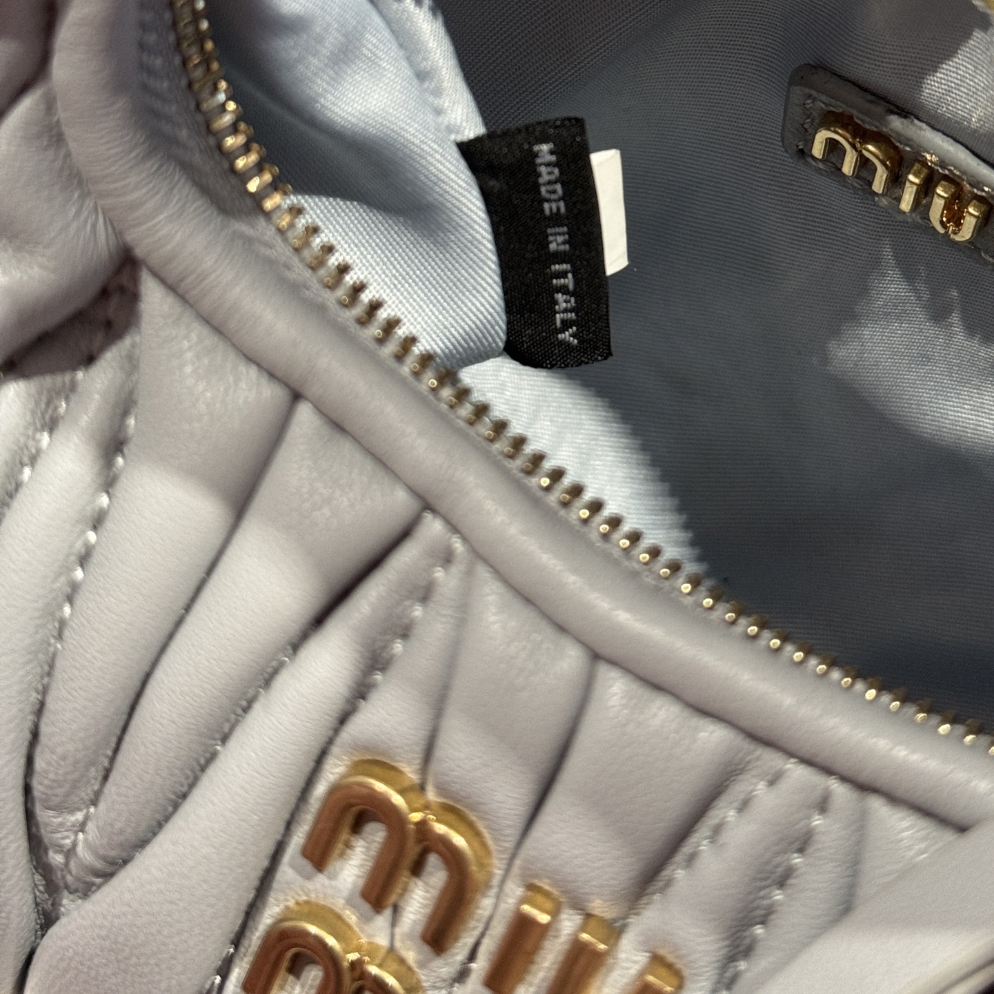 这款包包是AAAAA 1:1 质量 (非常棒). 使用了和原版一模一样的材料. 商标部分也保持了和缪缪/Miu Miu一样. 图片拍摄是实物包包拍摄, 您所收到的实物保证和我们图片一模一样.
