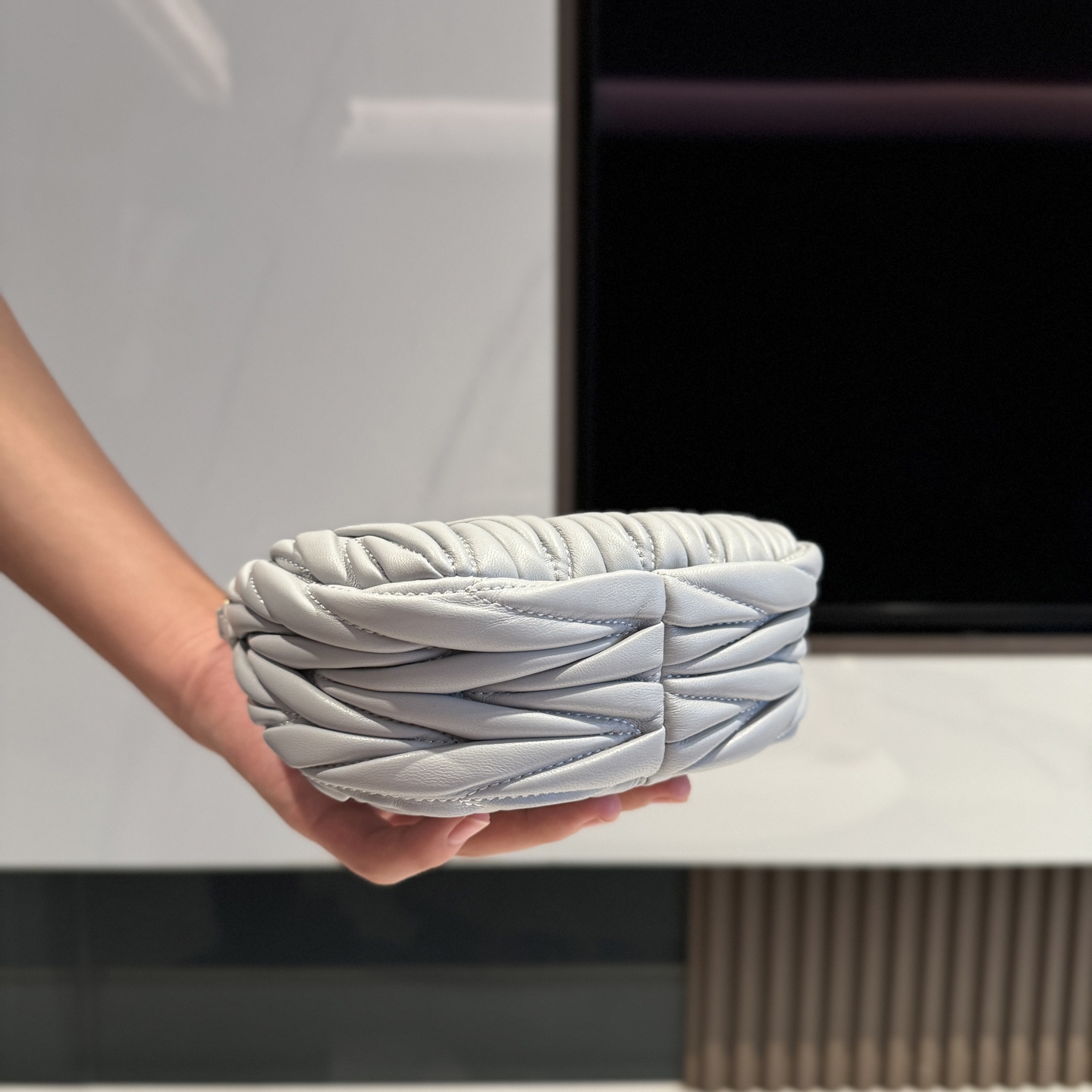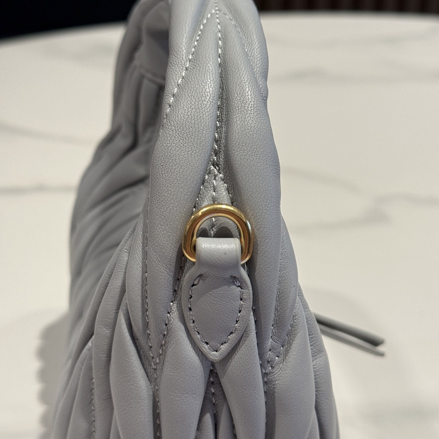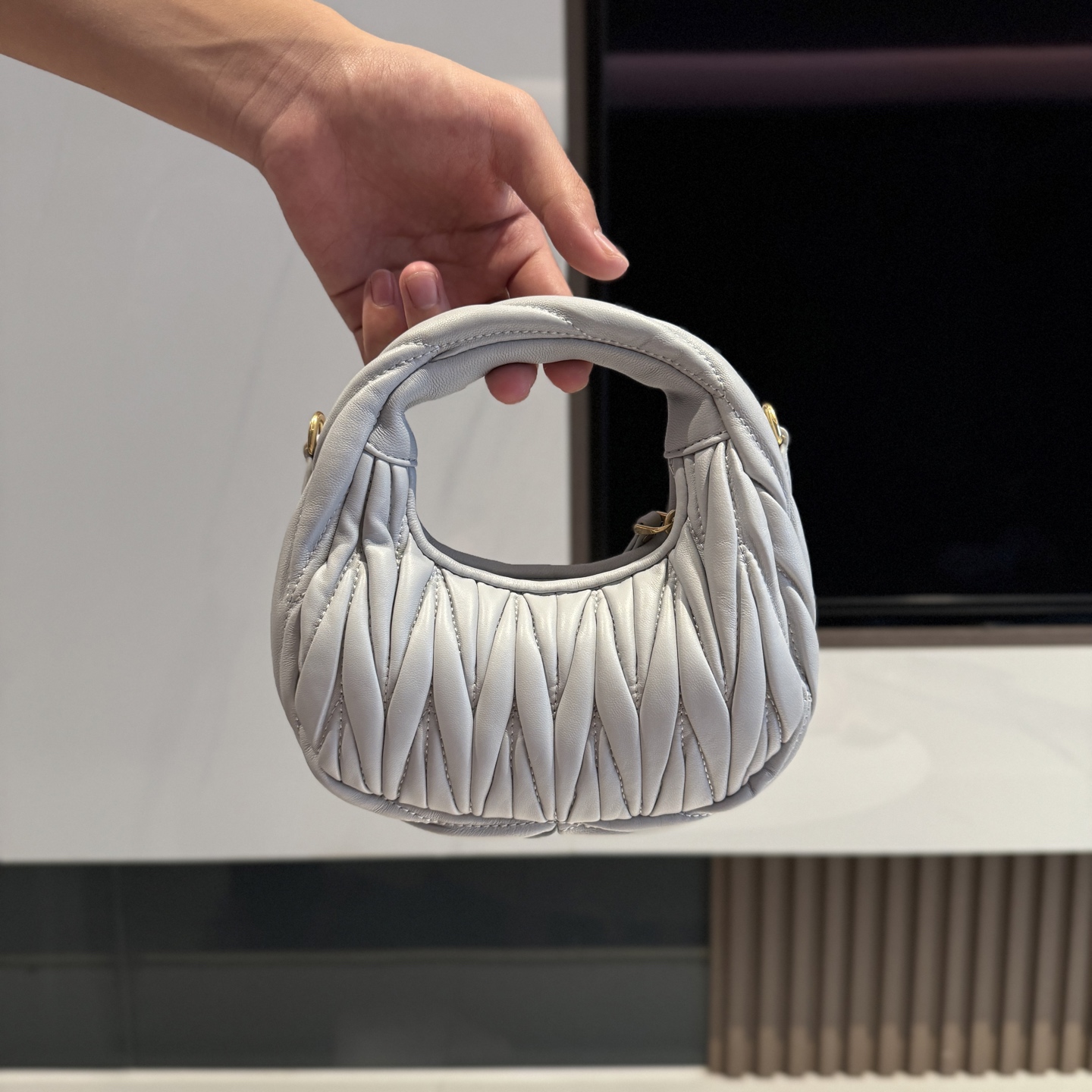 这款包包是AAAAA 1:1 质量 (非常棒). 使用了和原版一模一样的材料. 商标部分也保持了和缪缪/Miu Miu一样. 图片拍摄是实物包包拍摄, 您所收到的实物保证和我们图片一模一样.