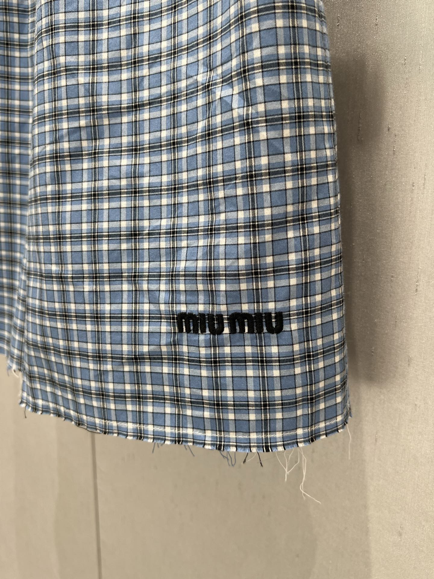这款衣服是AAAAA 1:1 质量 (非常棒). 使用了和原版一模一样的材料. 商标部分也保持了和缪缪/Miu Miu一样. 图片拍摄是实物衣服拍摄, 您所收到的实物保证和我们图片一模一样.