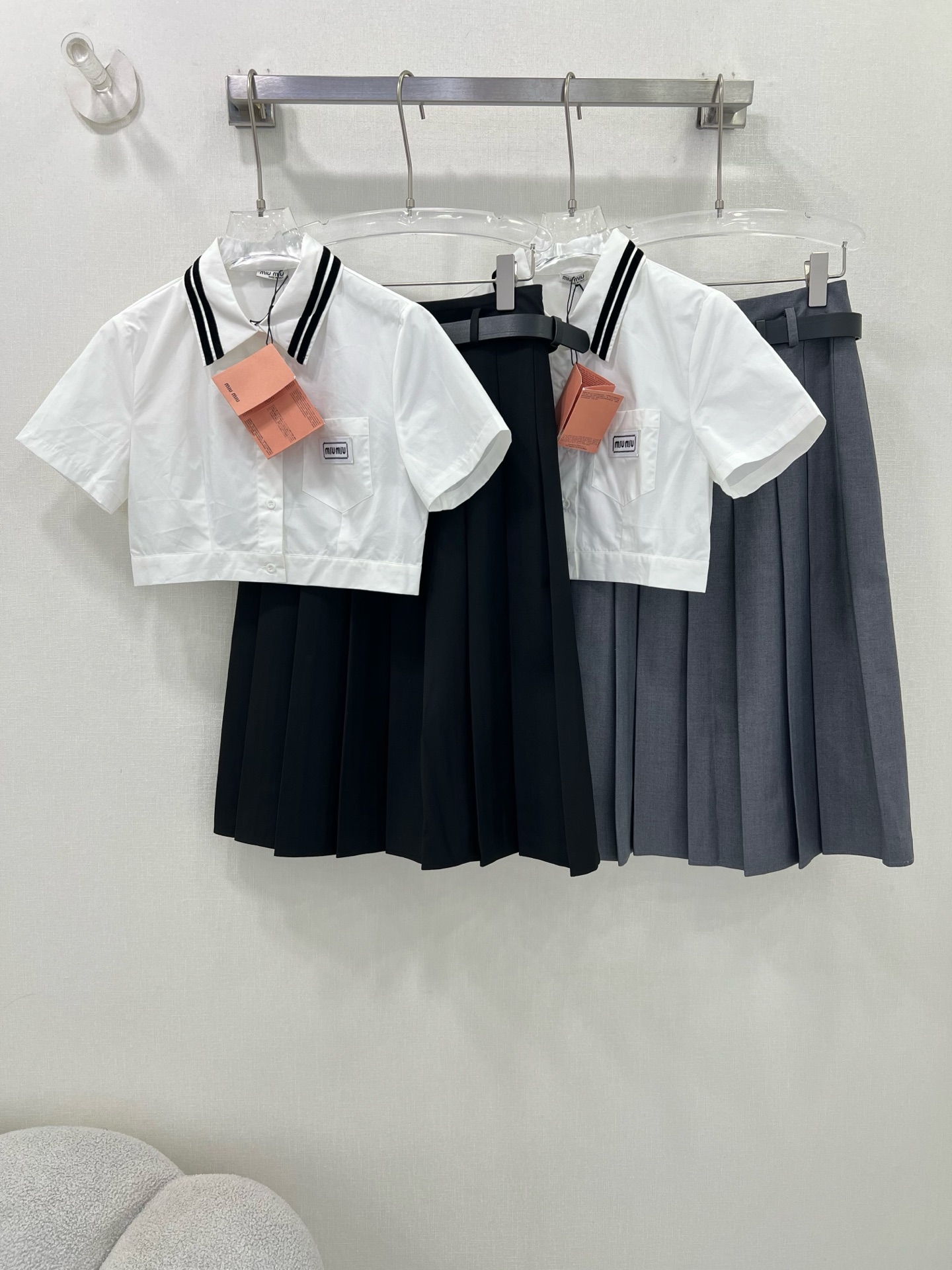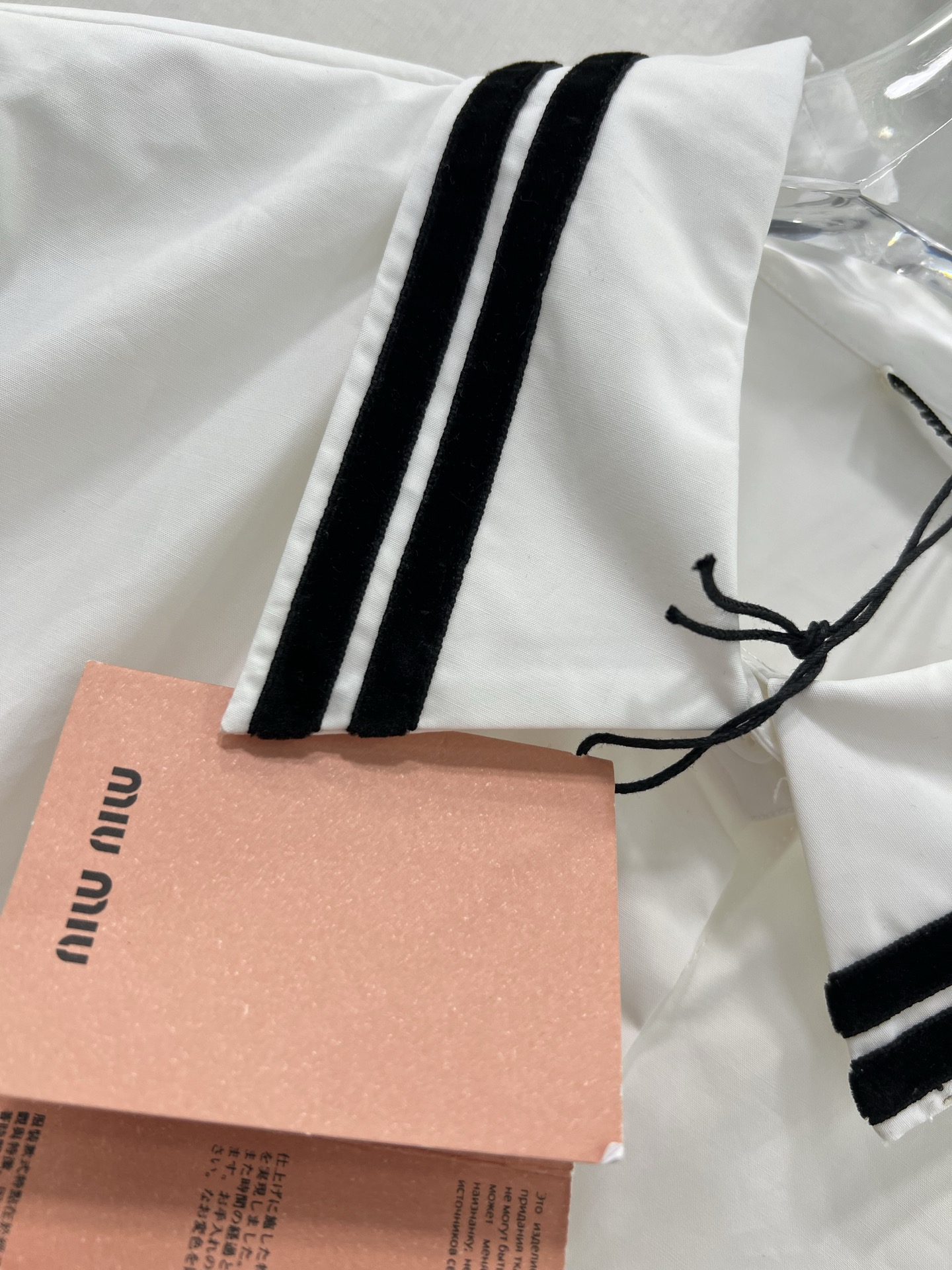 这款衣服是AAAAA 1:1 质量 (非常棒). 使用了和原版一模一样的材料. 商标部分也保持了和缪缪/Miu Miu一样. 图片拍摄是实物衣服拍摄, 您所收到的实物保证和我们图片一模一样.