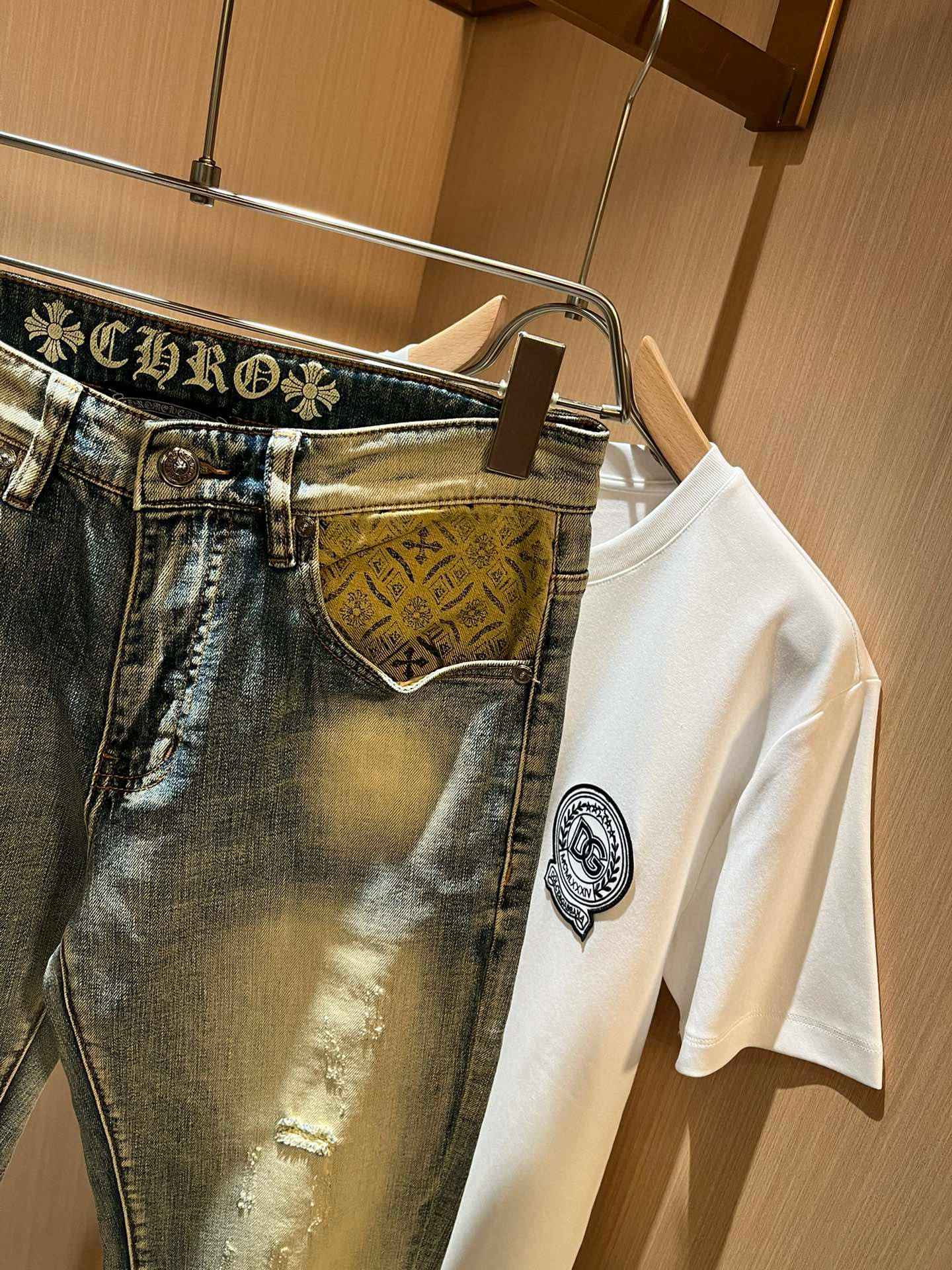 这款衣服是AAAAA 1:1 质量 (非常棒). 使用了和原版一模一样的材料. 商标部分也保持了和克罗心/Chrome Hearts一样. 图片拍摄是实物衣服拍摄, 您所收到的实物保证和我们图片一模一样.