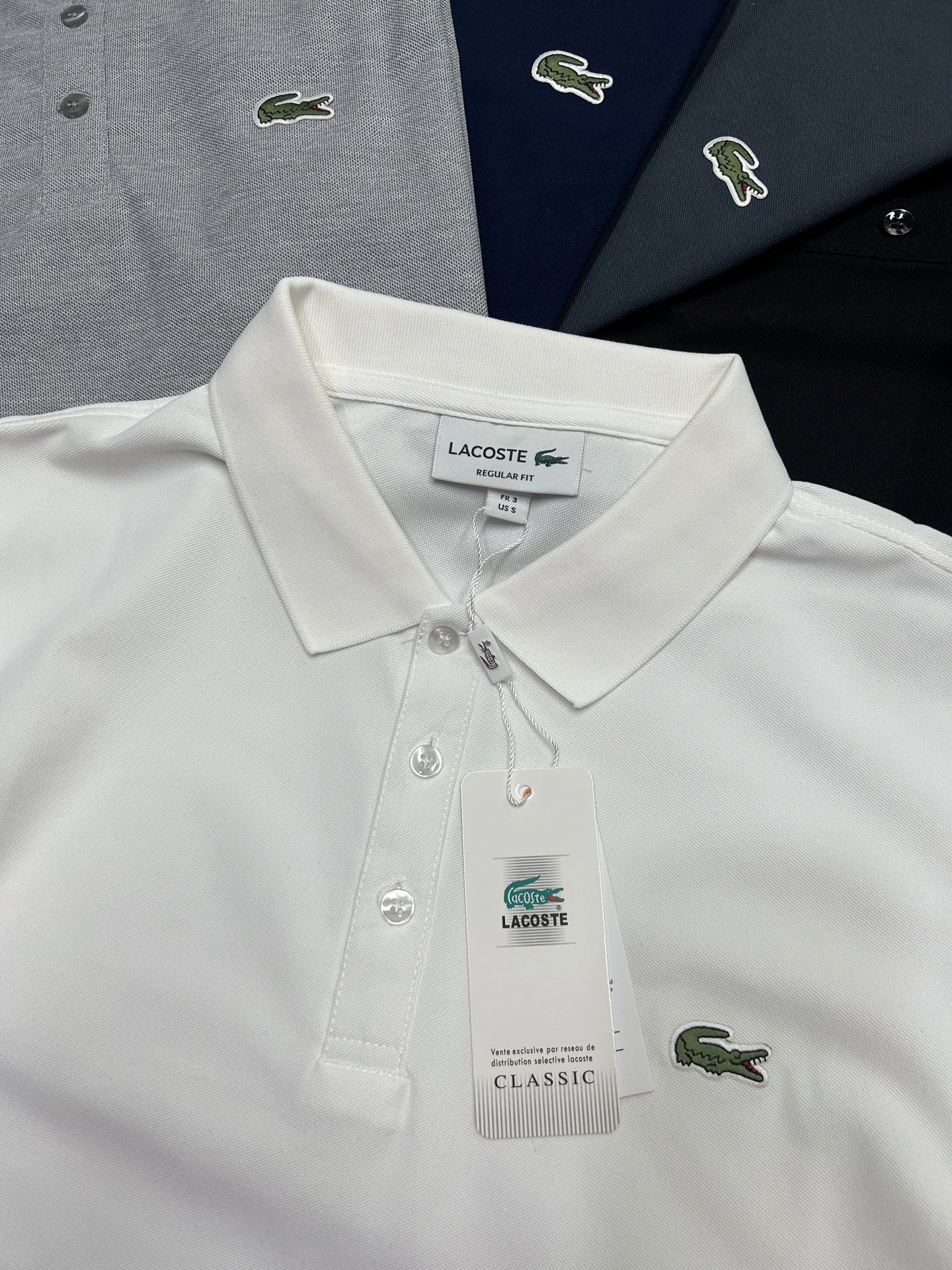 这款衣服是AAAAA 1:1 质量 (非常棒). 使用了和原版一模一样的材料. 商标部分也保持了和LACOSTE一样. 图片拍摄是实物衣服拍摄, 您所收到的实物保证和我们图片一模一样.