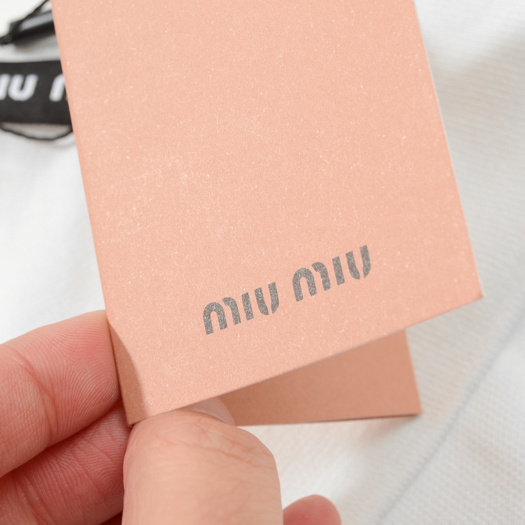 这款衣服是AAAAA 1:1 质量 (非常棒). 使用了和原版一模一样的材料. 商标部分也保持了和缪缪/Miu Miu一样. 图片拍摄是实物衣服拍摄, 您所收到的实物保证和我们图片一模一样.