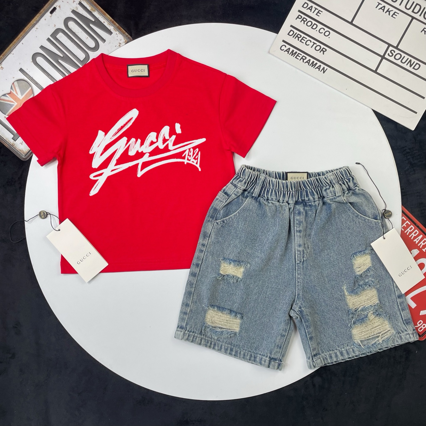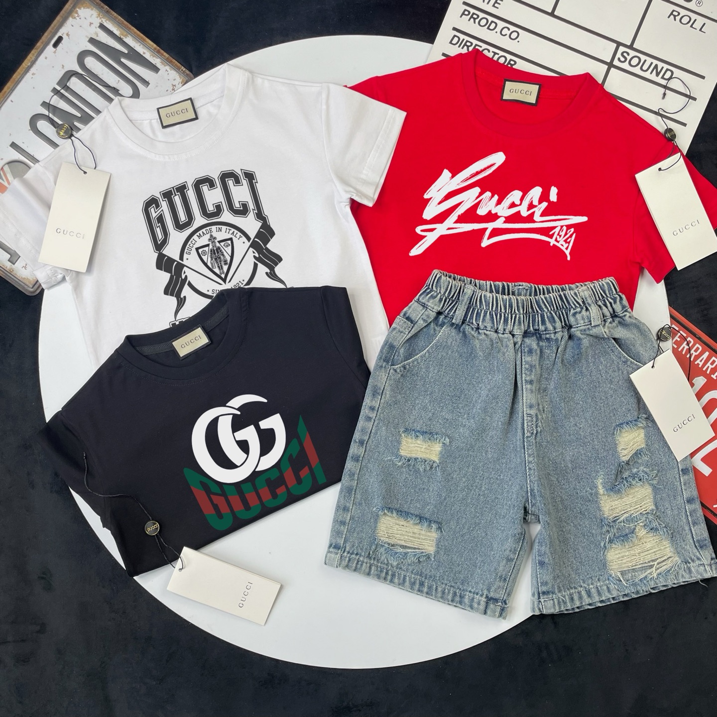 这款children's clothes是AAAAA 1:1 质量 (非常棒). 使用了和原版一模一样的材料. 商标部分也保持了和古奇/Gucci一样. 图片拍摄是实物children's clothes拍摄, 您所收到的实物保证和我们图片一模一样.