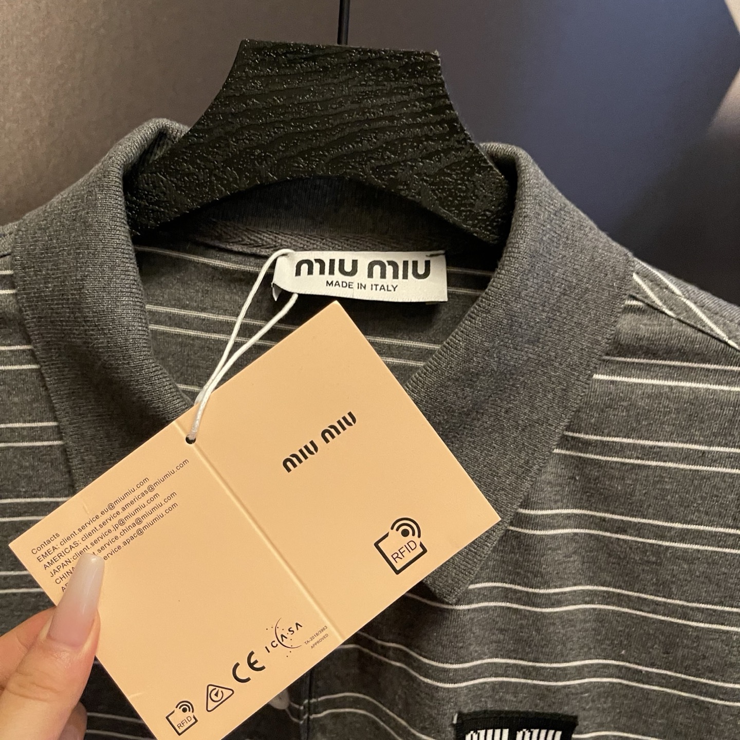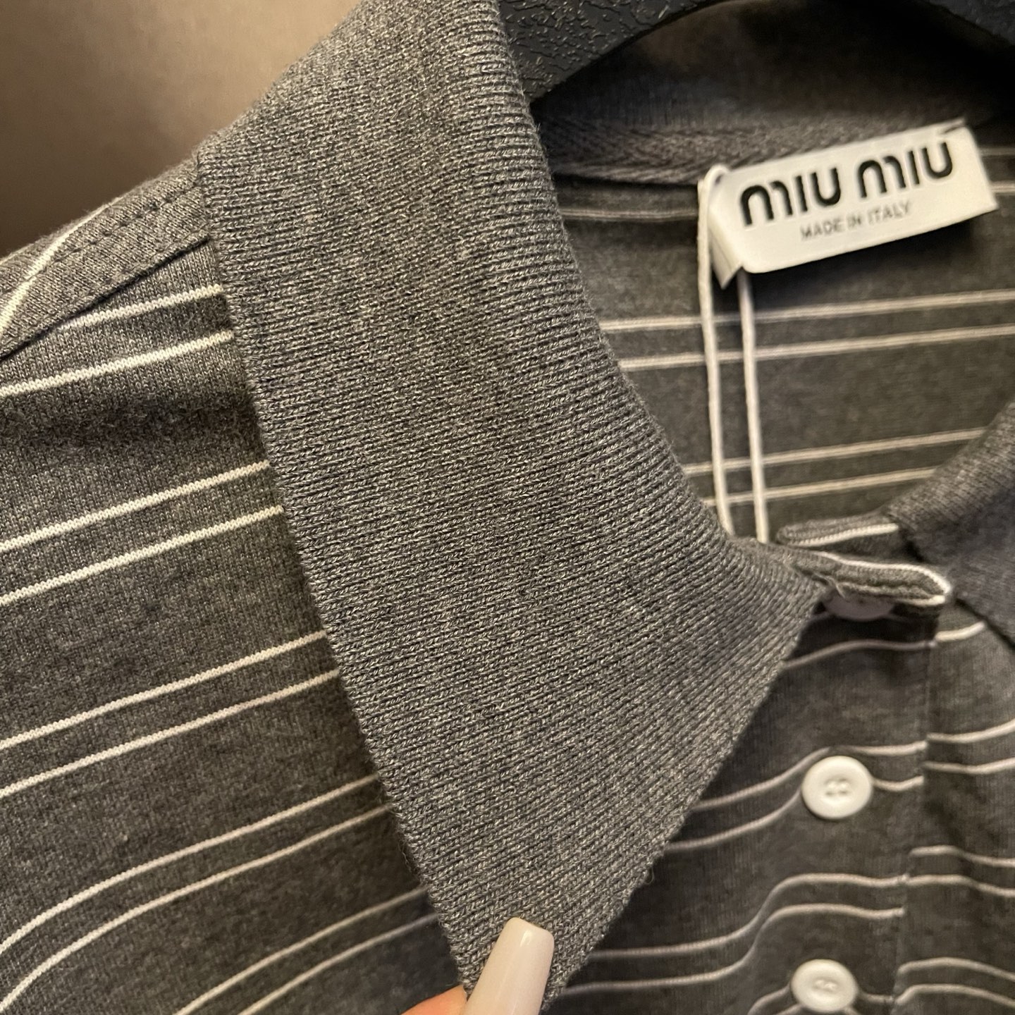 这款衣服是AAAAA 1:1 质量 (非常棒). 使用了和原版一模一样的材料. 商标部分也保持了和缪缪/Miu Miu一样. 图片拍摄是实物衣服拍摄, 您所收到的实物保证和我们图片一模一样.