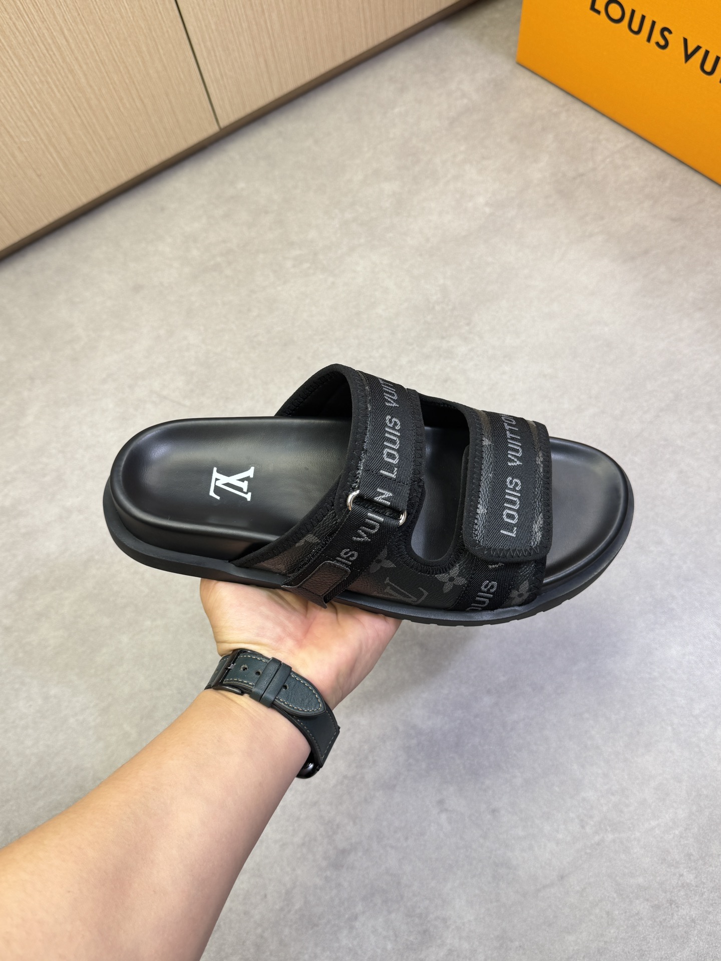这款鞋子是AAAAA 1:1 质量 (非常棒). 使用了和原版一模一样的材料. 商标部分也保持了和路易威登/Louis Vuitton一样. 图片拍摄是实物鞋子拍摄, 您所收到的实物保证和我们图片一模一样.