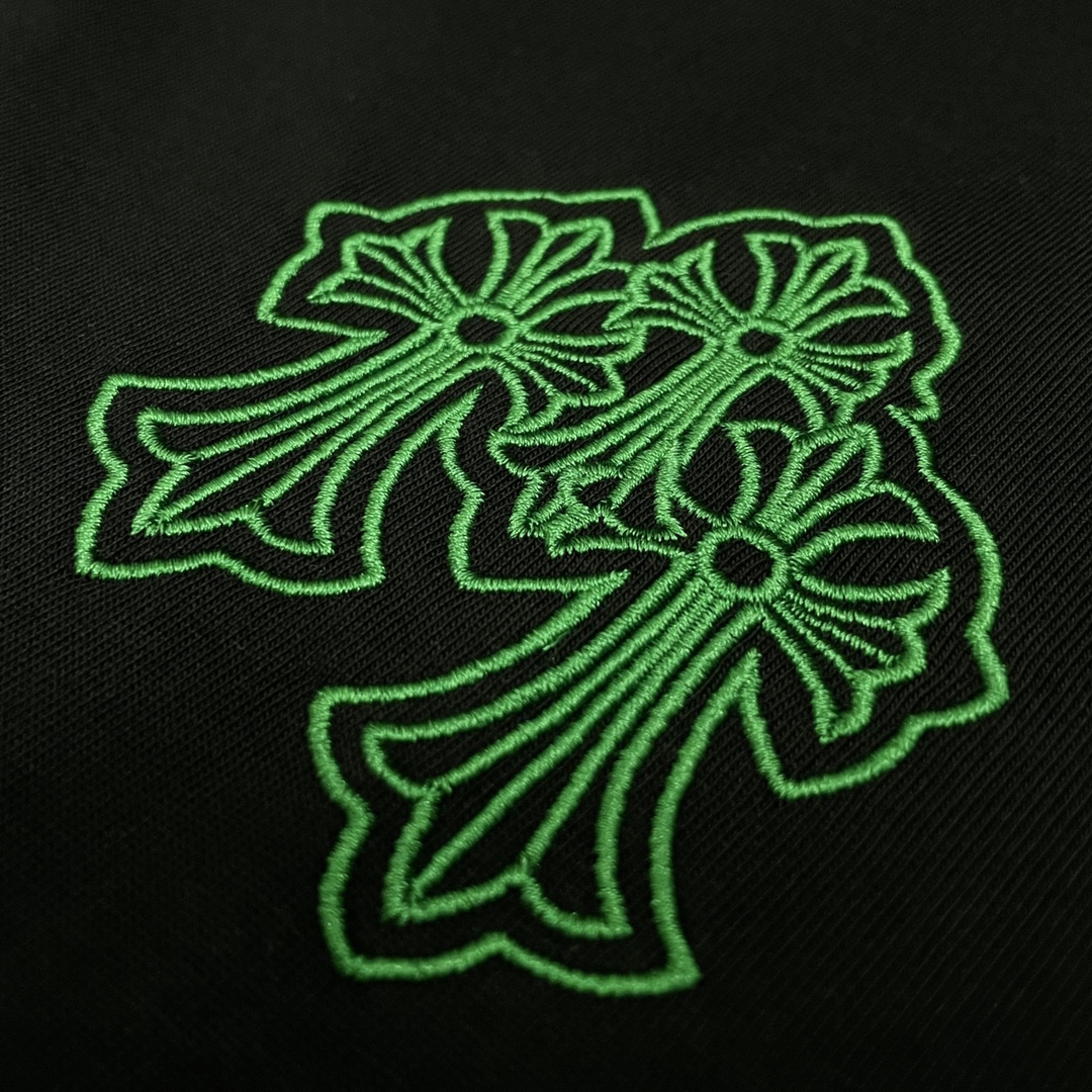 这款衣服是AAAAA 1:1 质量 (非常棒). 使用了和原版一模一样的材料. 商标部分也保持了和克罗心/Chrome Hearts一样. 图片拍摄是实物衣服拍摄, 您所收到的实物保证和我们图片一模一样.