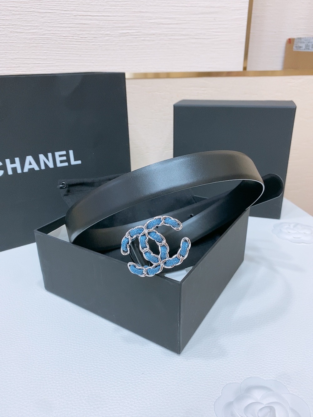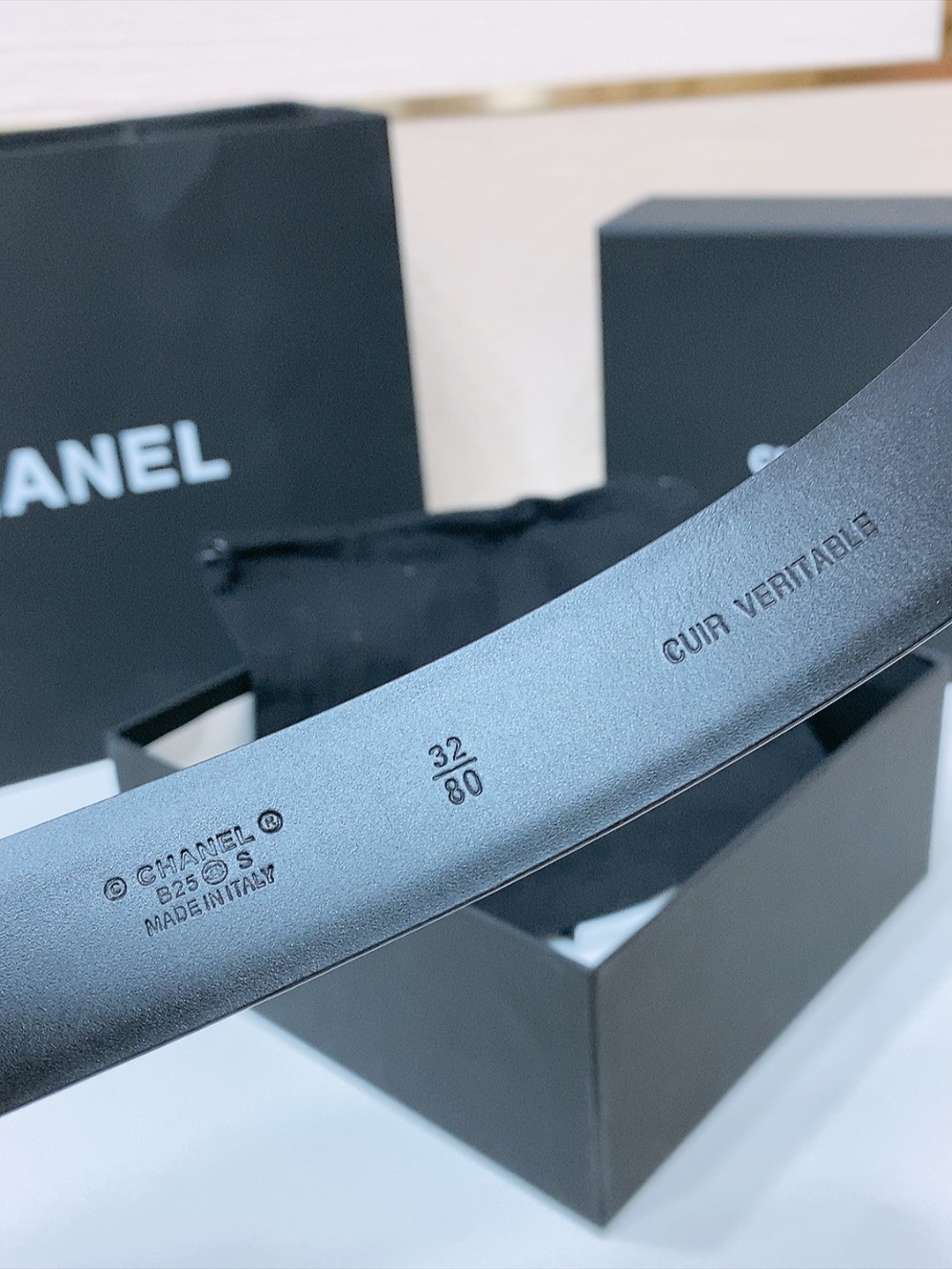 这款皮带是AAAAA 1:1 质量 (非常棒). 使用了和原版一模一样的材料. 商标部分也保持了和香奈儿/Chanel一样. 图片拍摄是实物皮带拍摄, 您所收到的实物保证和我们图片一模一样.