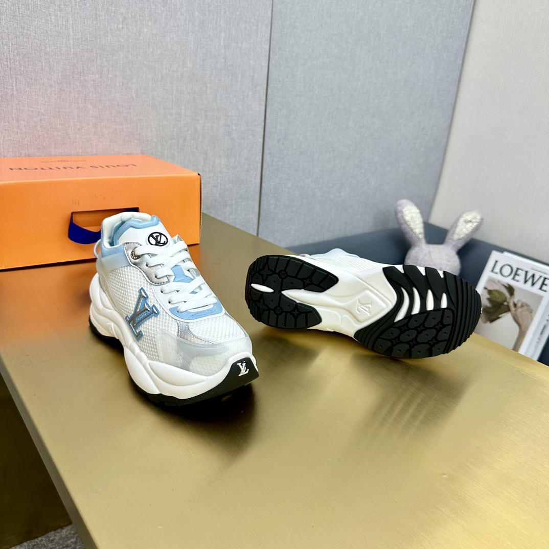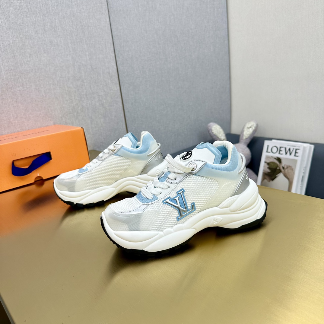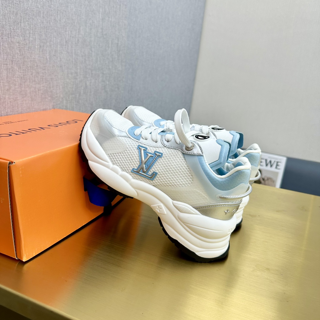 这款鞋子是AAAAA 1:1 质量 (非常棒). 使用了和原版一模一样的材料. 商标部分也保持了和路易威登/Louis Vuitton一样. 图片拍摄是实物鞋子拍摄, 您所收到的实物保证和我们图片一模一样.