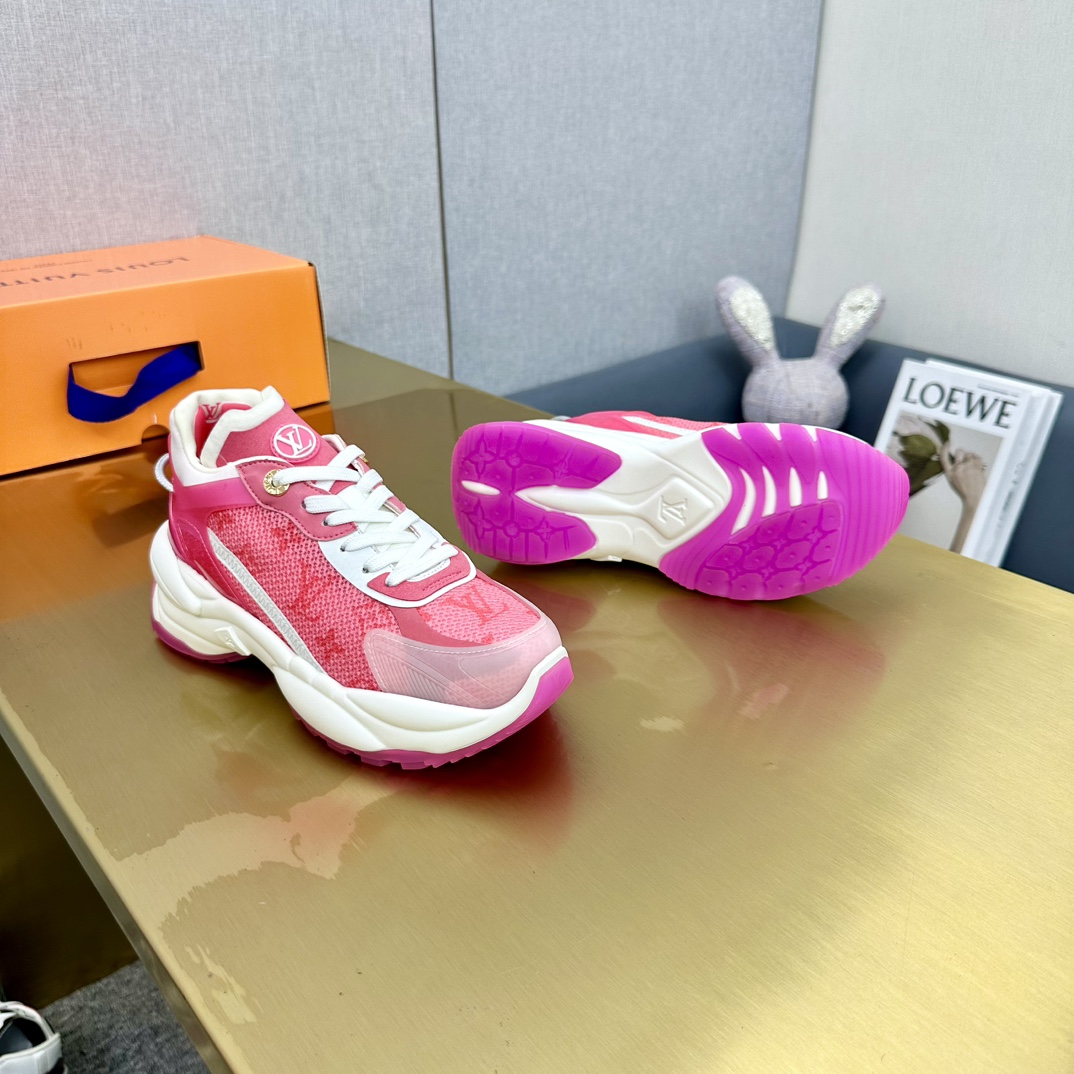 这款鞋子是AAAAA 1:1 质量 (非常棒). 使用了和原版一模一样的材料. 商标部分也保持了和路易威登/Louis Vuitton一样. 图片拍摄是实物鞋子拍摄, 您所收到的实物保证和我们图片一模一样.