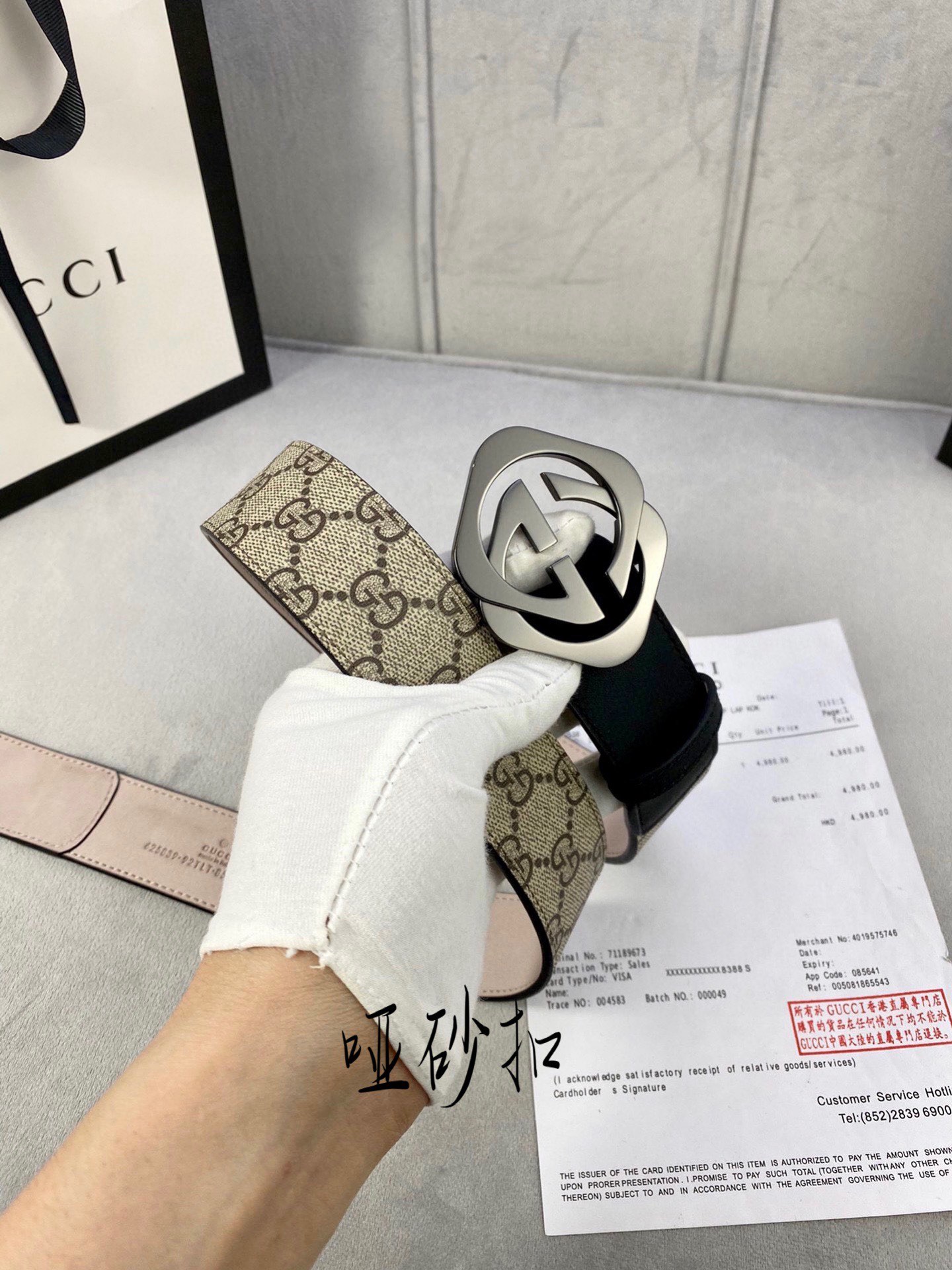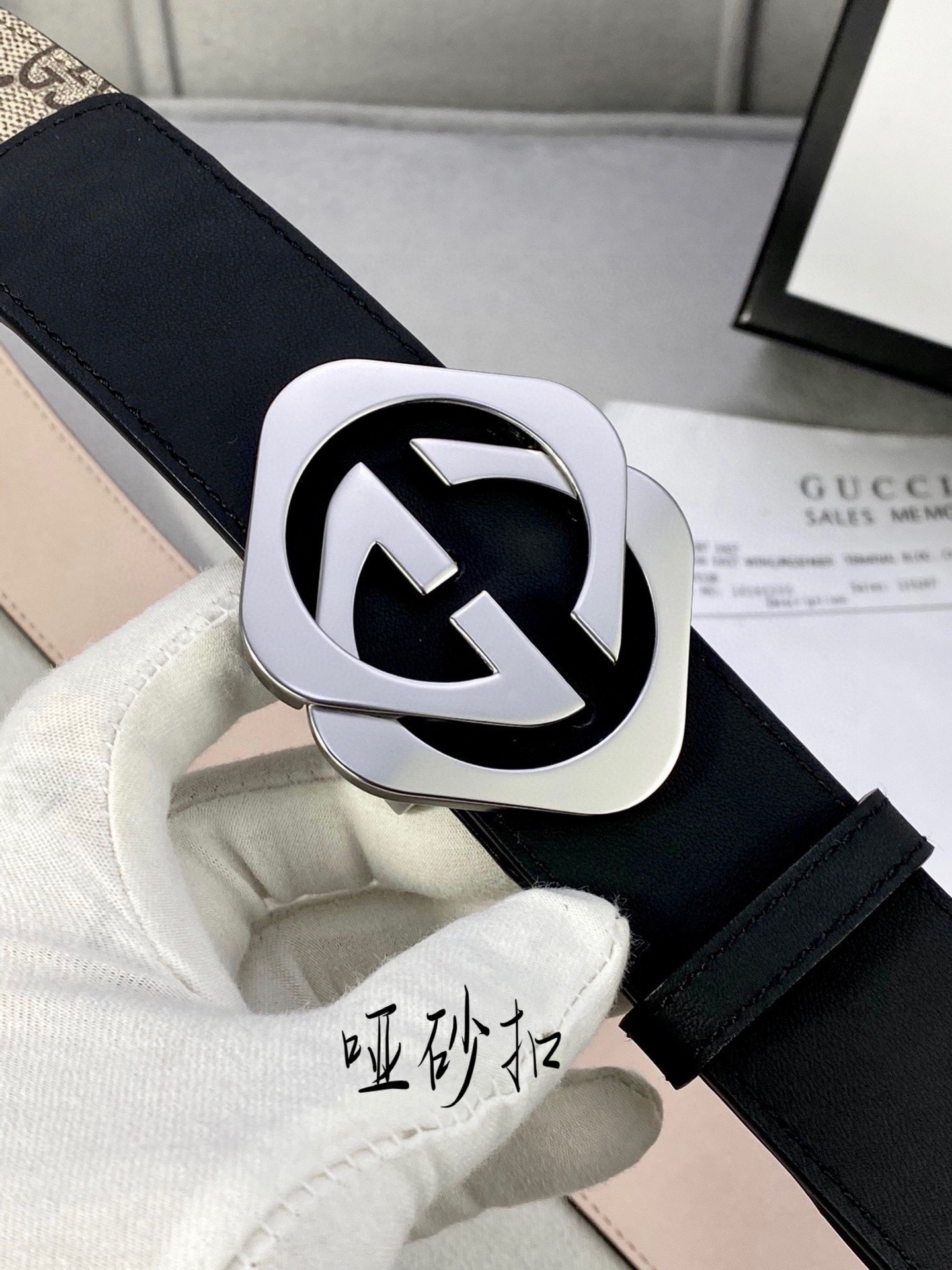 这款皮带是AAAAA 1:1 质量 (非常棒). 使用了和原版一模一样的材料. 商标部分也保持了和古奇/Gucci一样. 图片拍摄是实物皮带拍摄, 您所收到的实物保证和我们图片一模一样.