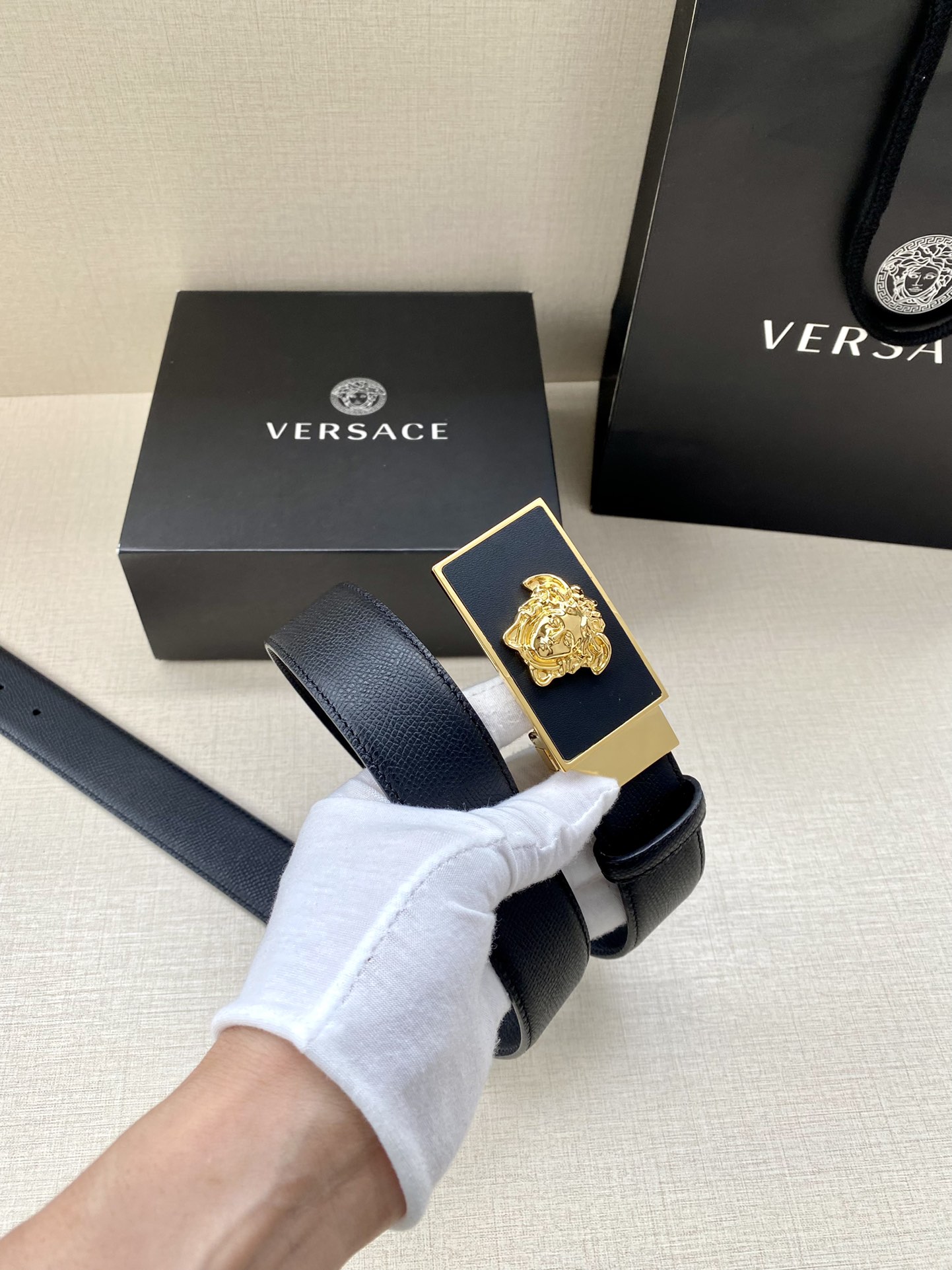 这款皮带是AAAAA 1:1 质量 (非常棒). 使用了和原版一模一样的材料. 商标部分也保持了和范思哲/Versace一样. 图片拍摄是实物皮带拍摄, 您所收到的实物保证和我们图片一模一样.