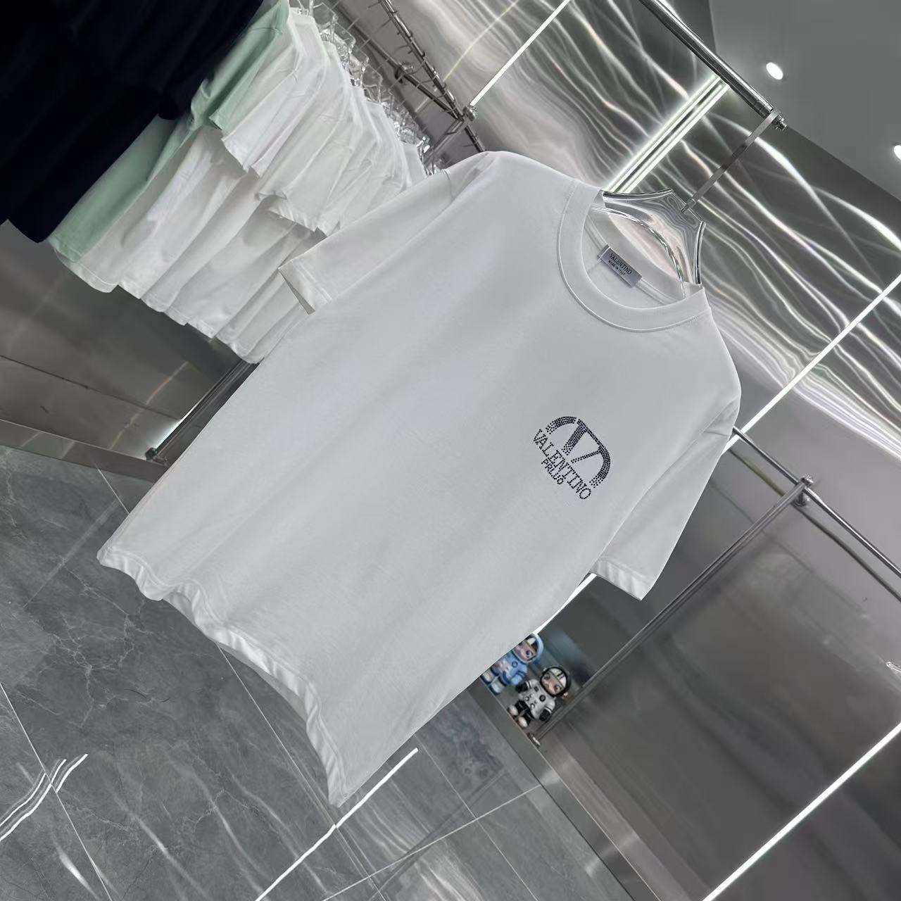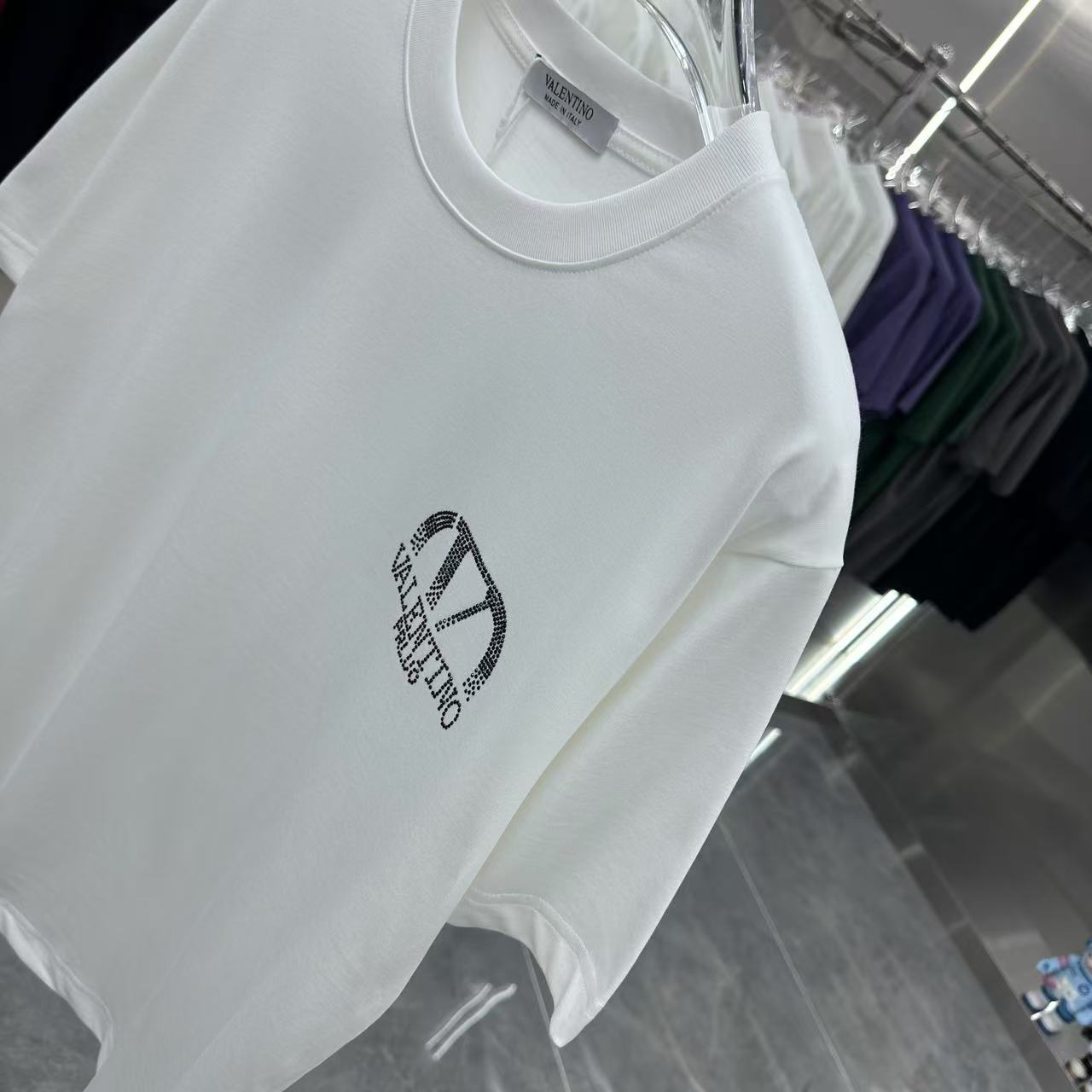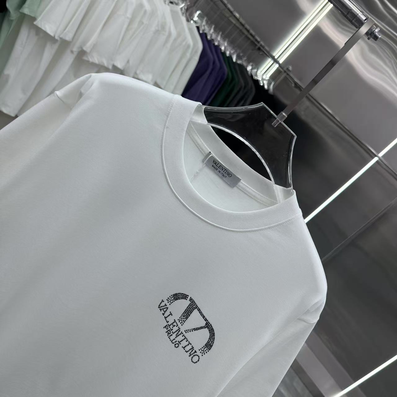 这款衣服是AAAAA 1:1 质量 (非常棒). 使用了和原版一模一样的材料. 商标部分也保持了和华伦天奴/Valentino一样. 图片拍摄是实物衣服拍摄, 您所收到的实物保证和我们图片一模一样.