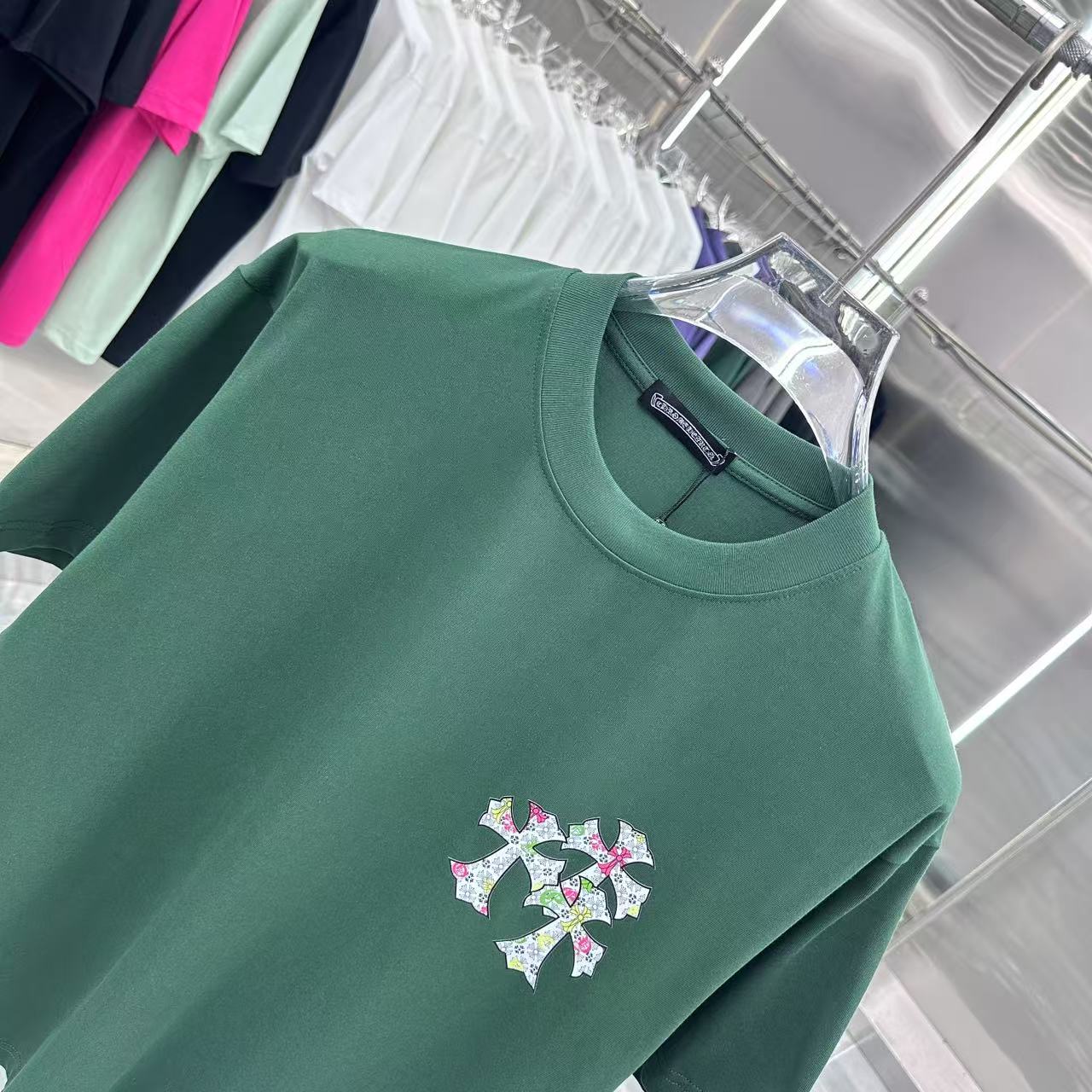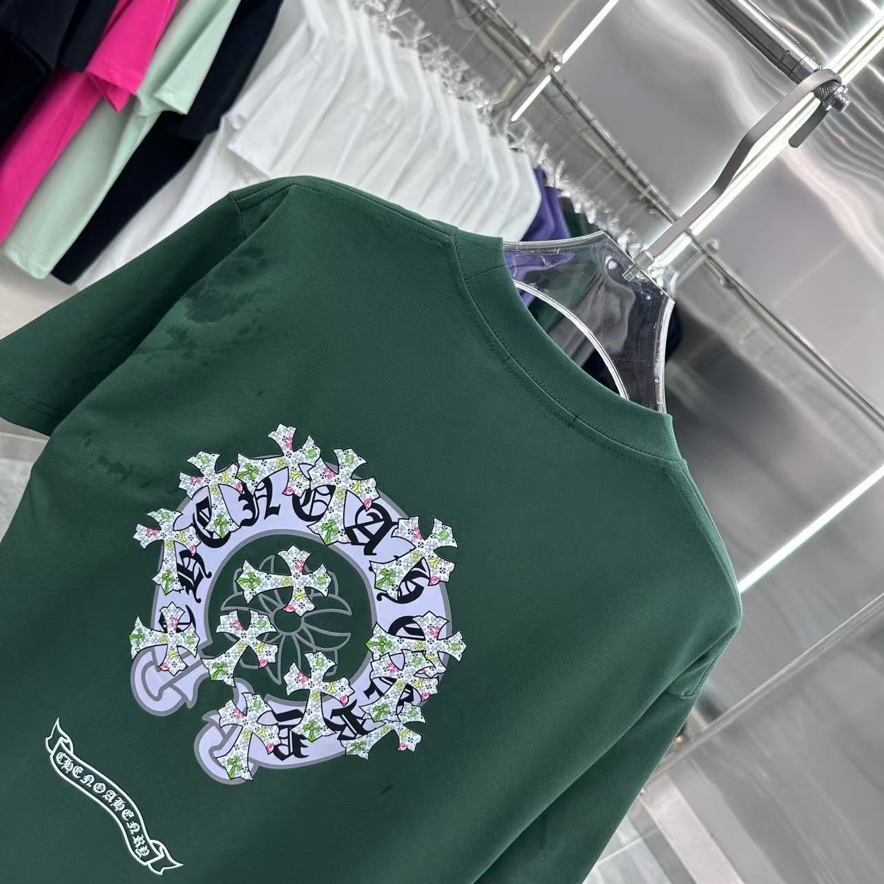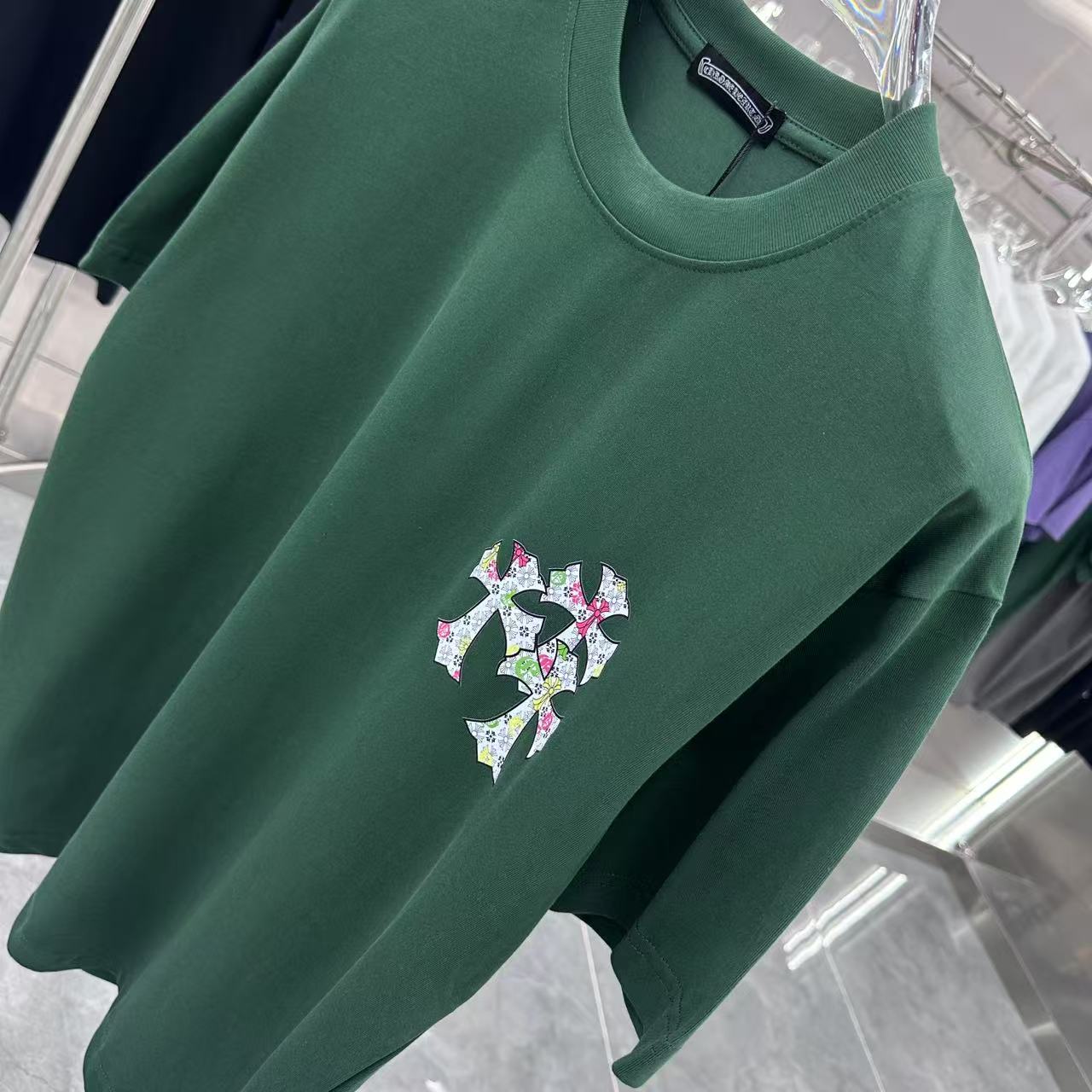这款衣服是AAAAA 1:1 质量 (非常棒). 使用了和原版一模一样的材料. 商标部分也保持了和克罗心/Chrome Hearts一样. 图片拍摄是实物衣服拍摄, 您所收到的实物保证和我们图片一模一样.