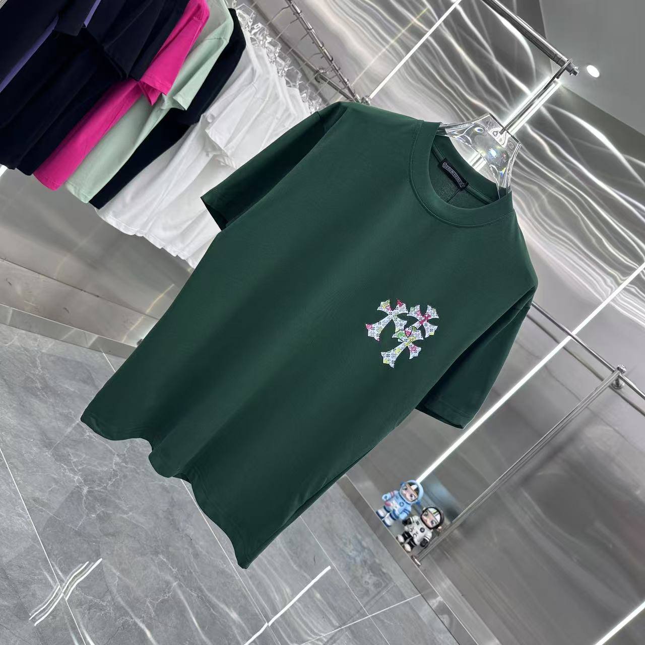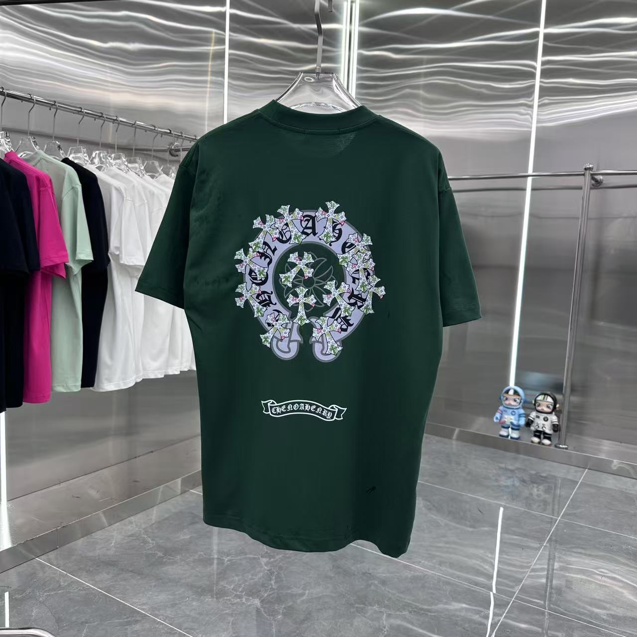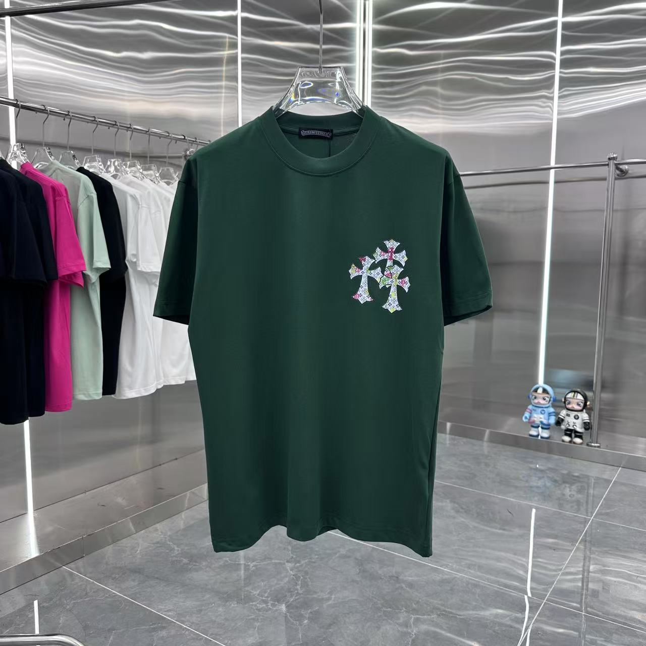 这款衣服是AAAAA 1:1 质量 (非常棒). 使用了和原版一模一样的材料. 商标部分也保持了和克罗心/Chrome Hearts一样. 图片拍摄是实物衣服拍摄, 您所收到的实物保证和我们图片一模一样.