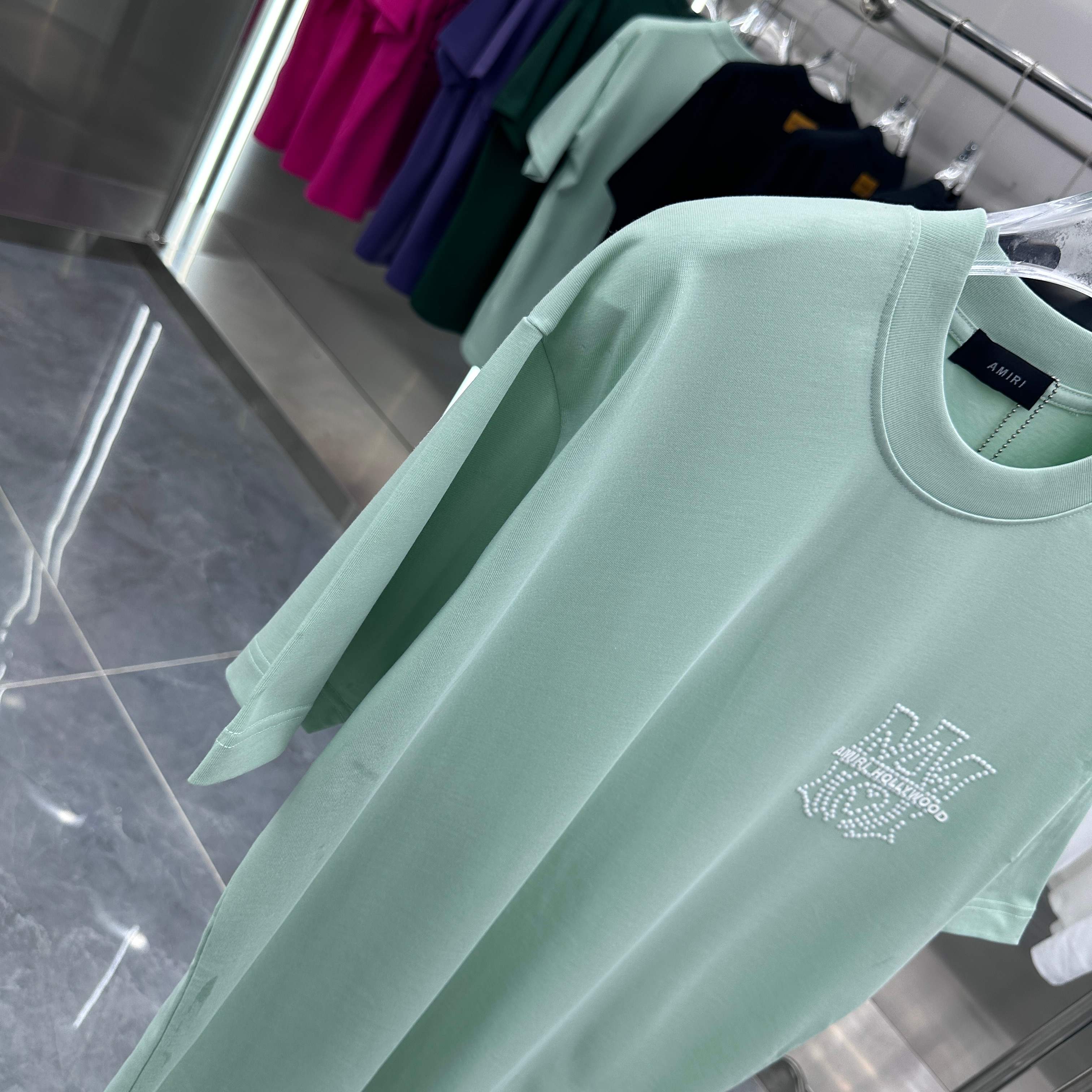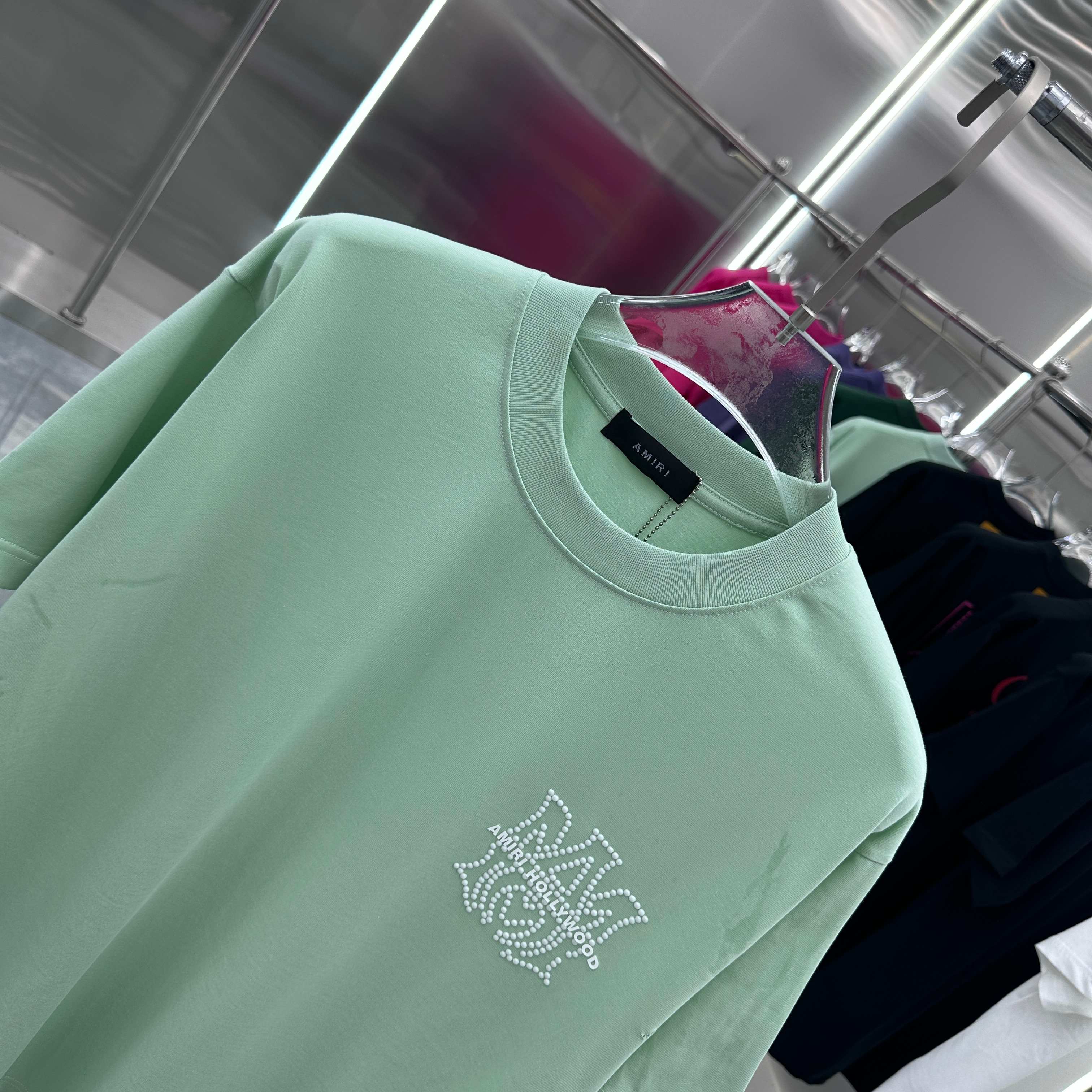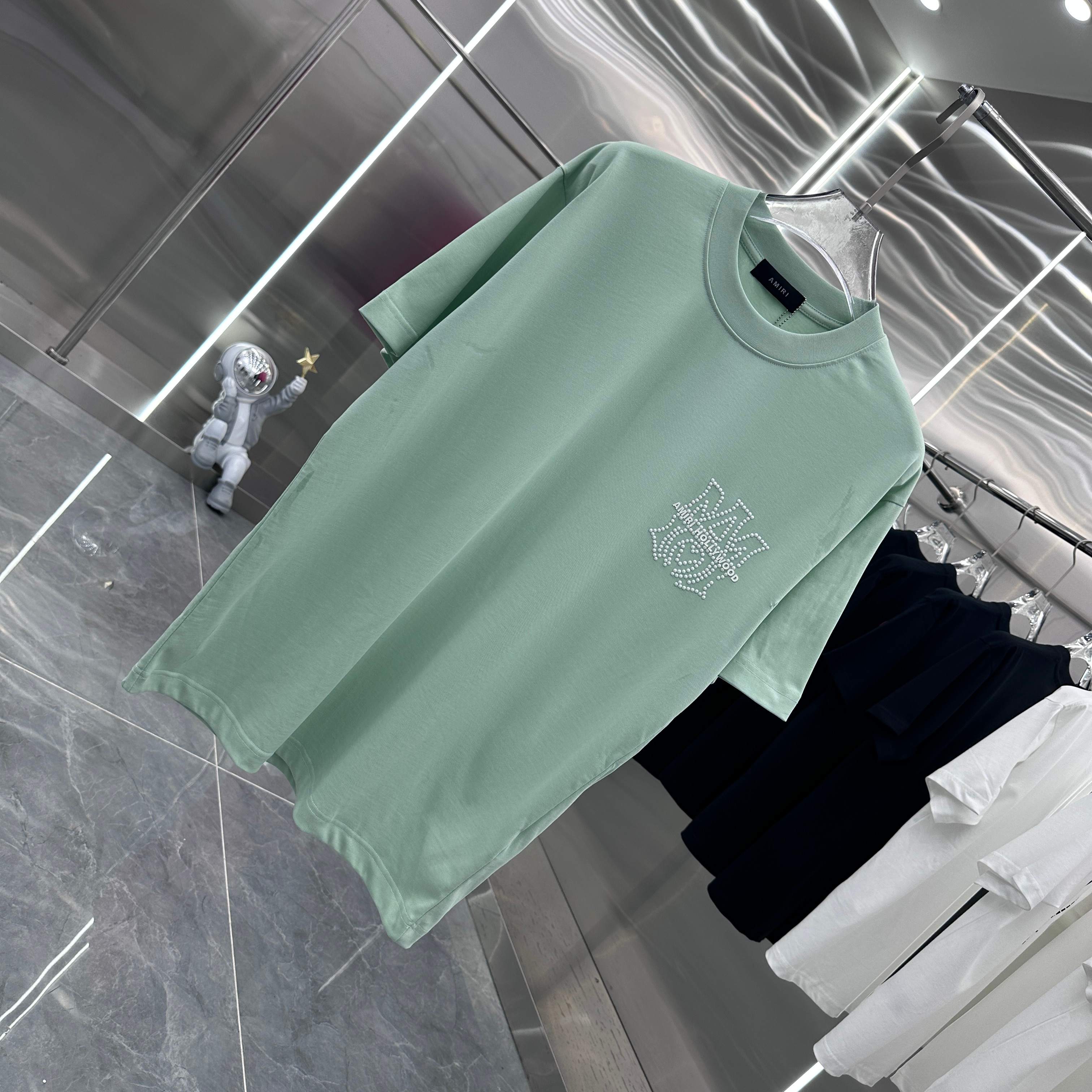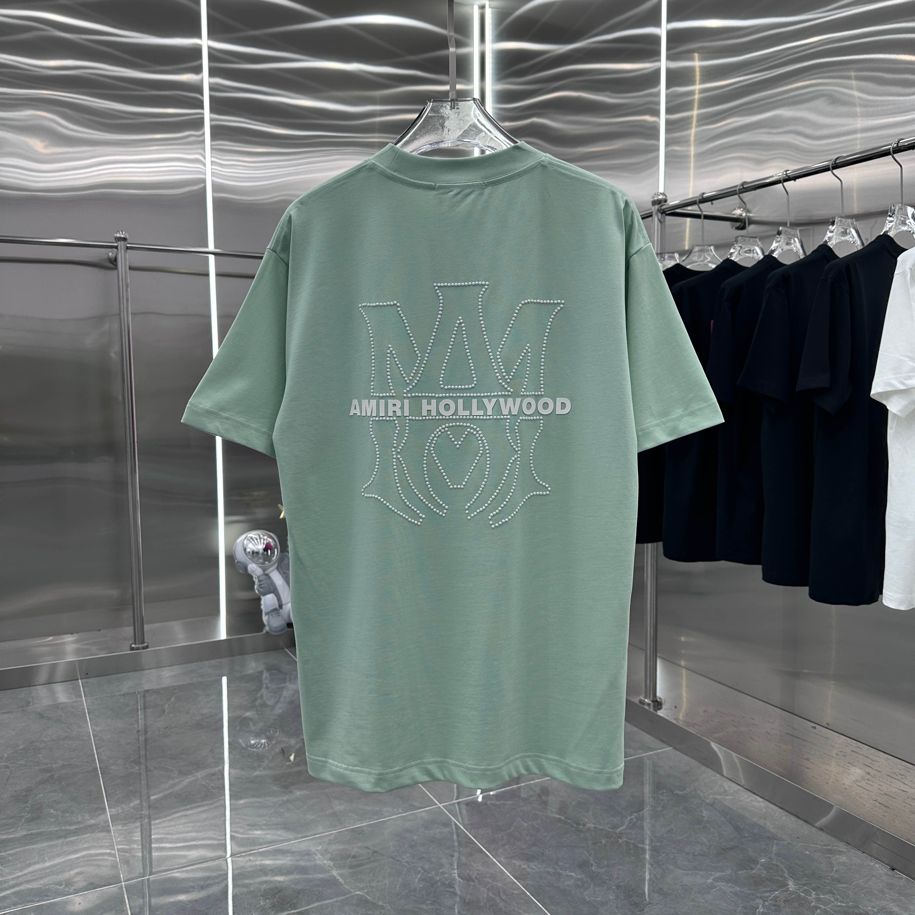 这款衣服是AAAAA 1:1 质量 (非常棒). 使用了和原版一模一样的材料. 商标部分也保持了和AMIRI一样. 图片拍摄是实物衣服拍摄, 您所收到的实物保证和我们图片一模一样.