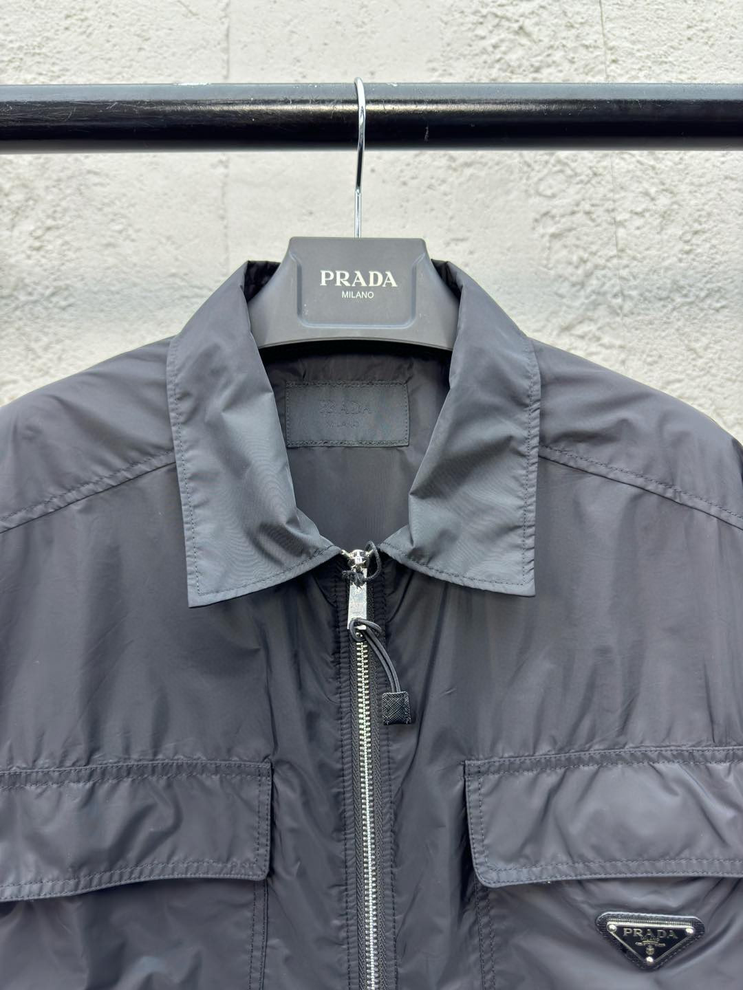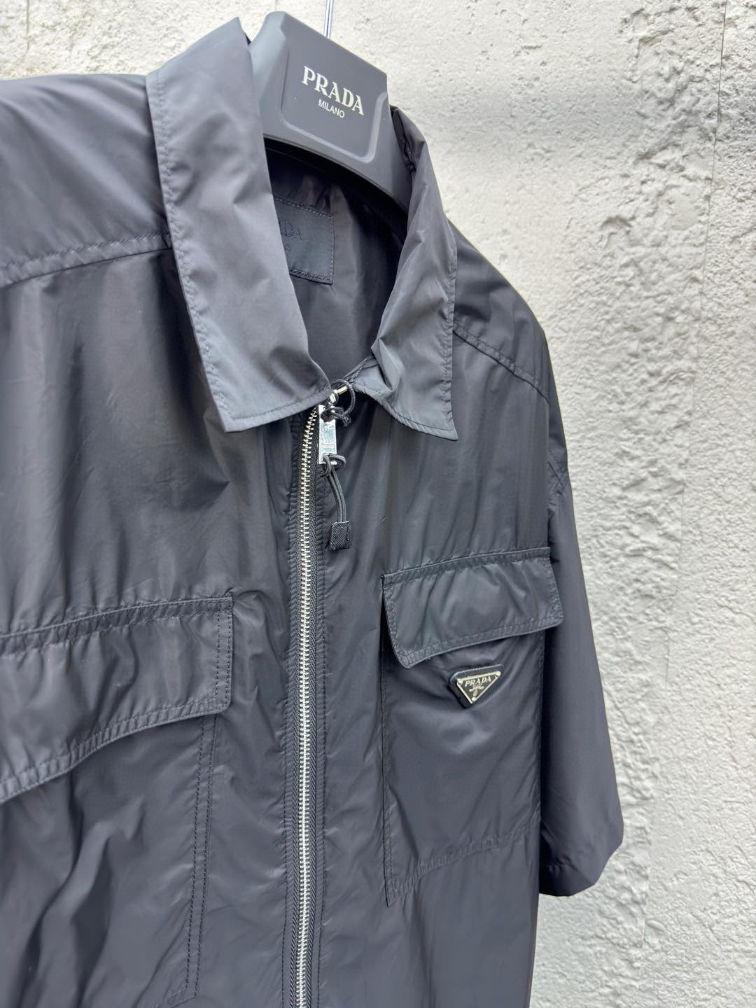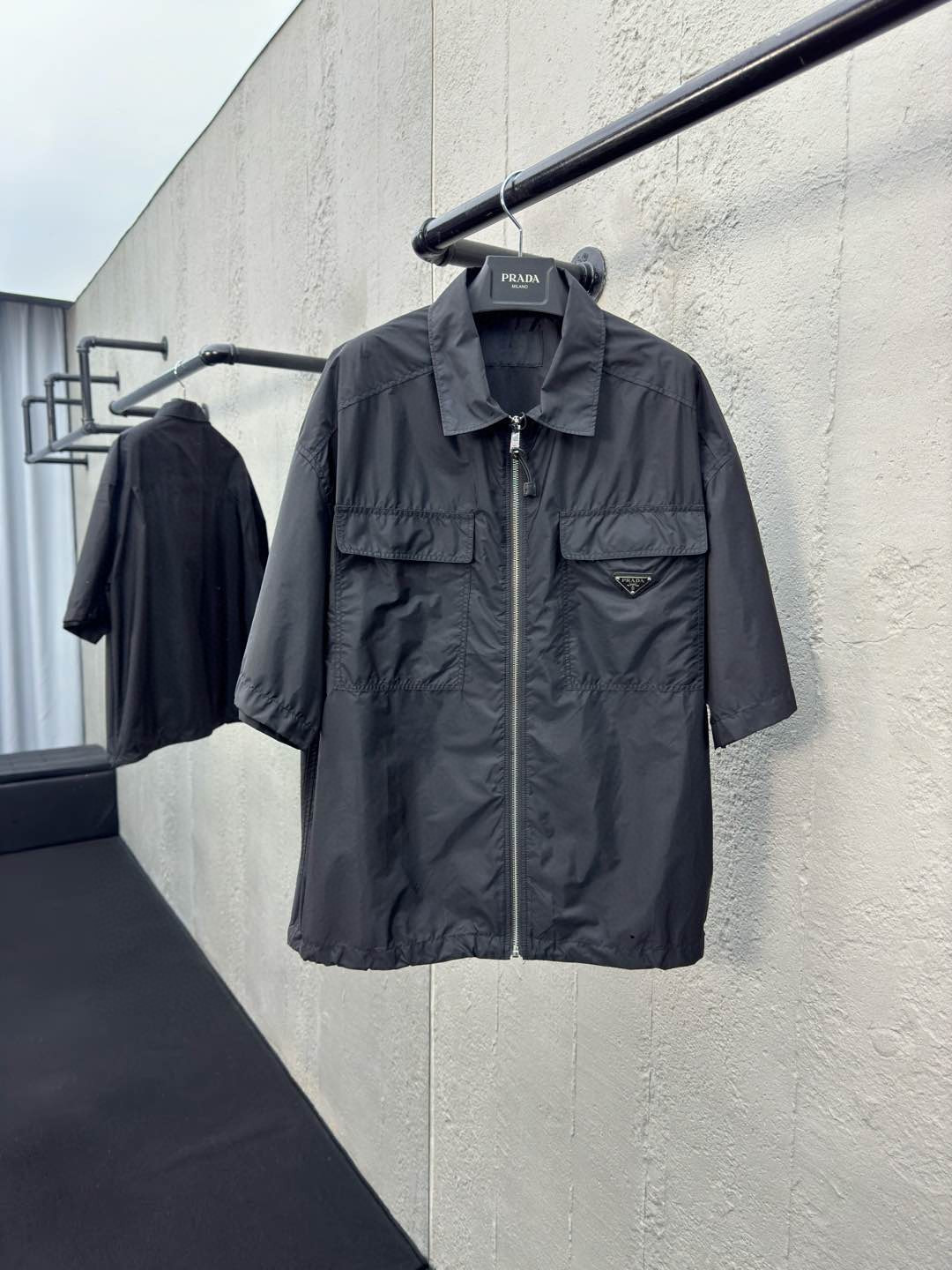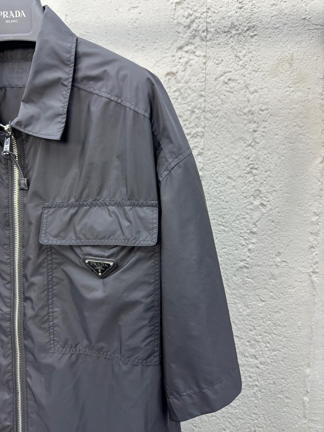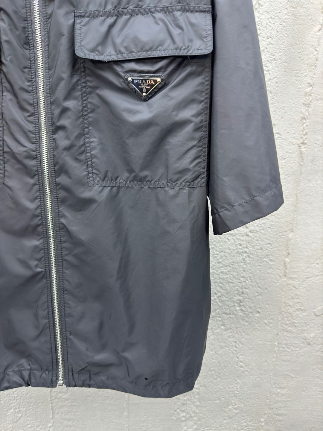 这款衣服是AAAAA 1:1 质量 (非常棒). 使用了和原版一模一样的材料. 商标部分也保持了和普拉达/Prada一样. 图片拍摄是实物衣服拍摄, 您所收到的实物保证和我们图片一模一样.