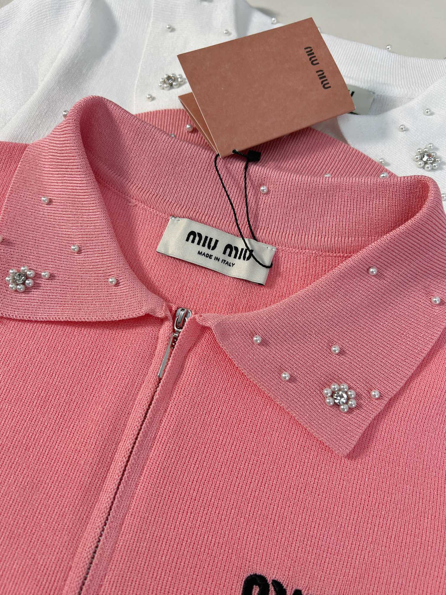 这款衣服是AAAAA 1:1 质量 (非常棒). 使用了和原版一模一样的材料. 商标部分也保持了和缪缪/Miu Miu一样. 图片拍摄是实物衣服拍摄, 您所收到的实物保证和我们图片一模一样.