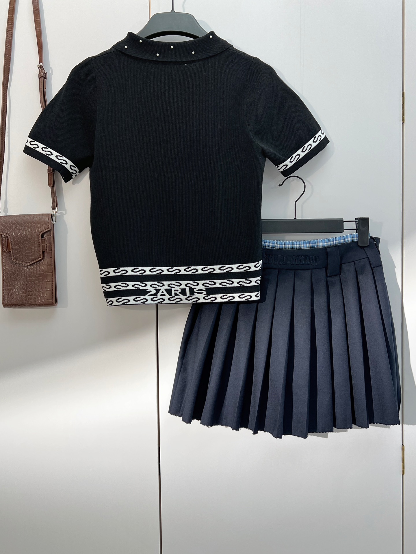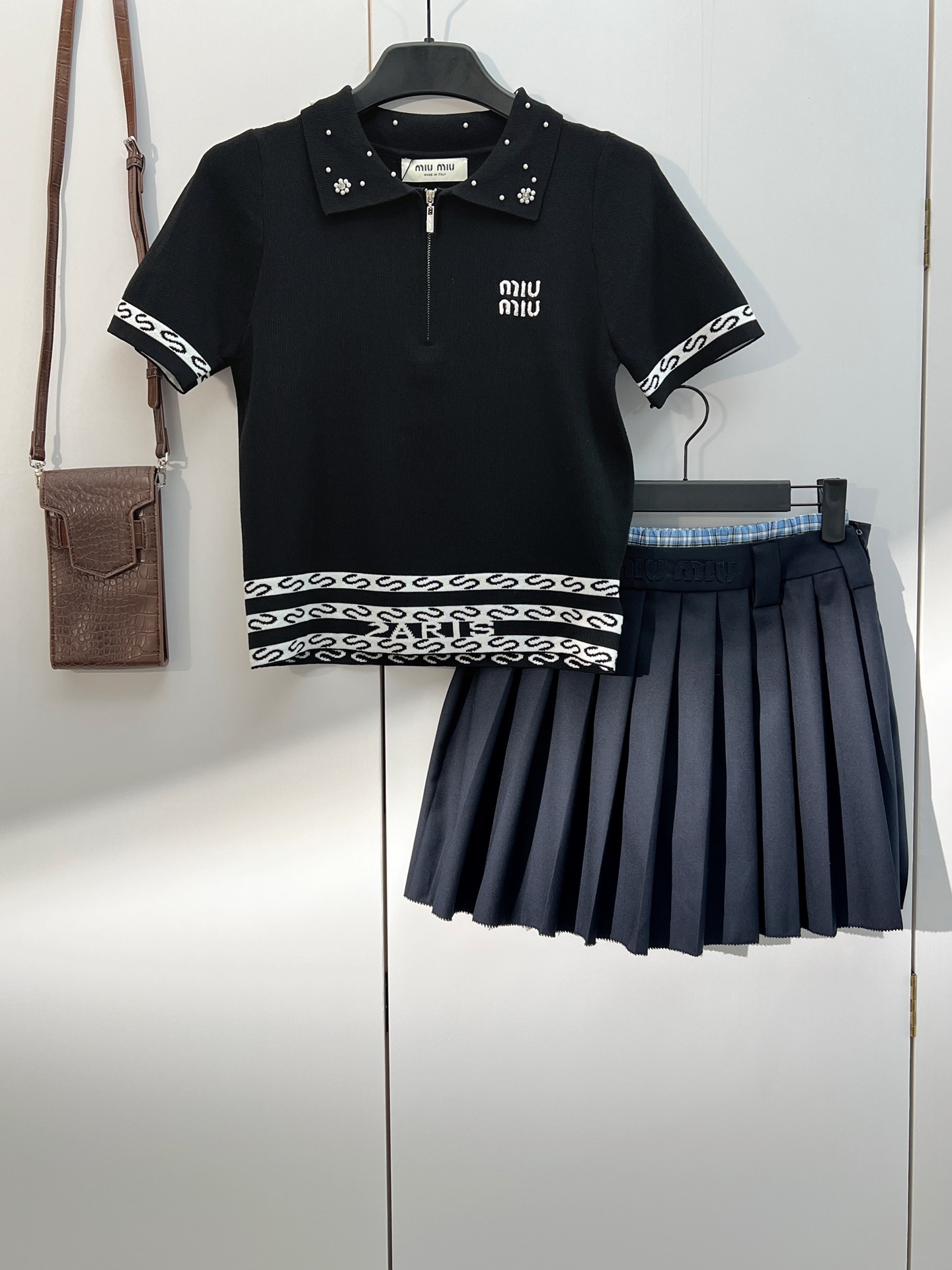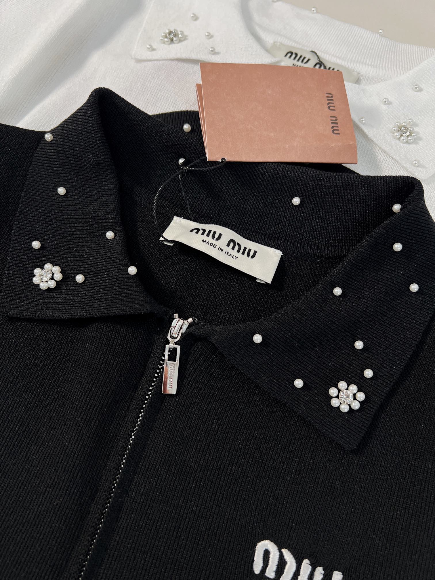 这款衣服是AAAAA 1:1 质量 (非常棒). 使用了和原版一模一样的材料. 商标部分也保持了和缪缪/Miu Miu一样. 图片拍摄是实物衣服拍摄, 您所收到的实物保证和我们图片一模一样.