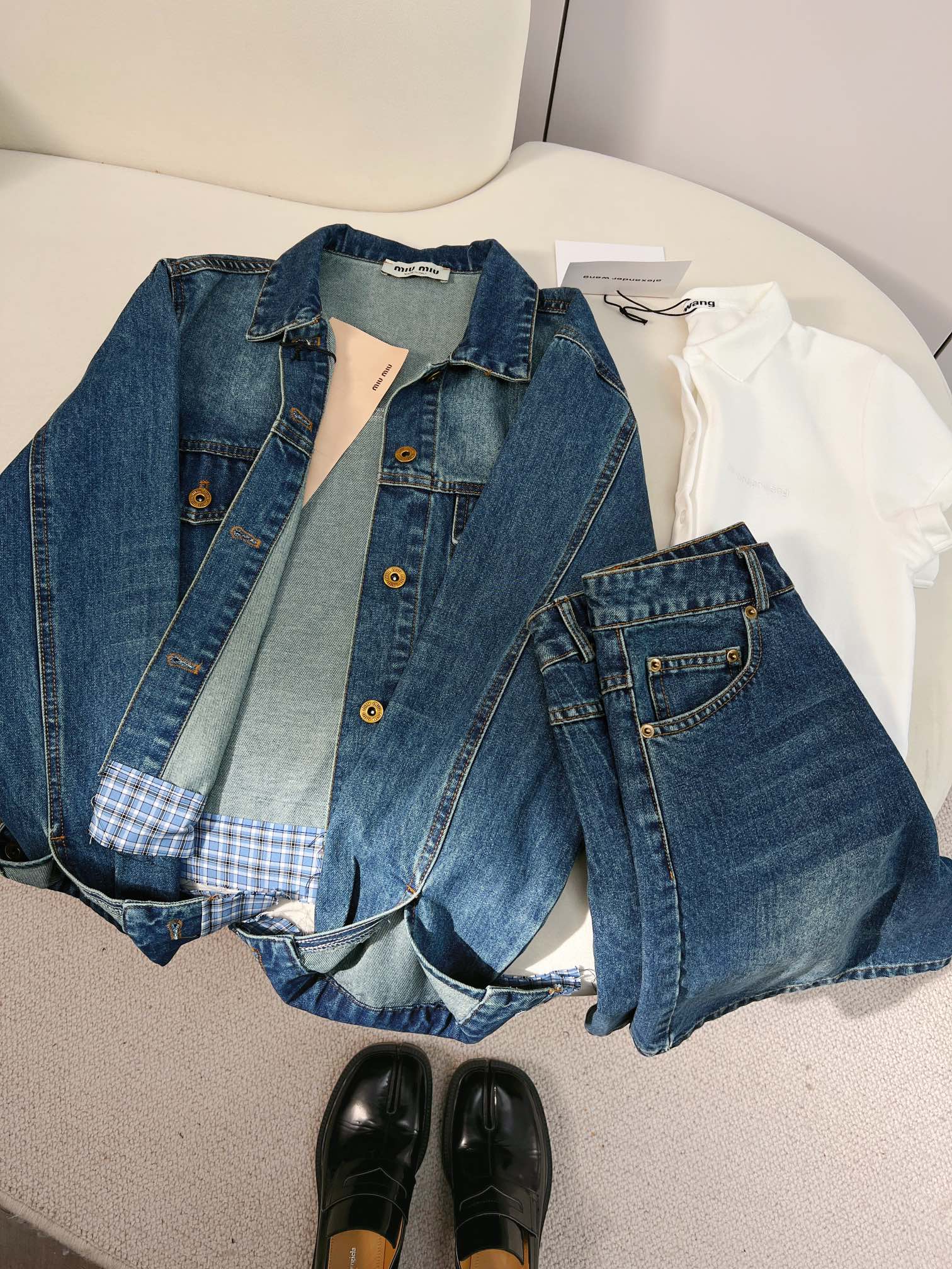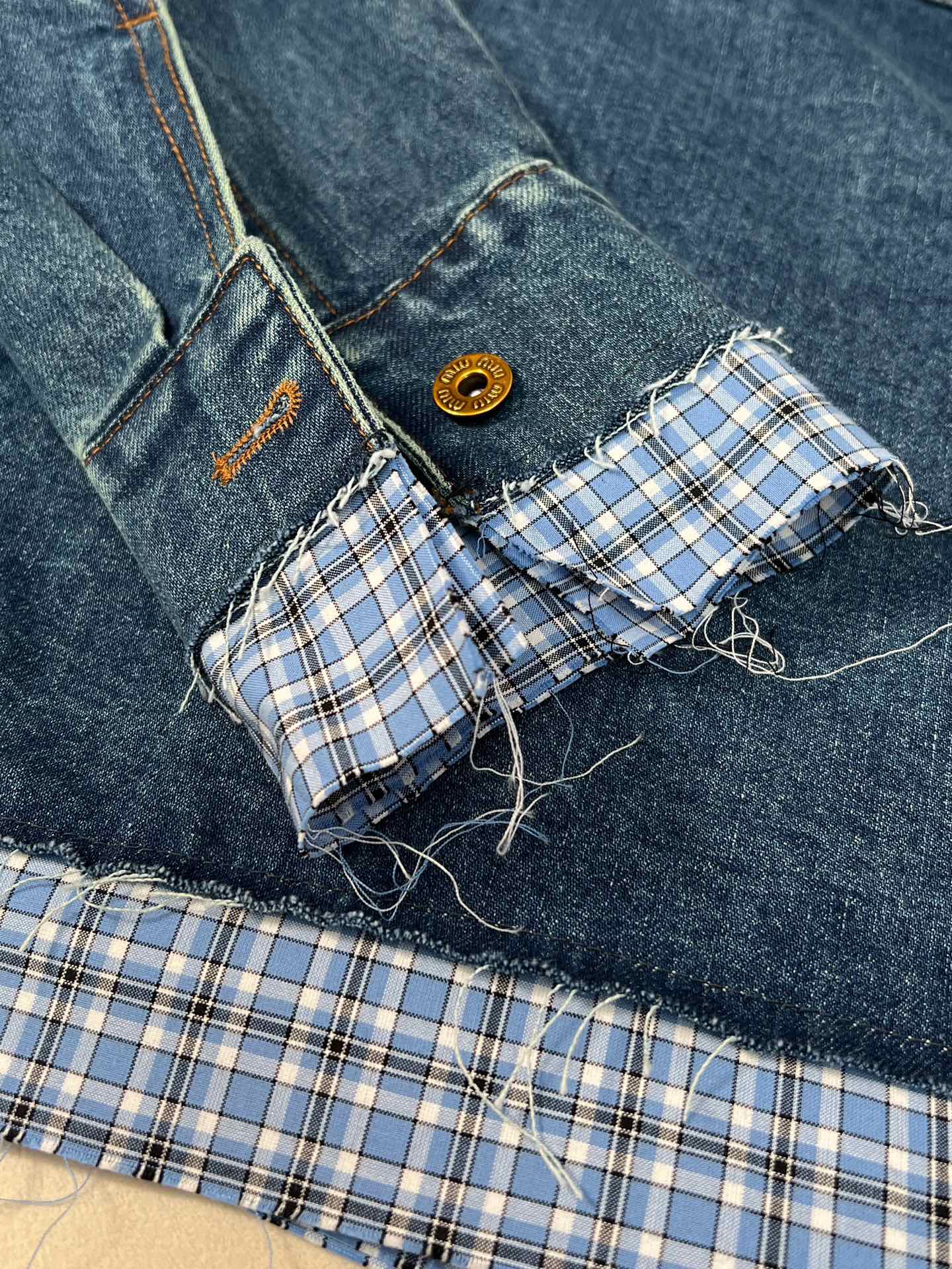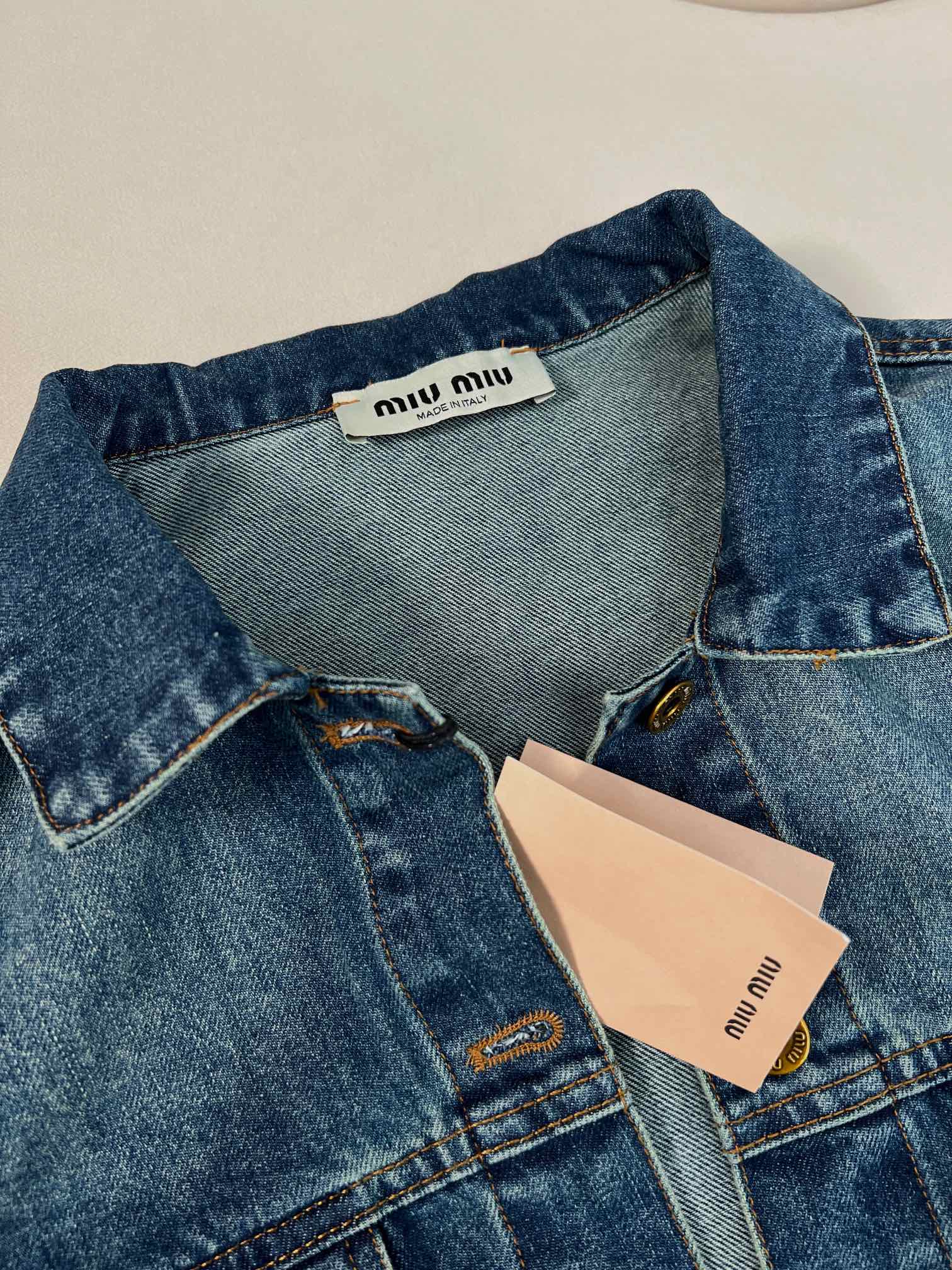 这款衣服是AAAAA 1:1 质量 (非常棒). 使用了和原版一模一样的材料. 商标部分也保持了和缪缪/Miu Miu一样. 图片拍摄是实物衣服拍摄, 您所收到的实物保证和我们图片一模一样.