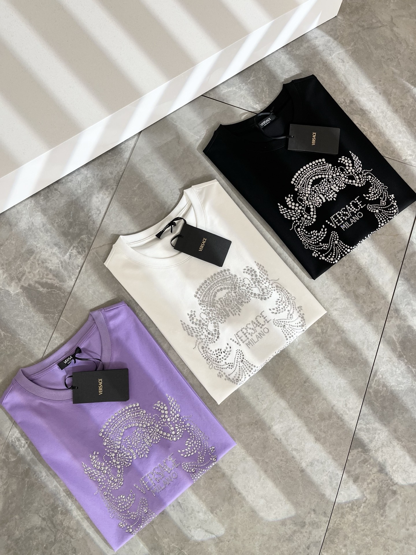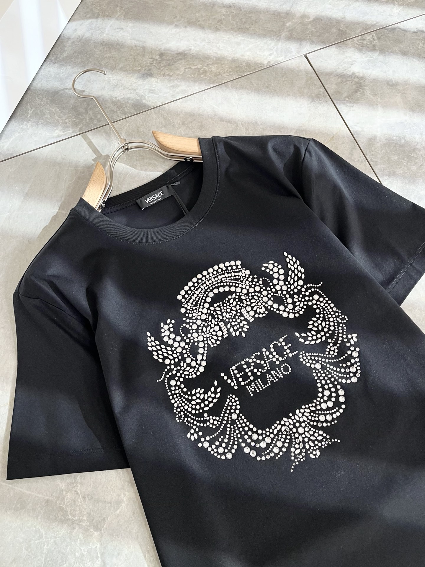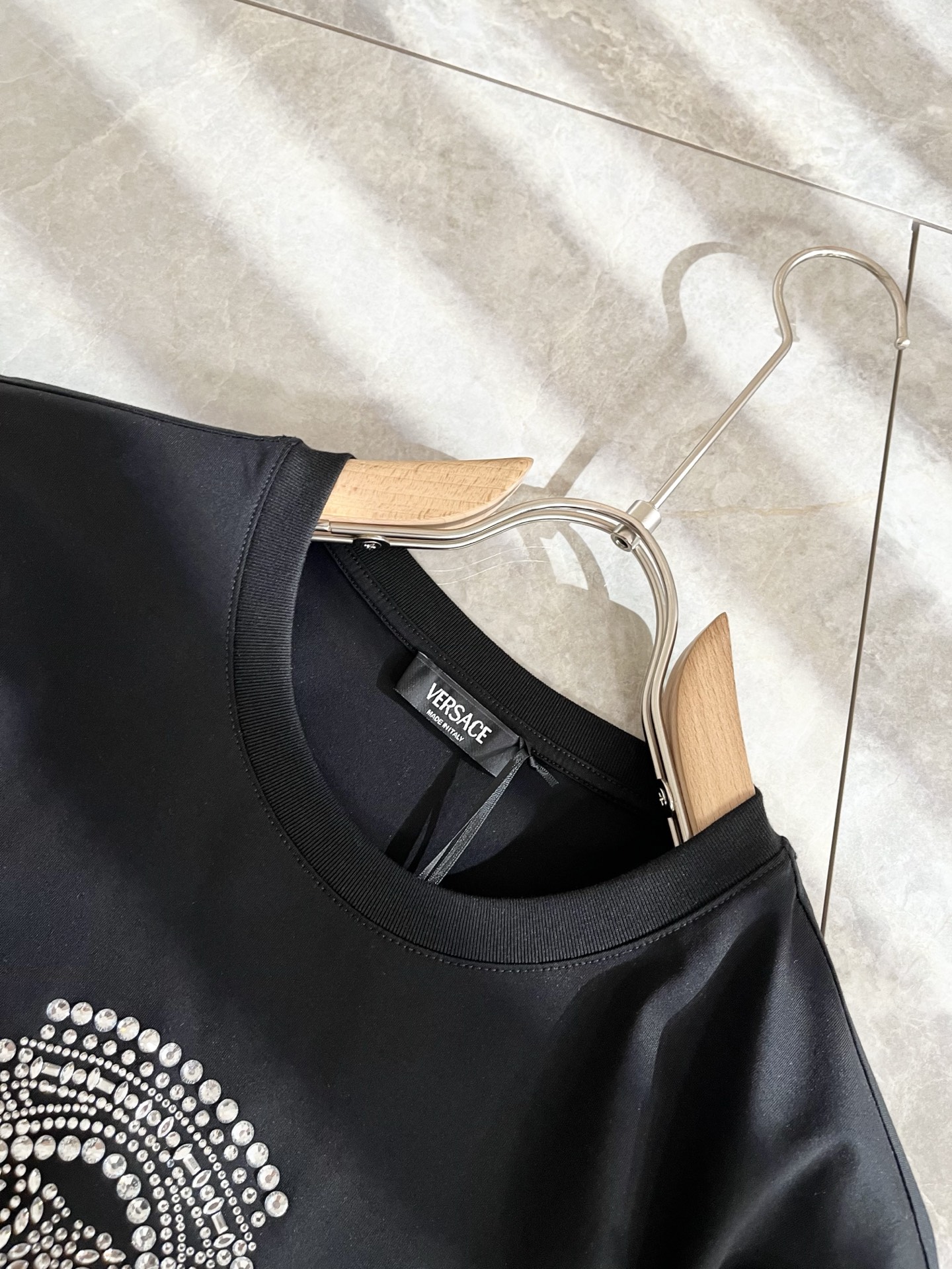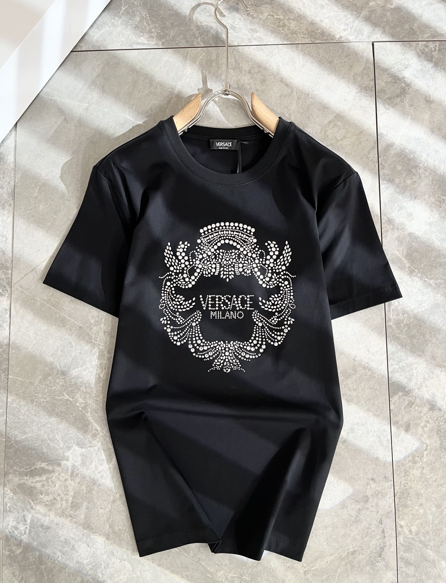 这款衣服是AAAAA 1:1 质量 (非常棒). 使用了和原版一模一样的材料. 商标部分也保持了和范思哲/Versace一样. 图片拍摄是实物衣服拍摄, 您所收到的实物保证和我们图片一模一样.