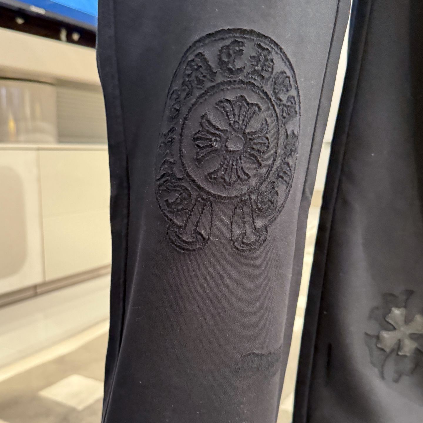 这款衣服是AAAAA 1:1 质量 (非常棒). 使用了和原版一模一样的材料. 商标部分也保持了和克罗心/Chrome Hearts一样. 图片拍摄是实物衣服拍摄, 您所收到的实物保证和我们图片一模一样.