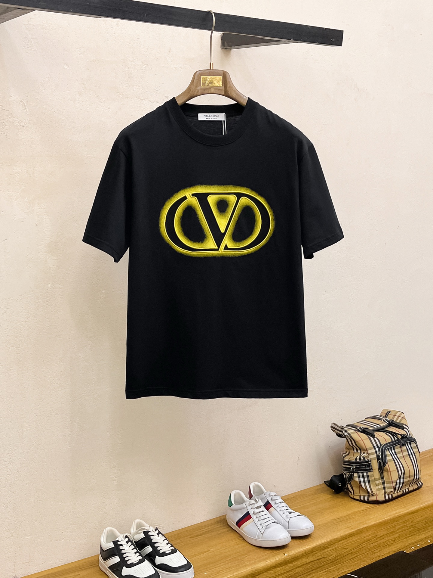 这款衣服是AAAAA 1:1 质量 (非常棒). 使用了和原版一模一样的材料. 商标部分也保持了和华伦天奴/Valentino一样. 图片拍摄是实物衣服拍摄, 您所收到的实物保证和我们图片一模一样.