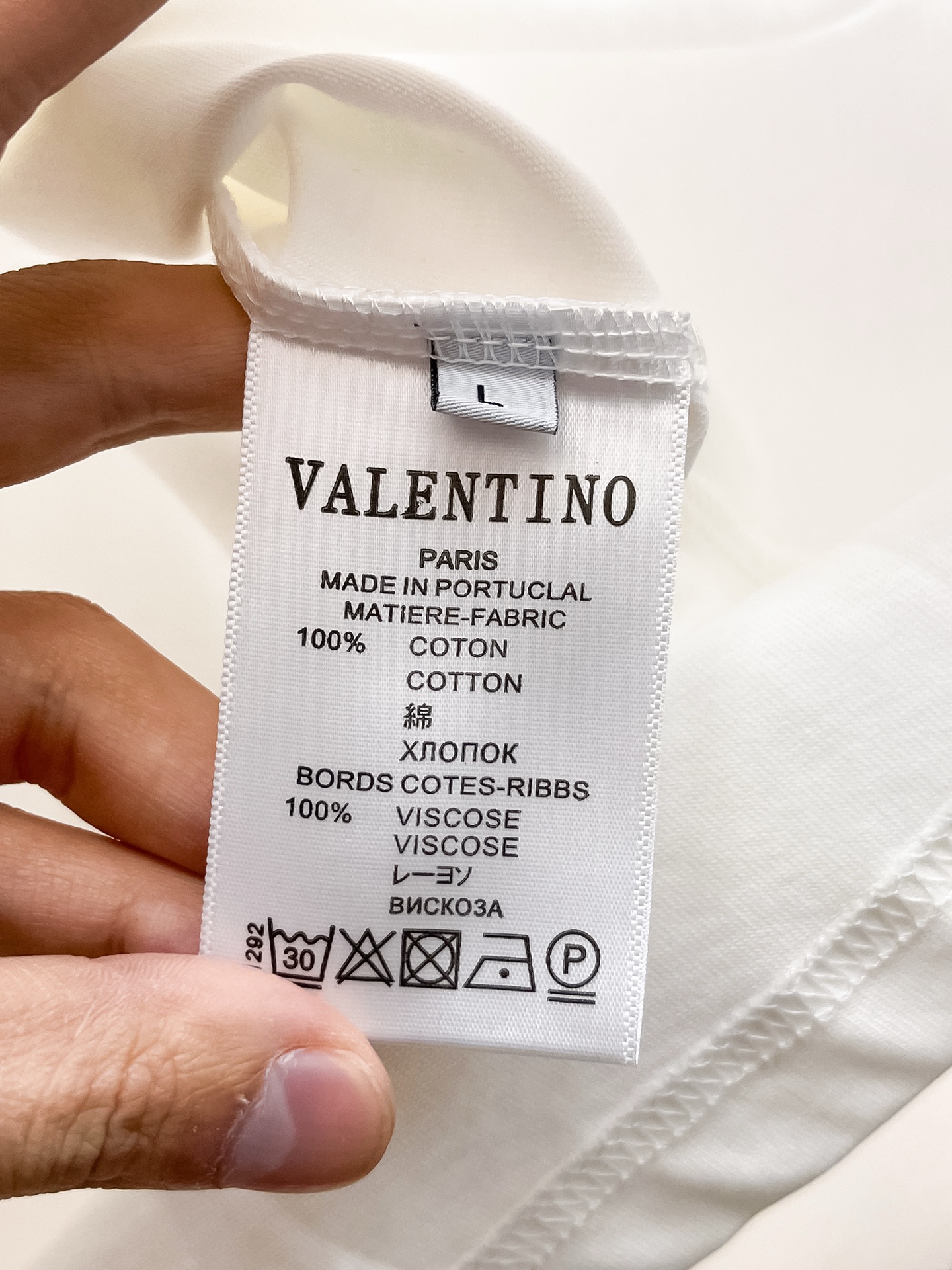 这款衣服是AAAAA 1:1 质量 (非常棒). 使用了和原版一模一样的材料. 商标部分也保持了和华伦天奴/Valentino一样. 图片拍摄是实物衣服拍摄, 您所收到的实物保证和我们图片一模一样.