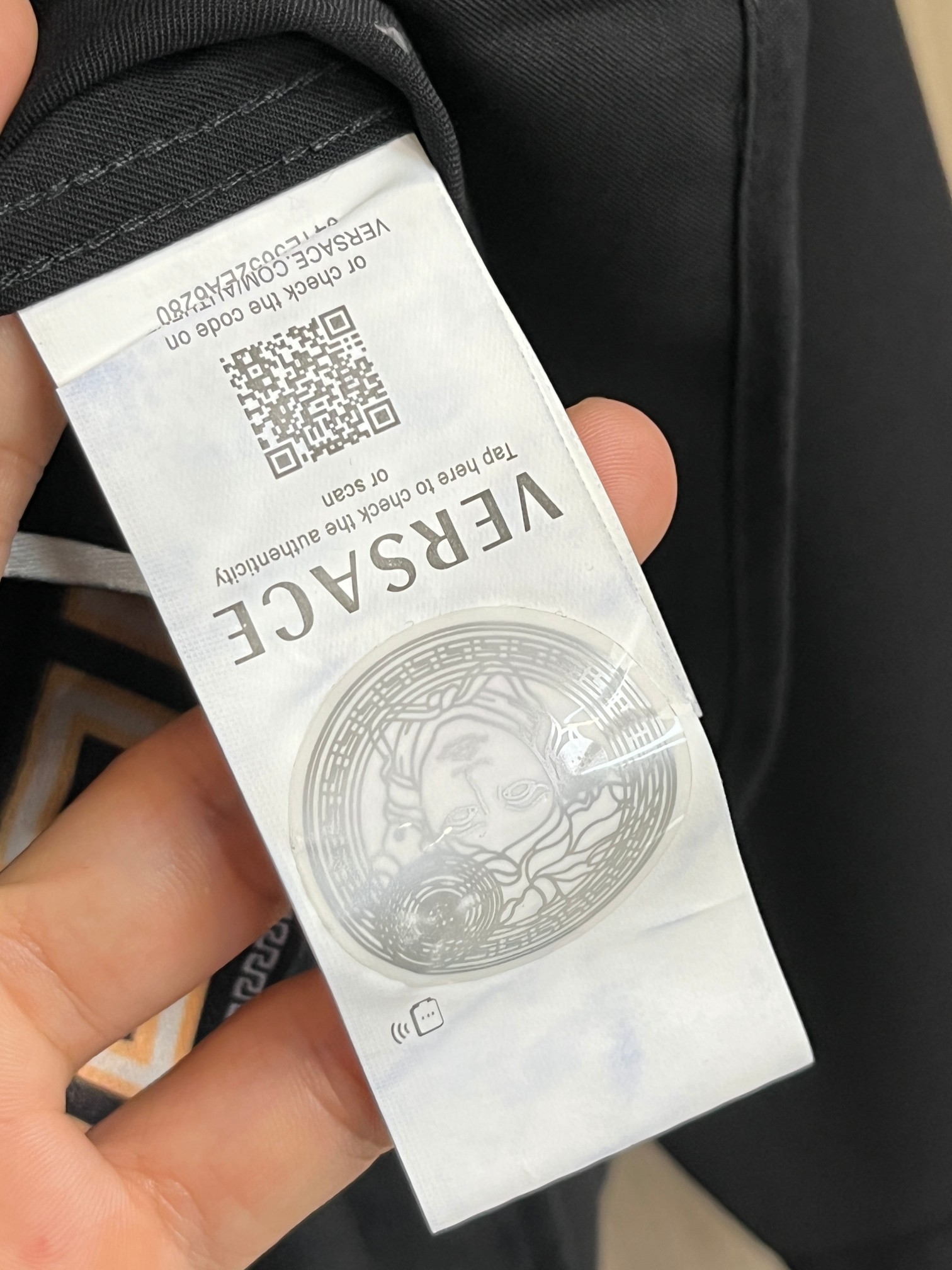 这款衣服是AAAAA 1:1 质量 (非常棒). 使用了和原版一模一样的材料. 商标部分也保持了和范思哲/Versace一样. 图片拍摄是实物衣服拍摄, 您所收到的实物保证和我们图片一模一样.