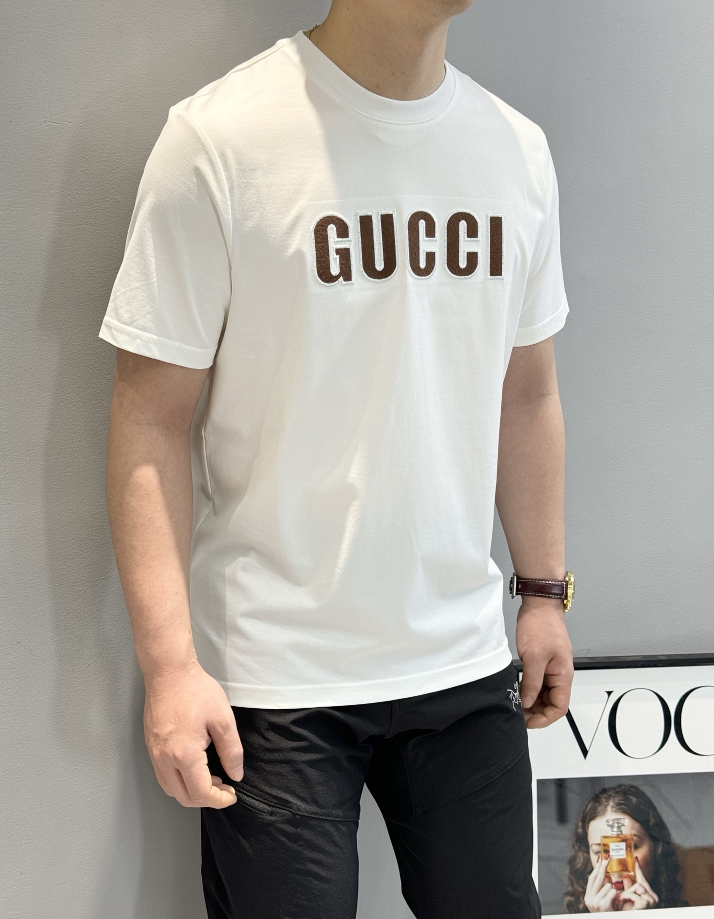 这款衣服是AAAAA 1:1 质量 (非常棒). 使用了和原版一模一样的材料. 商标部分也保持了和古奇/Gucci一样. 图片拍摄是实物衣服拍摄, 您所收到的实物保证和我们图片一模一样.