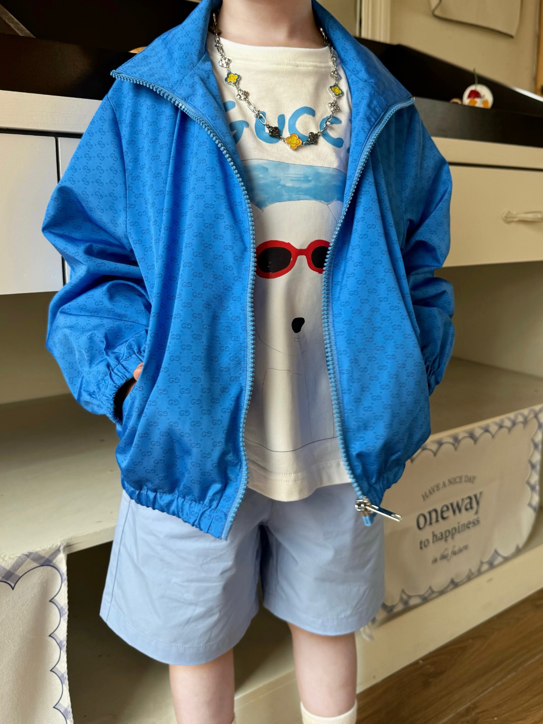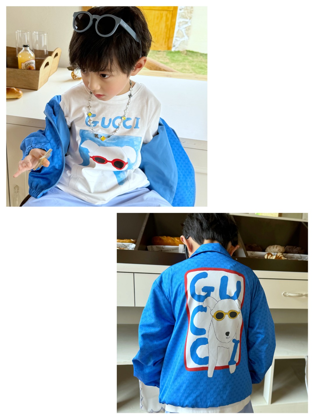 这款children's clothes是AAAAA 1:1 质量 (非常棒). 使用了和原版一模一样的材料. 商标部分也保持了和古奇/Gucci一样. 图片拍摄是实物children's clothes拍摄, 您所收到的实物保证和我们图片一模一样.