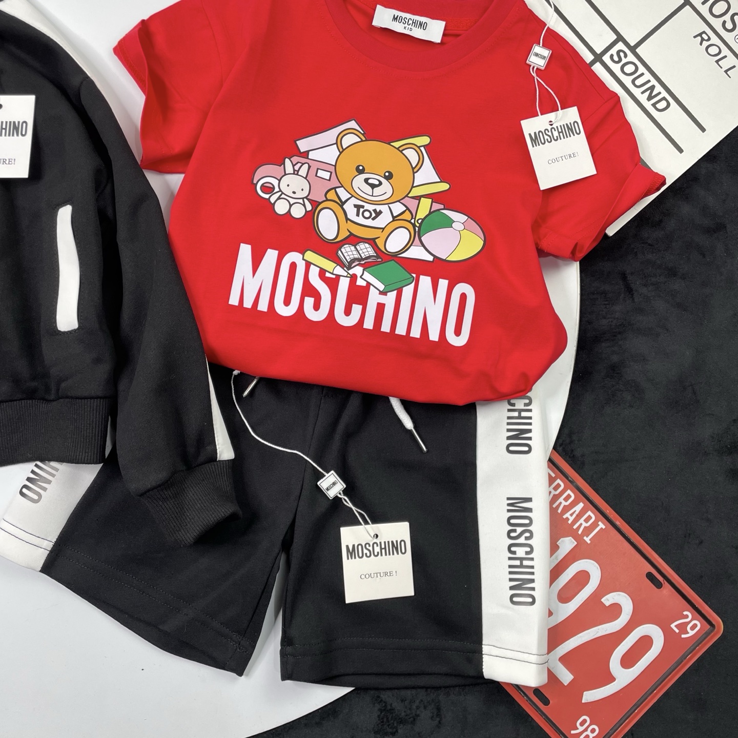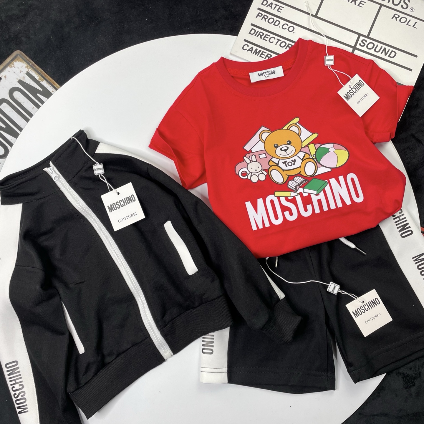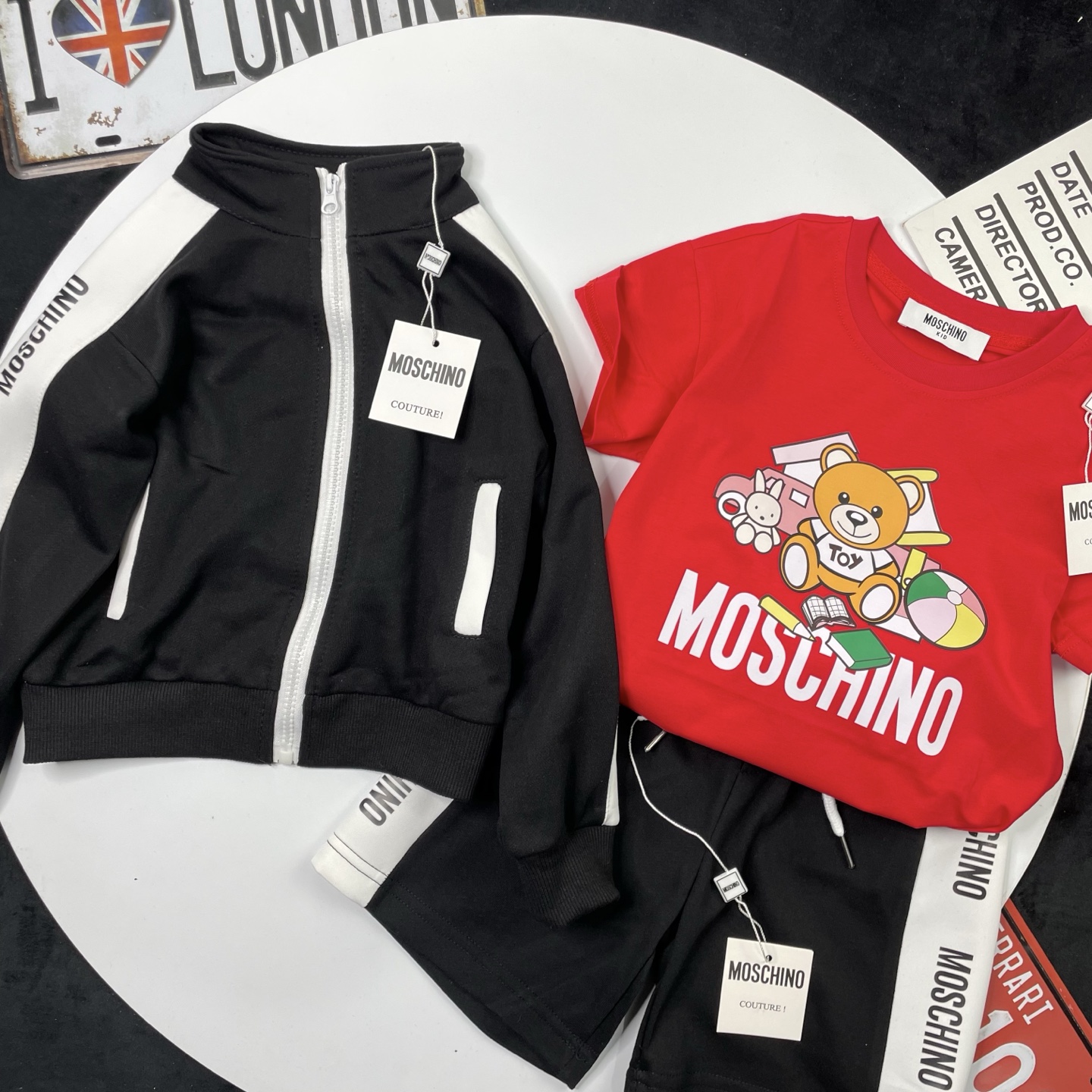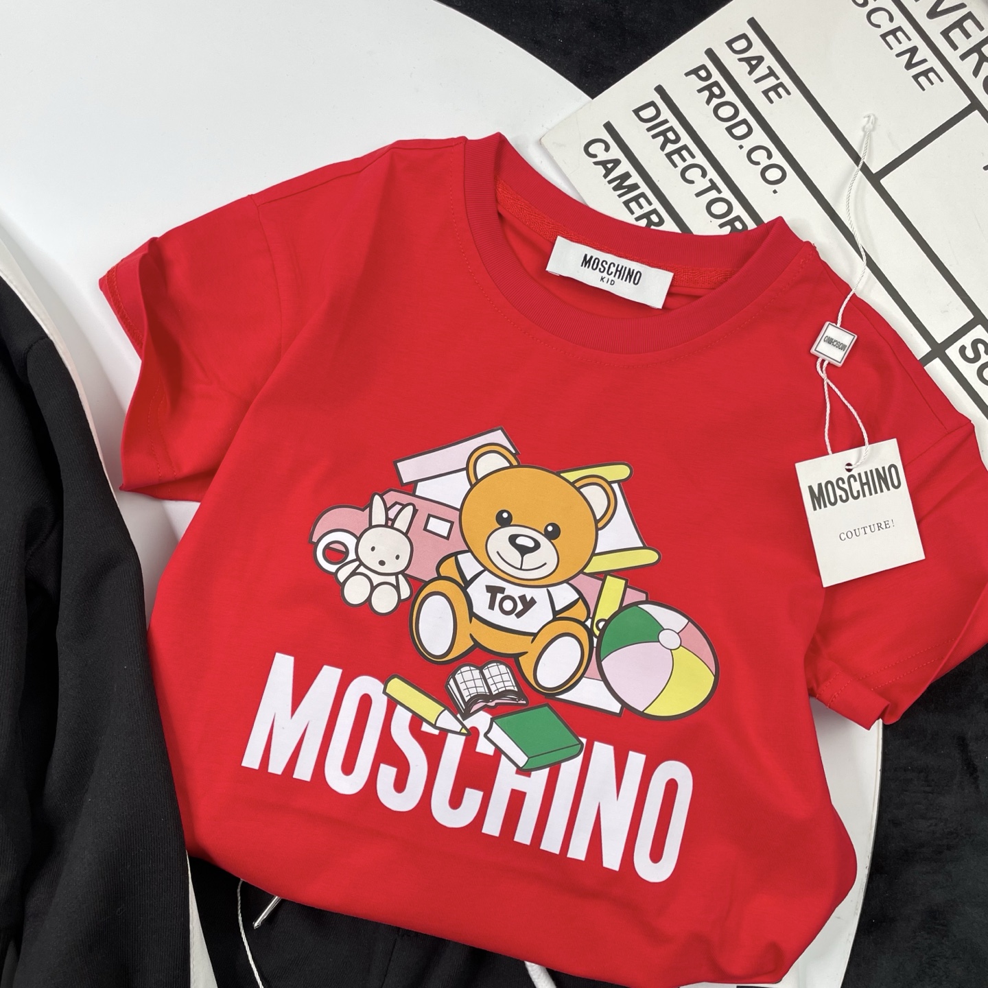 这款children's clothes是AAAAA 1:1 质量 (非常棒). 使用了和原版一模一样的材料. 商标部分也保持了和莫斯基诺/Moschino一样. 图片拍摄是实物children's clothes拍摄, 您所收到的实物保证和我们图片一模一样.