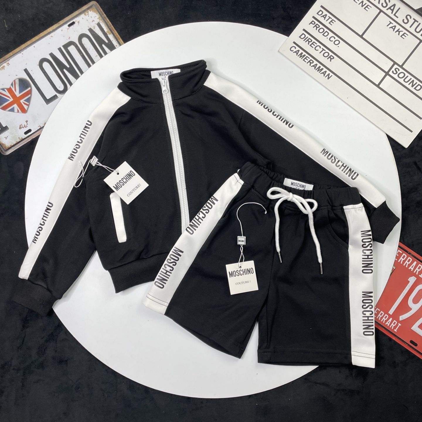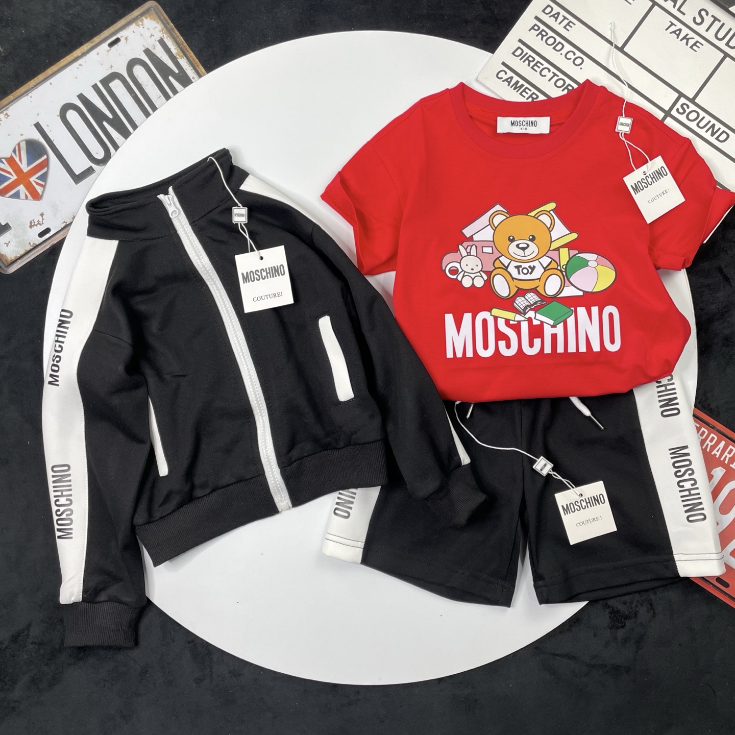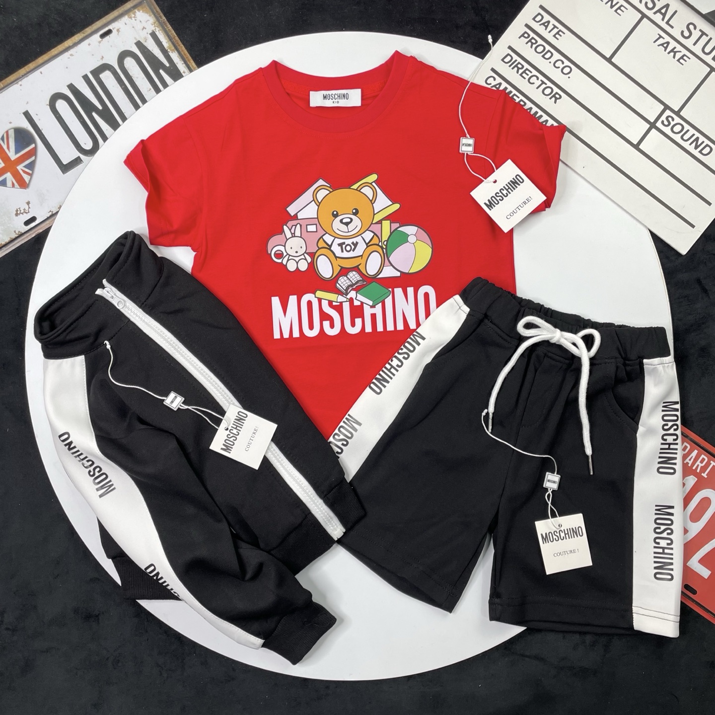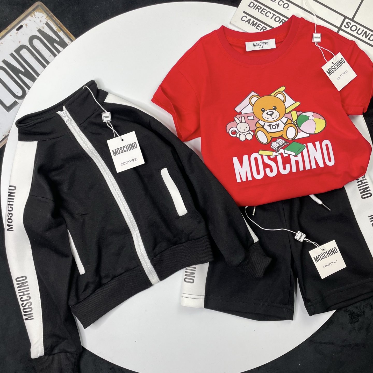 这款children's clothes是AAAAA 1:1 质量 (非常棒). 使用了和原版一模一样的材料. 商标部分也保持了和莫斯基诺/Moschino一样. 图片拍摄是实物children's clothes拍摄, 您所收到的实物保证和我们图片一模一样.