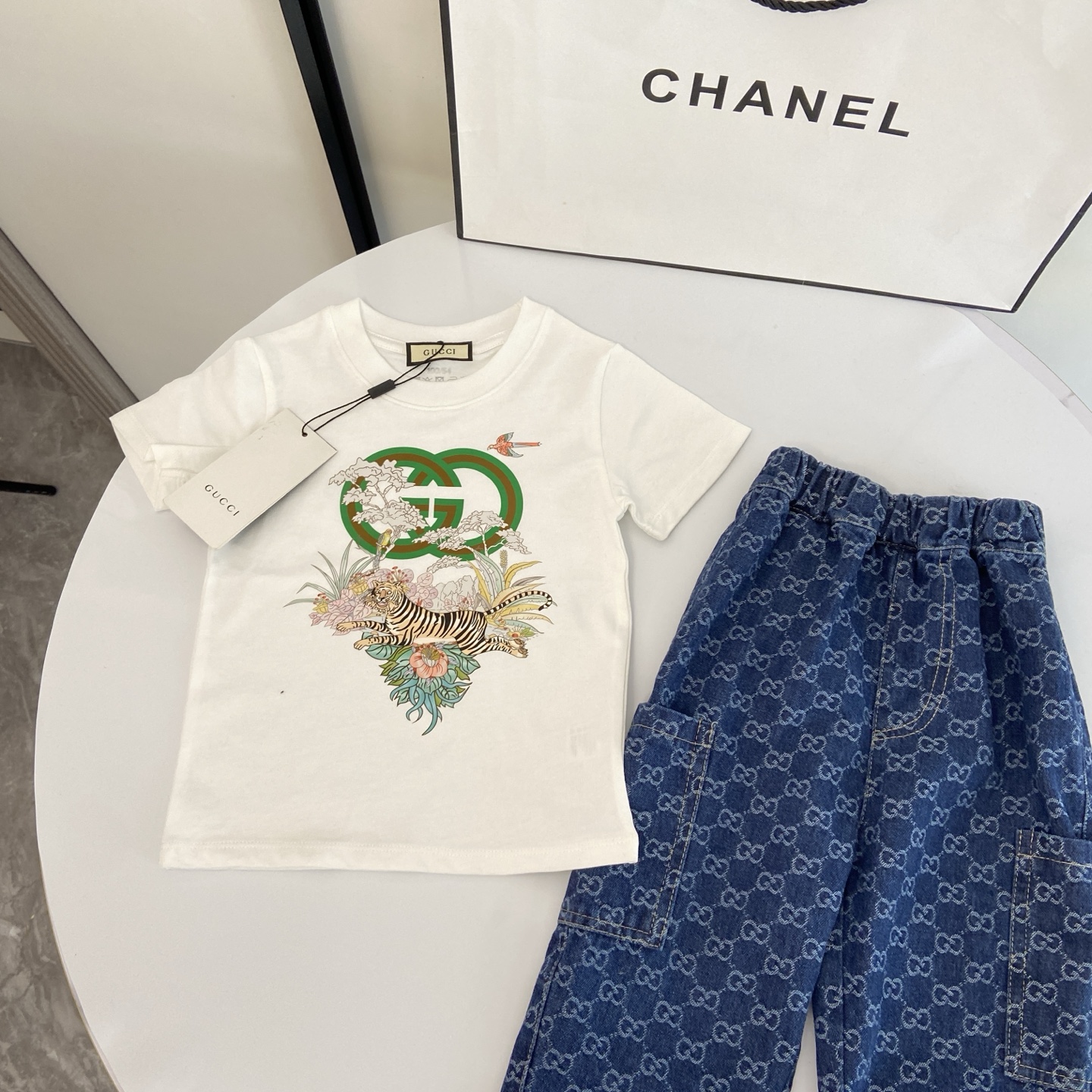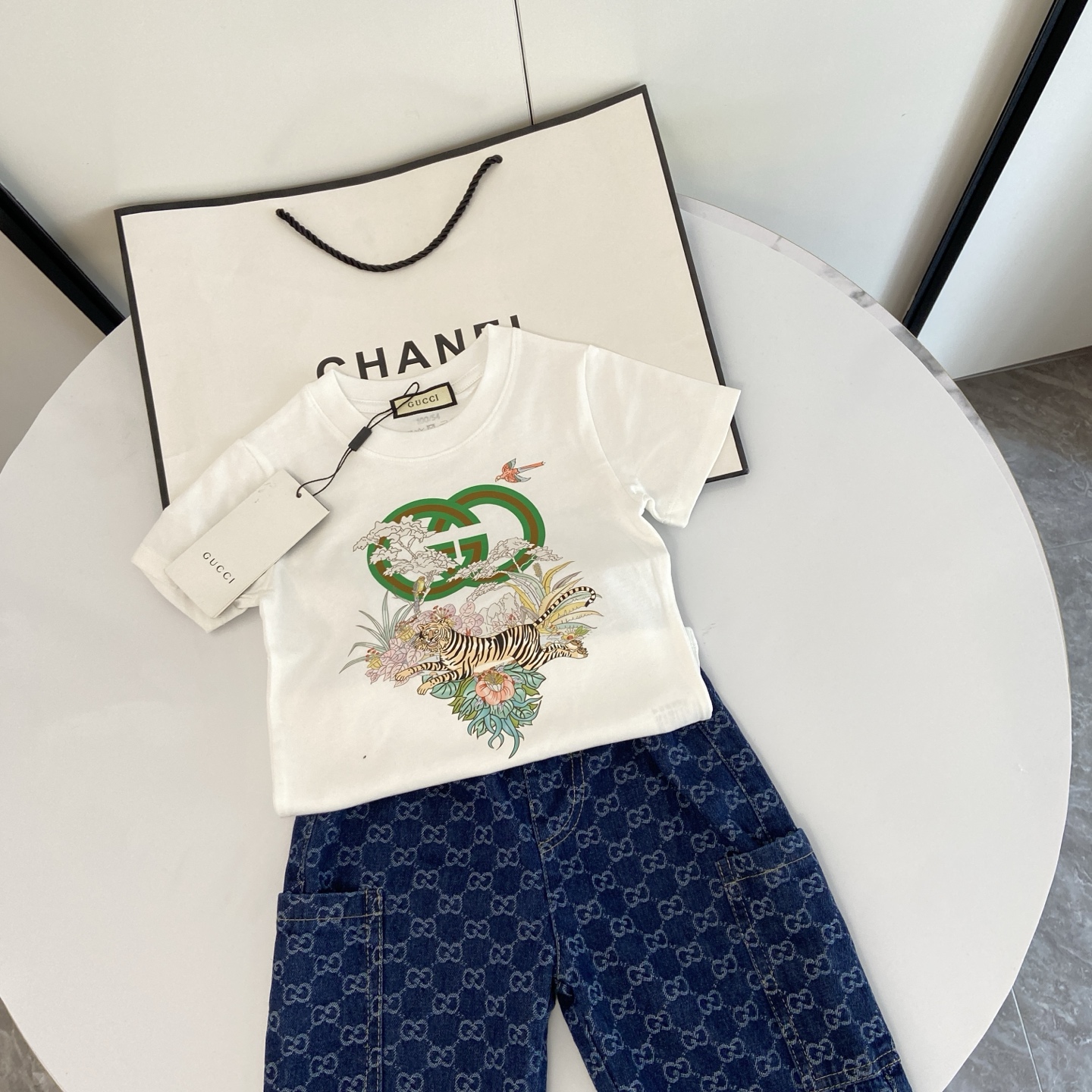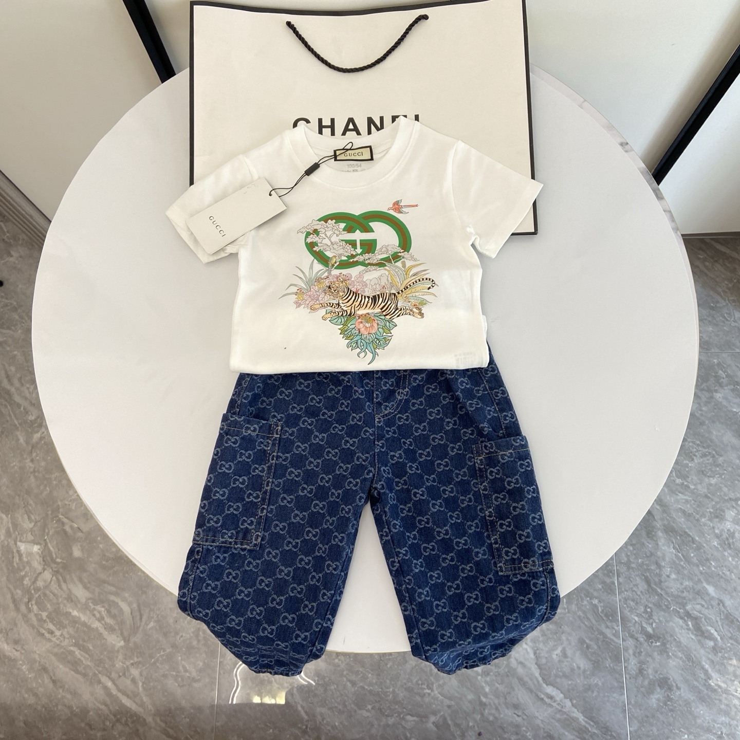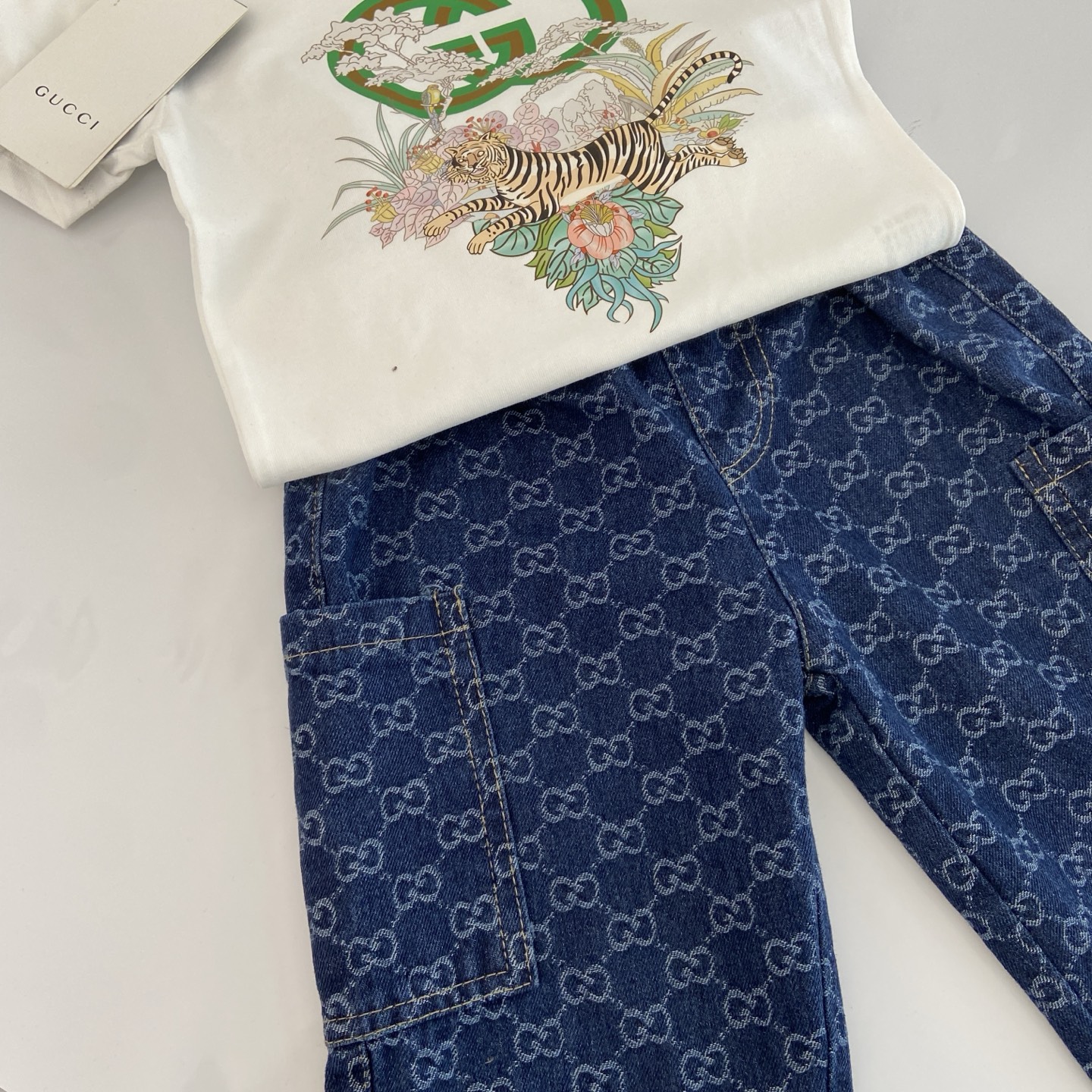 这款children's clothes是AAAAA 1:1 质量 (非常棒). 使用了和原版一模一样的材料. 商标部分也保持了和古奇/Gucci一样. 图片拍摄是实物children's clothes拍摄, 您所收到的实物保证和我们图片一模一样.