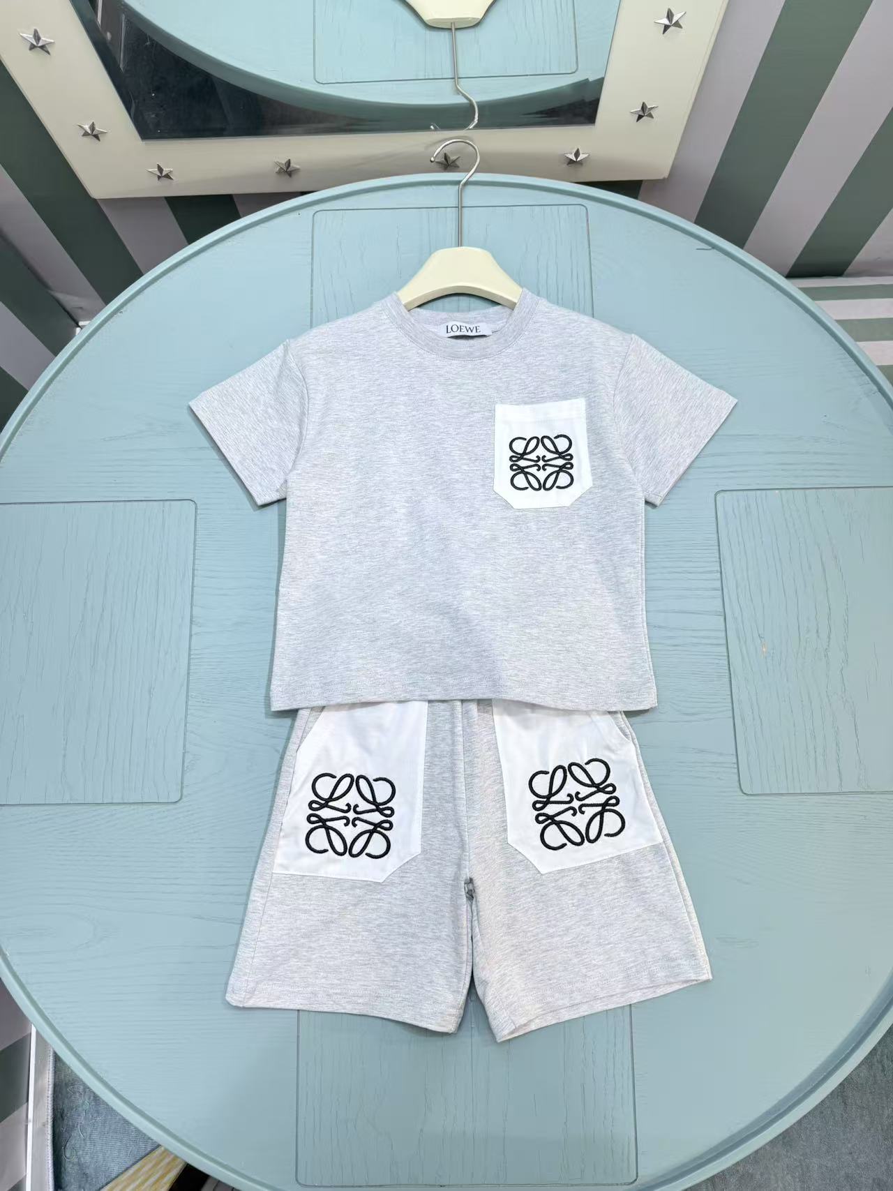 这款children's clothes是AAAAA 1:1 质量 (非常棒). 使用了和原版一模一样的材料. 商标部分也保持了和罗意威/Loewe一样. 图片拍摄是实物children's clothes拍摄, 您所收到的实物保证和我们图片一模一样.
