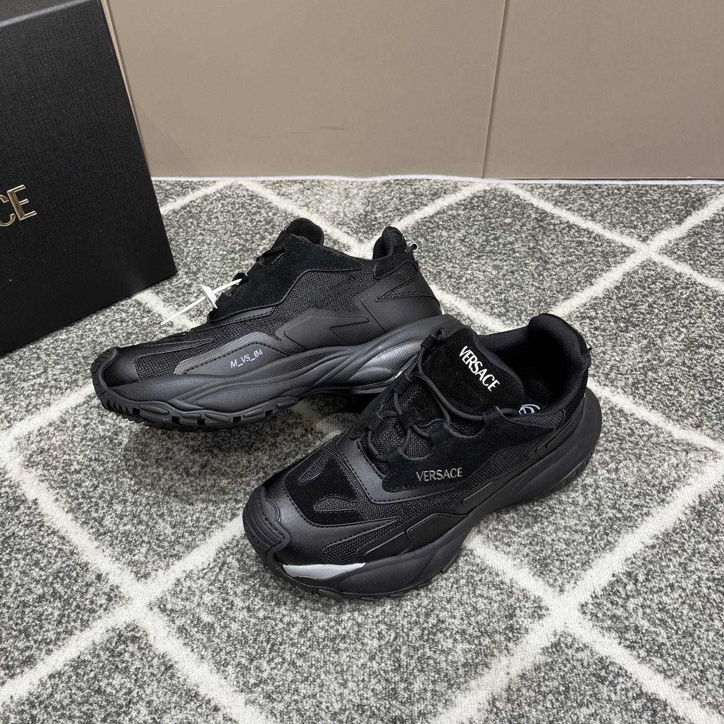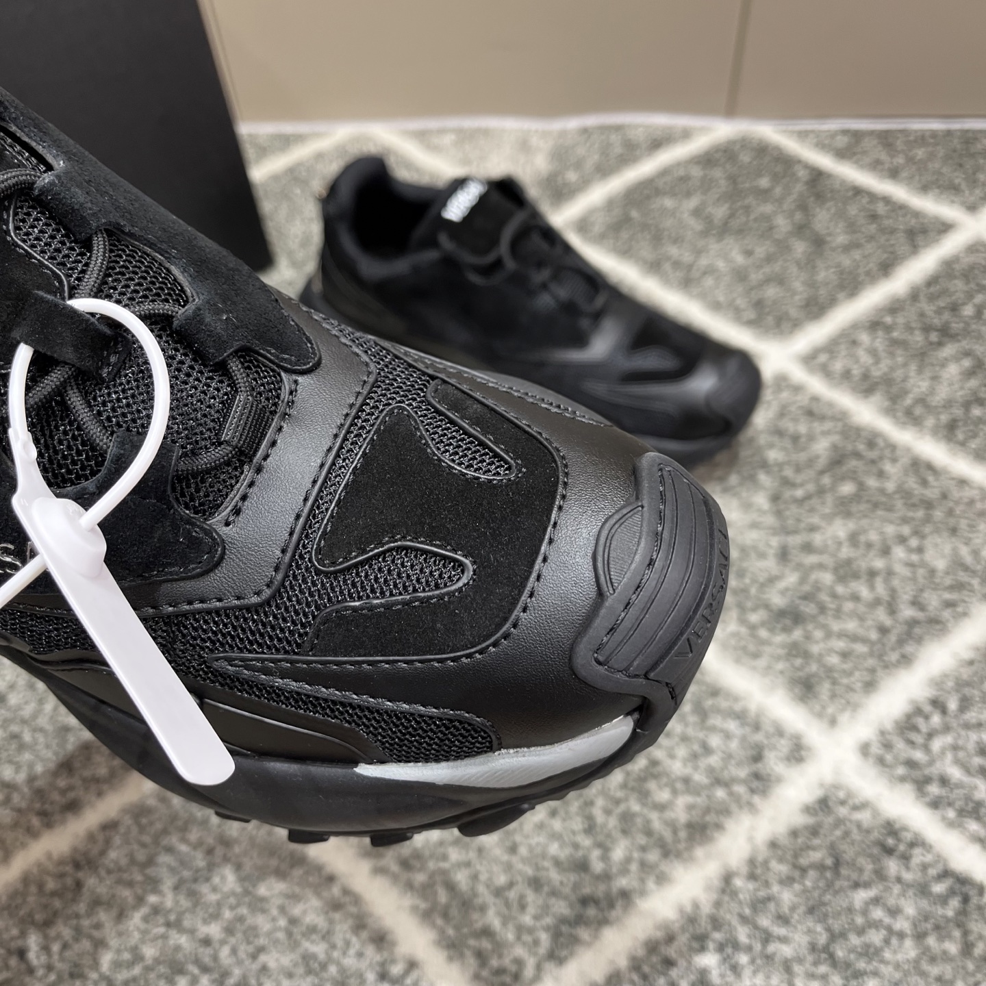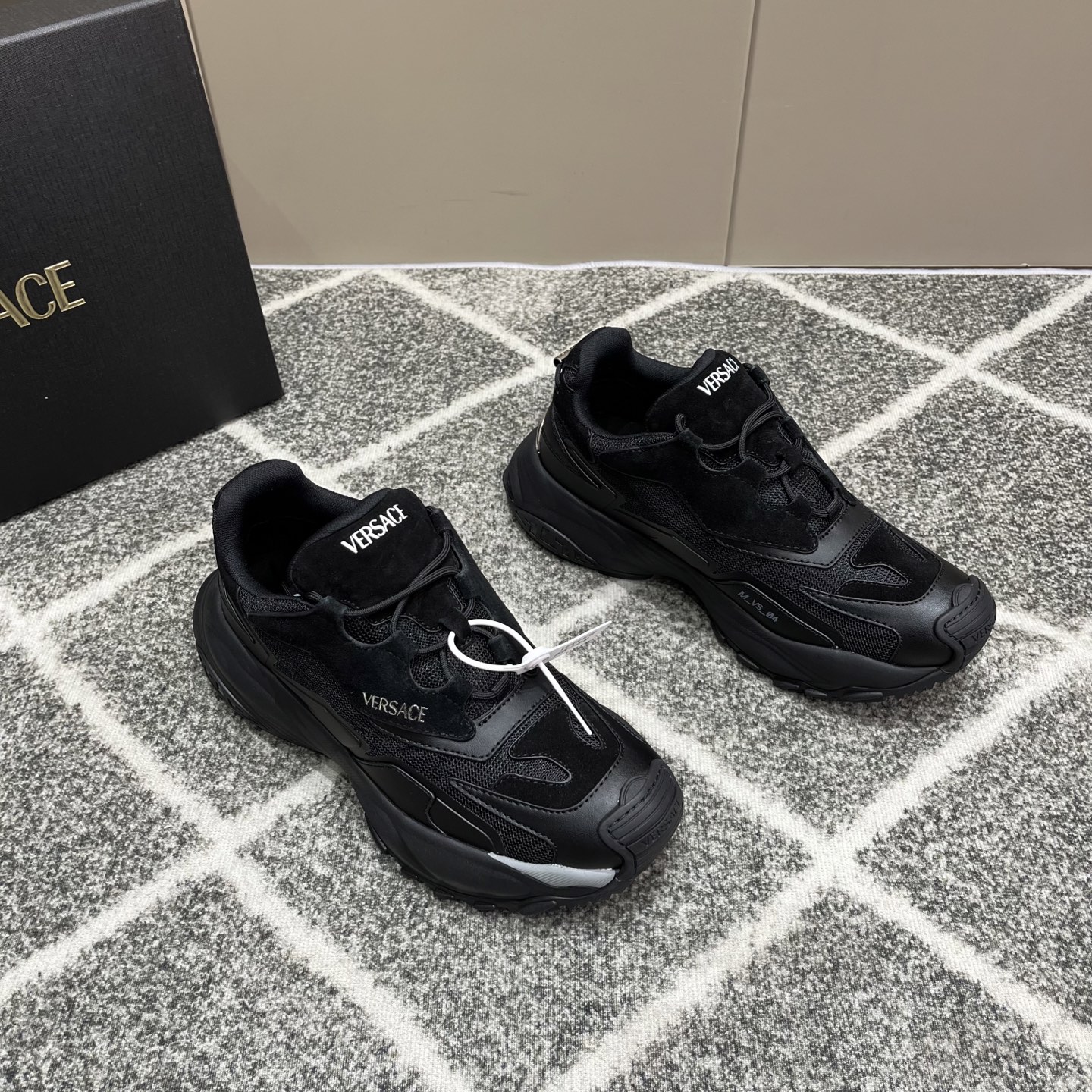 这款鞋子是AAAAA 1:1 质量 (非常棒). 使用了和原版一模一样的材料. 商标部分也保持了和范思哲/Versace一样. 图片拍摄是实物鞋子拍摄, 您所收到的实物保证和我们图片一模一样.