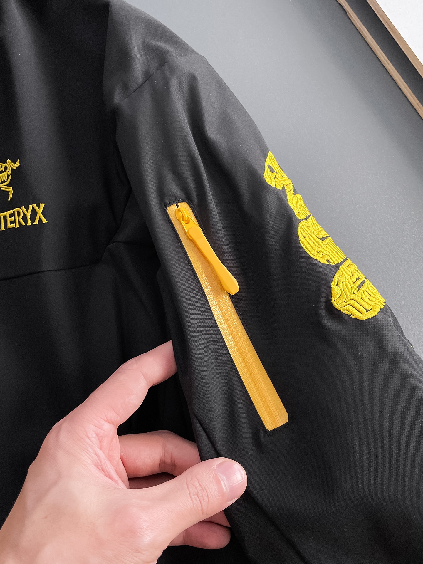 这款衣服是AAAAA 1:1 质量 (非常棒). 使用了和原版一模一样的材料. 商标部分也保持了和ARC'TERYX一样. 图片拍摄是实物衣服拍摄, 您所收到的实物保证和我们图片一模一样.