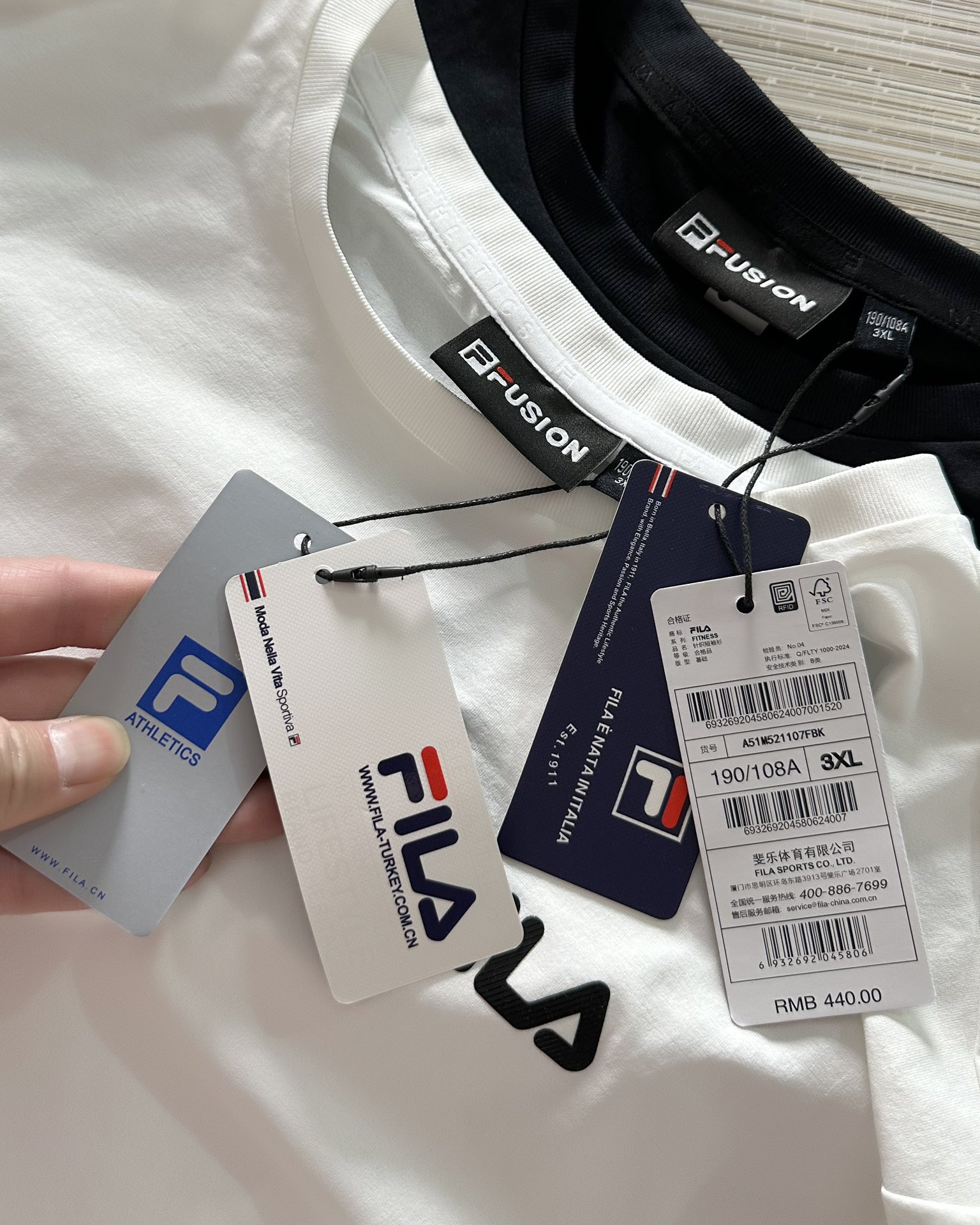 这款衣服是AAAAA 1:1 质量 (非常棒). 使用了和原版一模一样的材料. 商标部分也保持了和Fila一样. 图片拍摄是实物衣服拍摄, 您所收到的实物保证和我们图片一模一样.