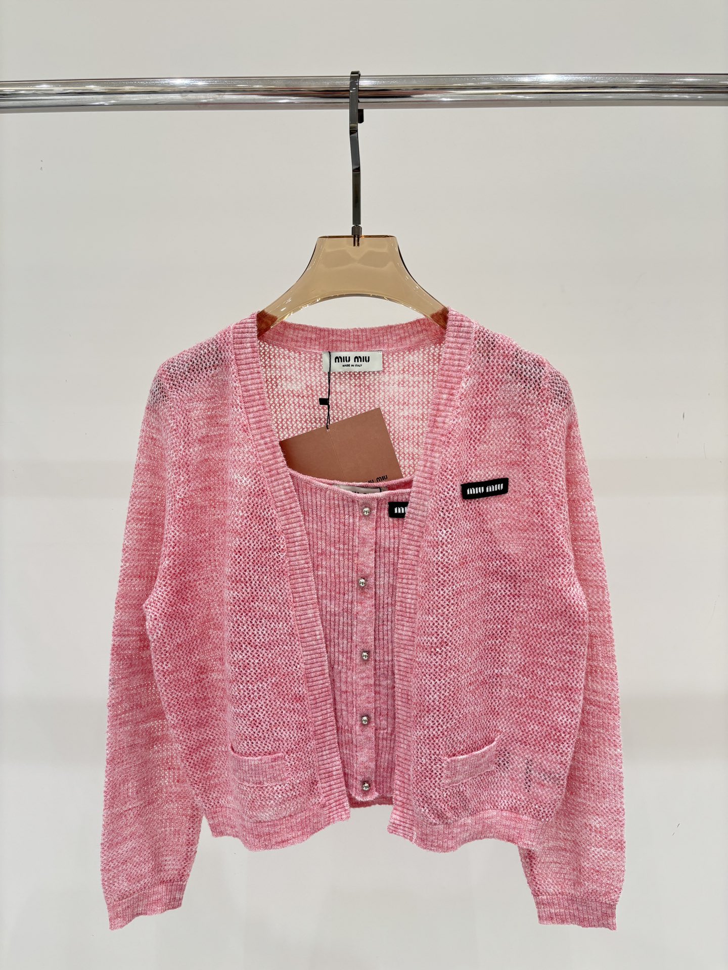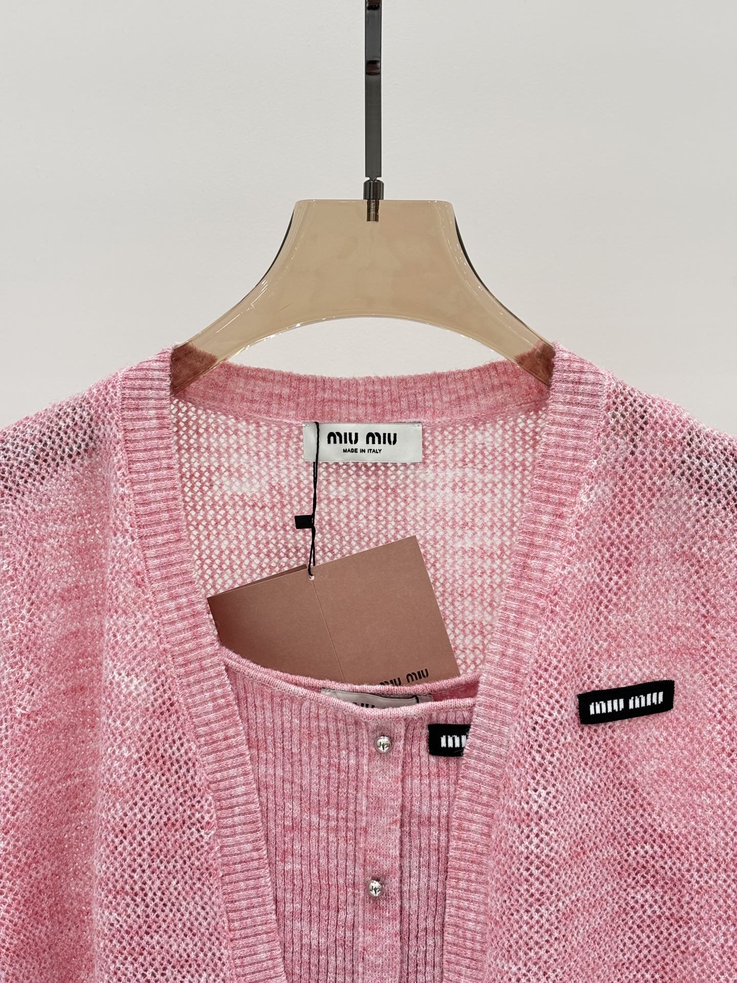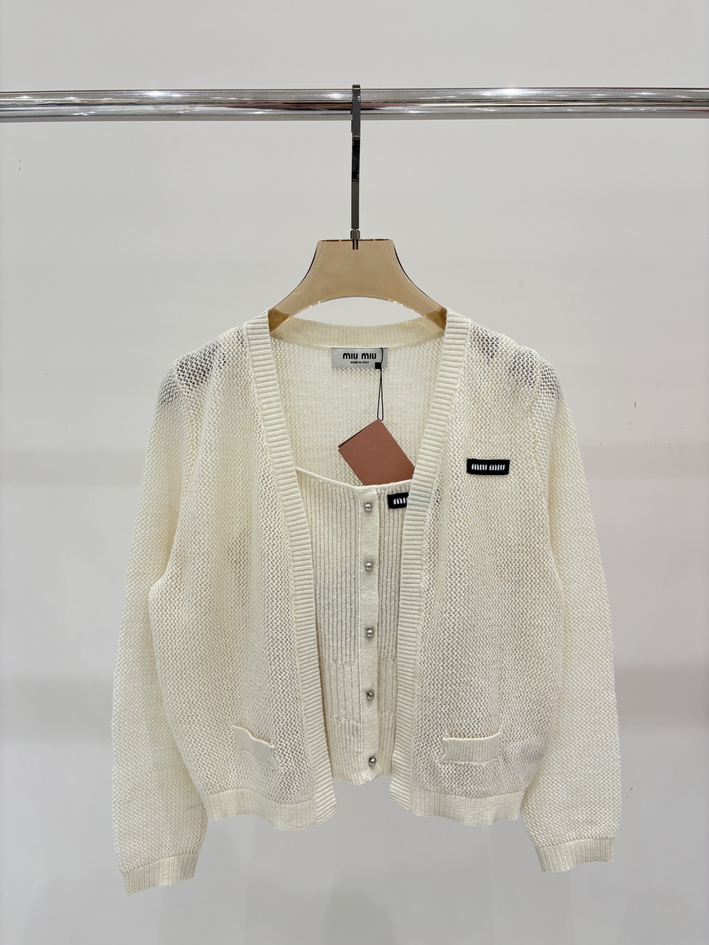 这款衣服是AAAAA 1:1 质量 (非常棒). 使用了和原版一模一样的材料. 商标部分也保持了和缪缪/Miu Miu一样. 图片拍摄是实物衣服拍摄, 您所收到的实物保证和我们图片一模一样.
