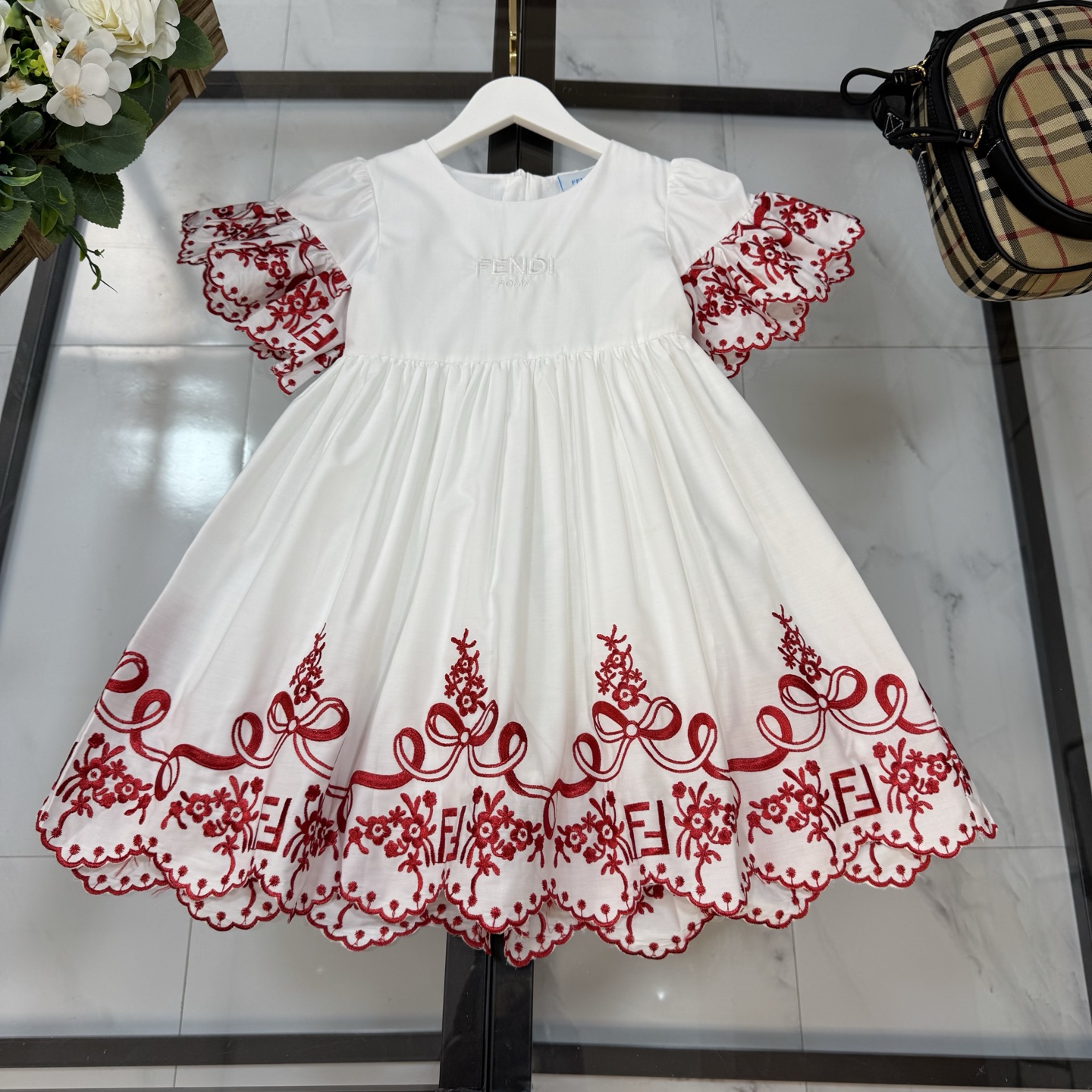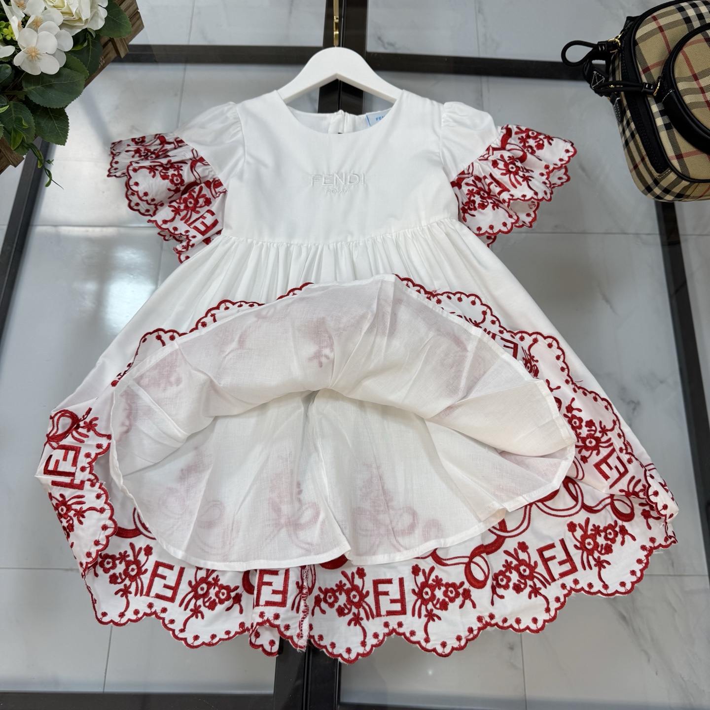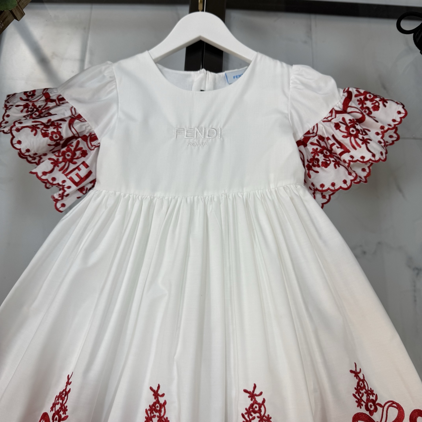 这款children's clothes是AAAAA 1:1 质量 (非常棒). 使用了和原版一模一样的材料. 商标部分也保持了和芬迪/Fendi一样. 图片拍摄是实物children's clothes拍摄, 您所收到的实物保证和我们图片一模一样.