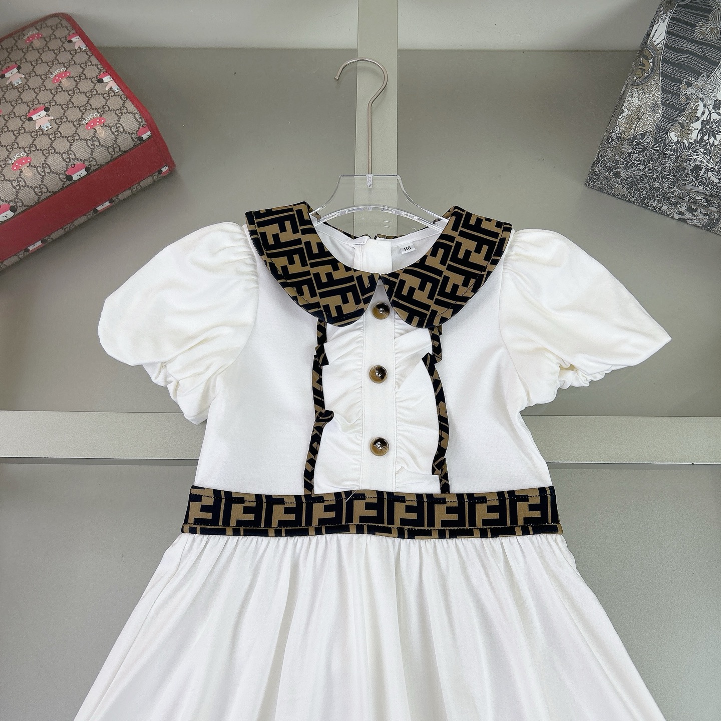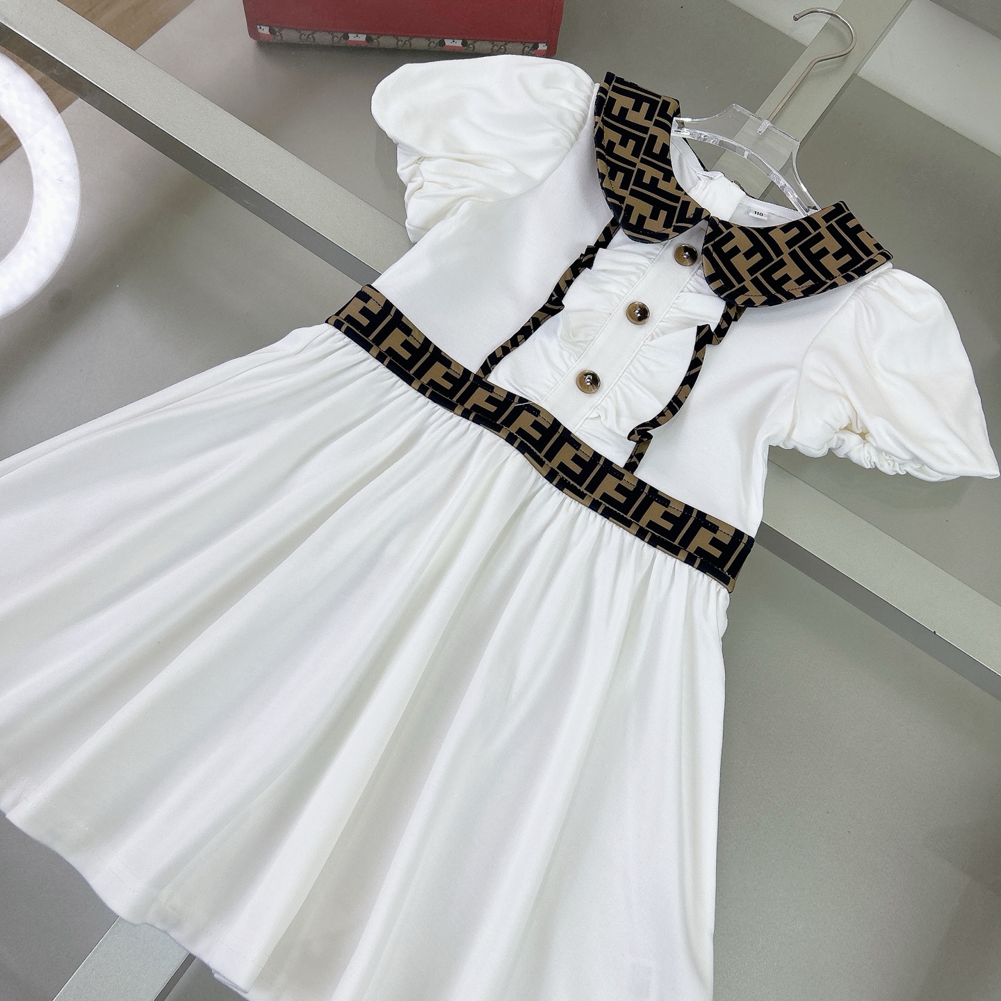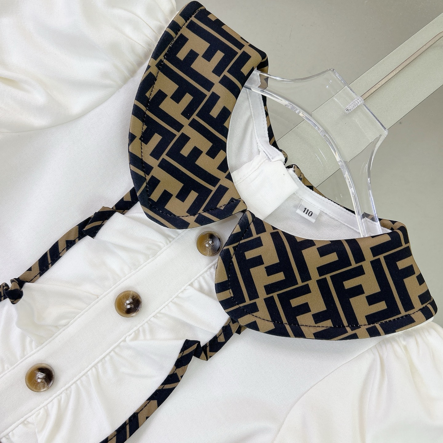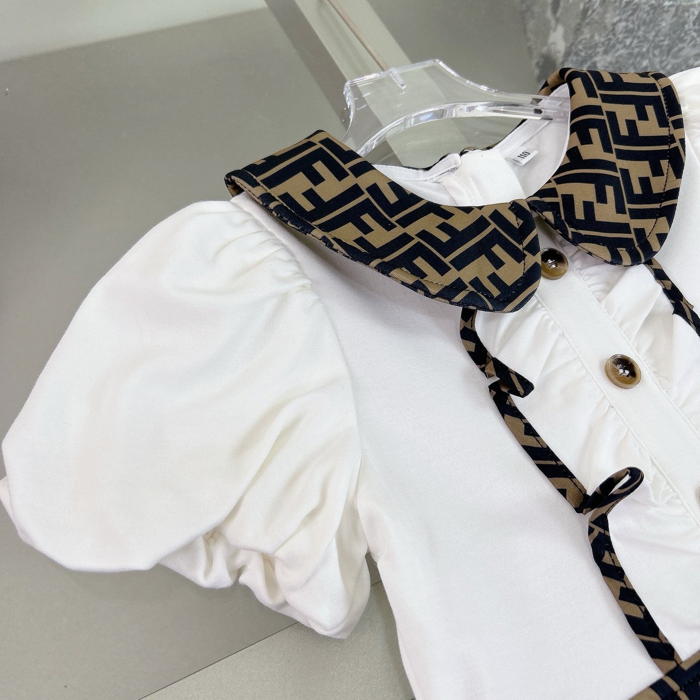 这款children's clothes是AAAAA 1:1 质量 (非常棒). 使用了和原版一模一样的材料. 商标部分也保持了和芬迪/Fendi一样. 图片拍摄是实物children's clothes拍摄, 您所收到的实物保证和我们图片一模一样.