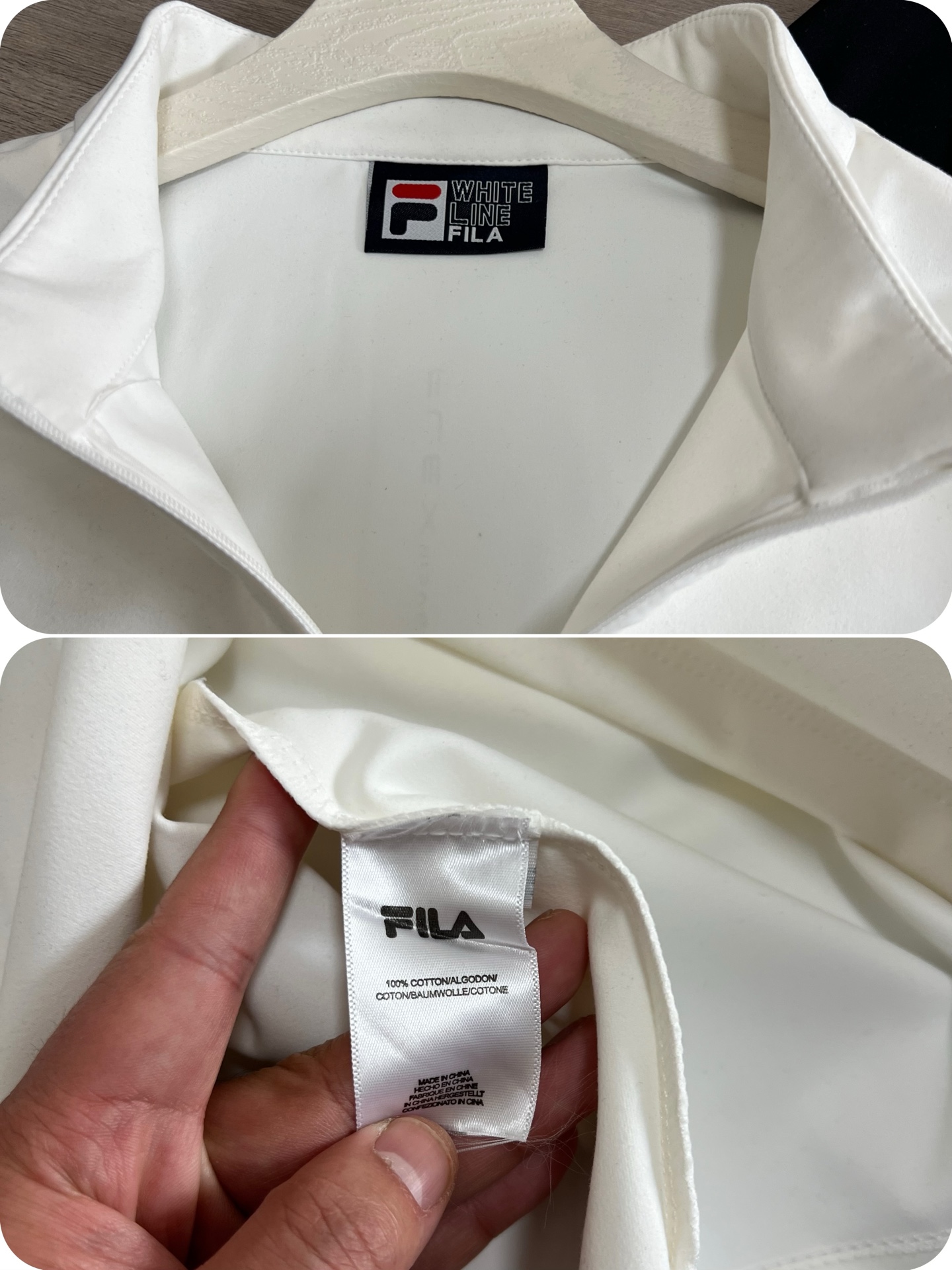 这款衣服是AAAAA 1:1 质量 (非常棒). 使用了和原版一模一样的材料. 商标部分也保持了和Fila一样. 图片拍摄是实物衣服拍摄, 您所收到的实物保证和我们图片一模一样.